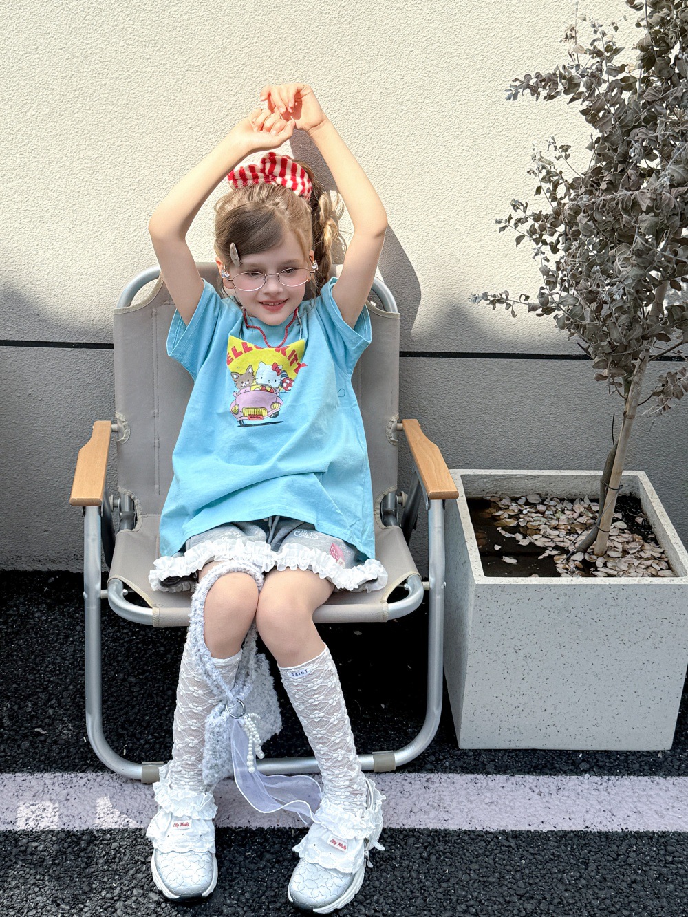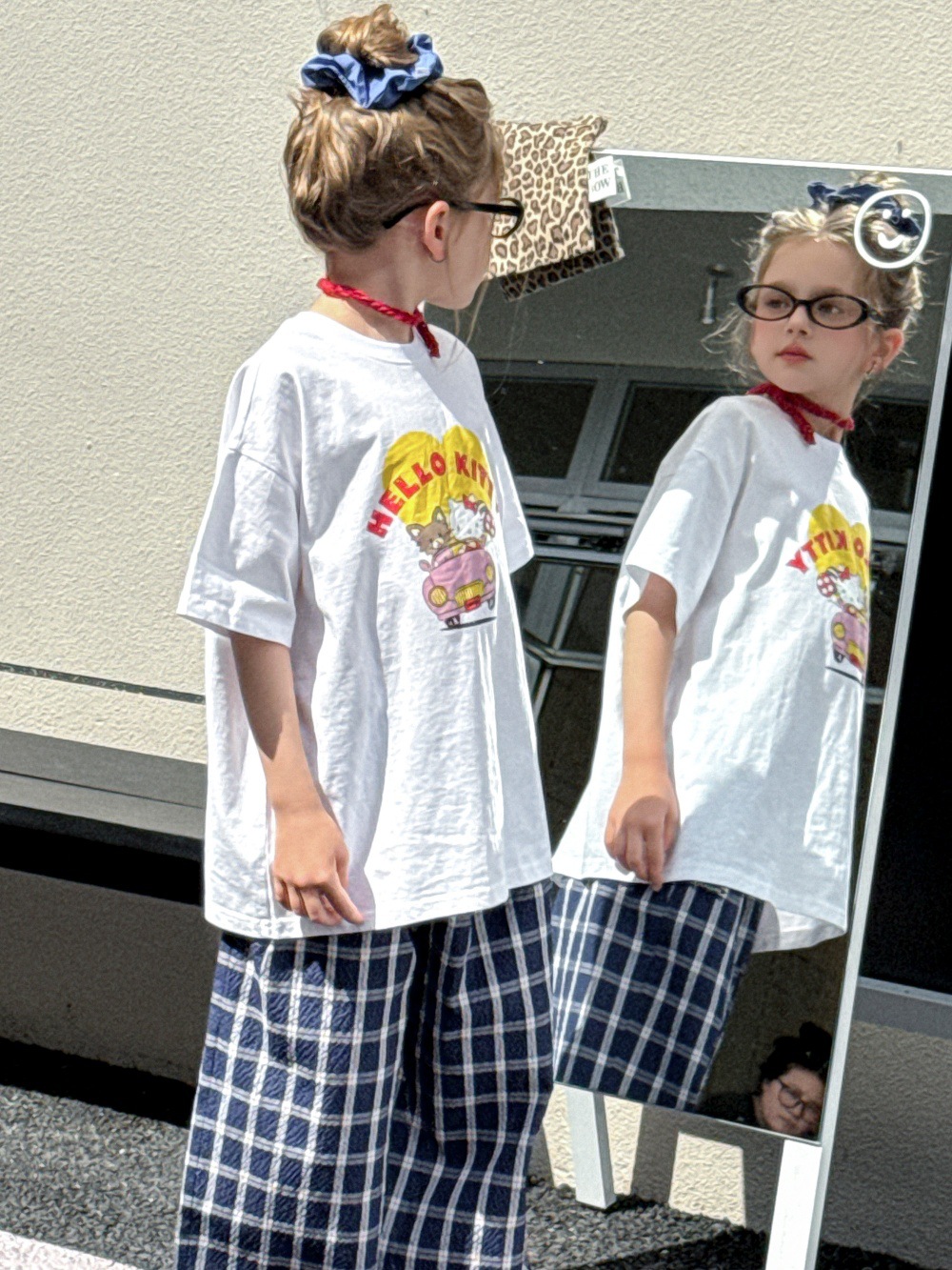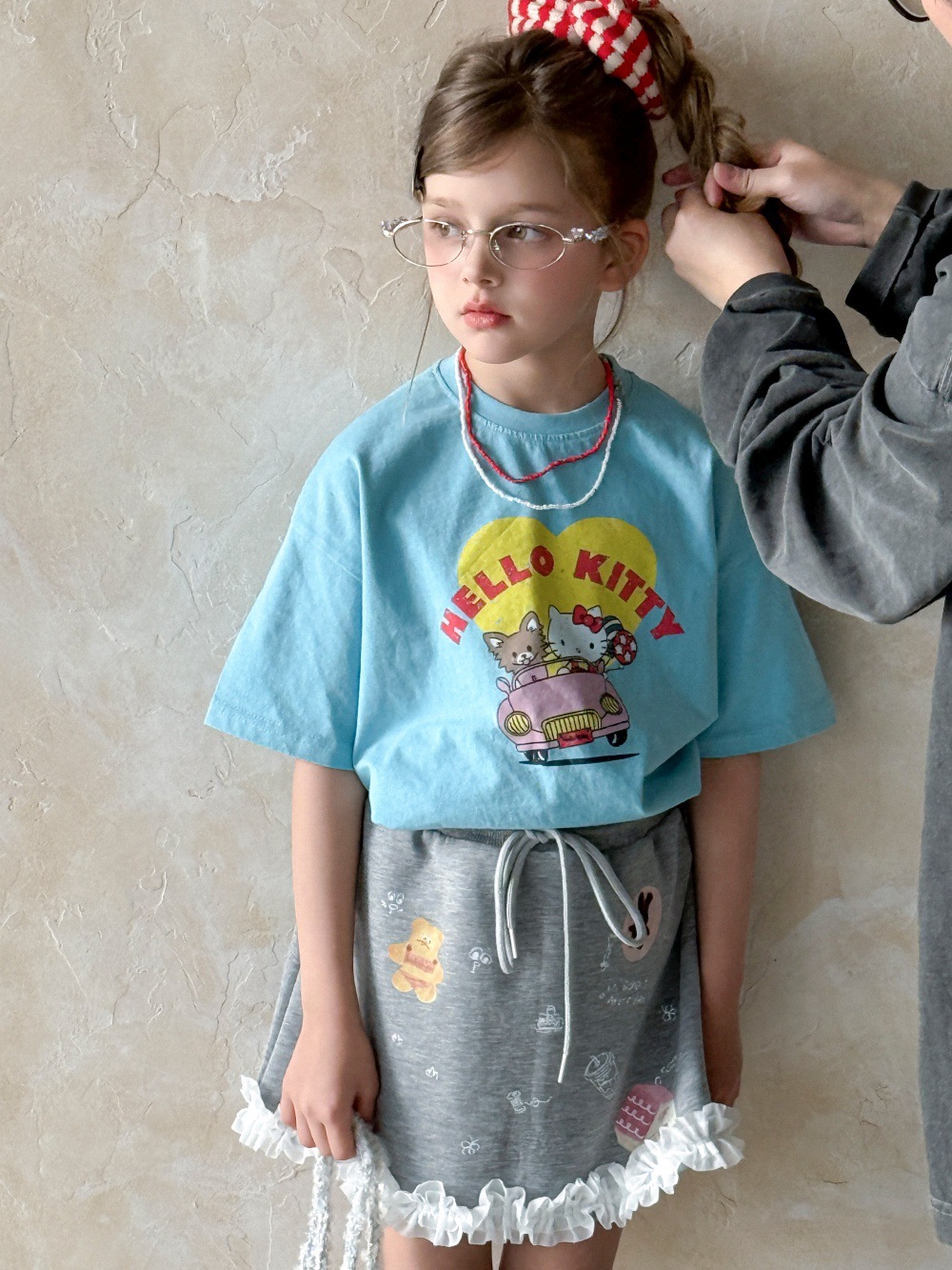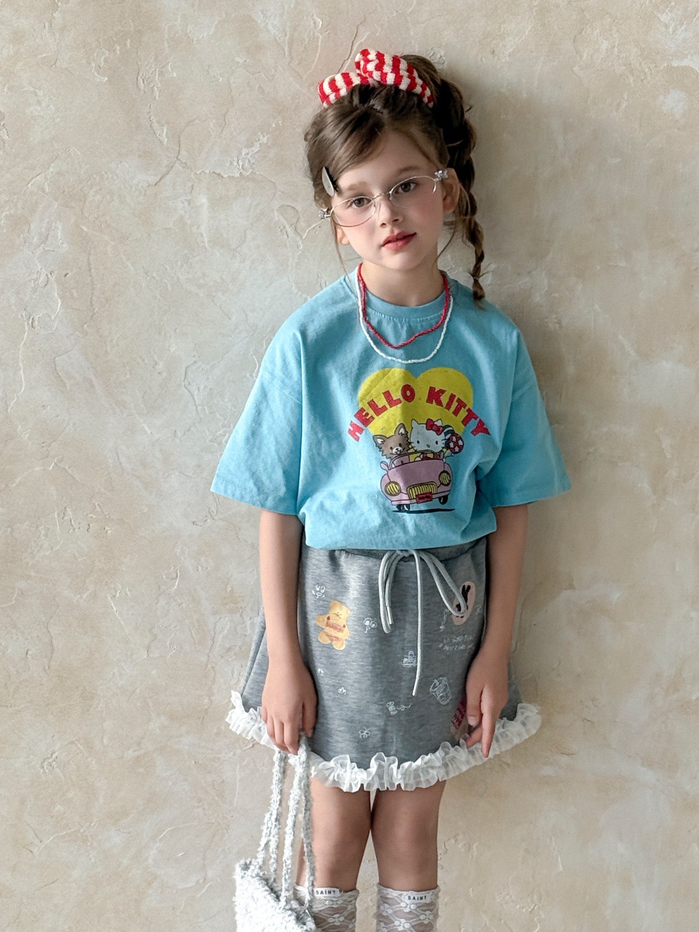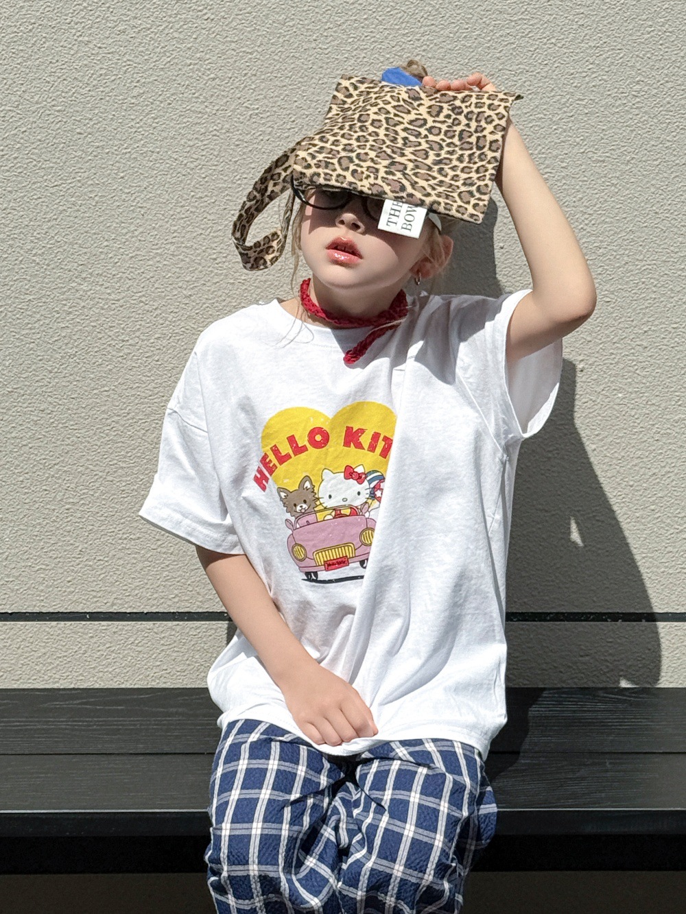 2025 여자 여름 라운드 넥 반팔 어린이 만화 프린트 티셔츠 바닥 셔츠 세련된 중형 및 대형 아동용 반팔 아동복스토어 가기