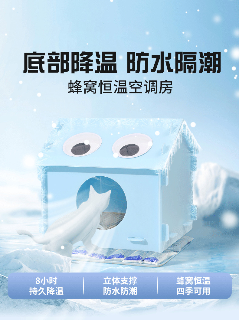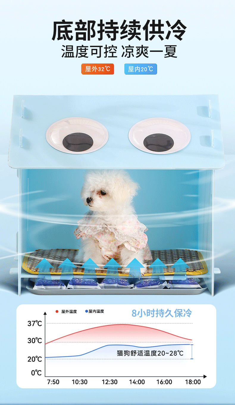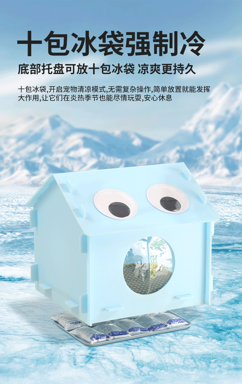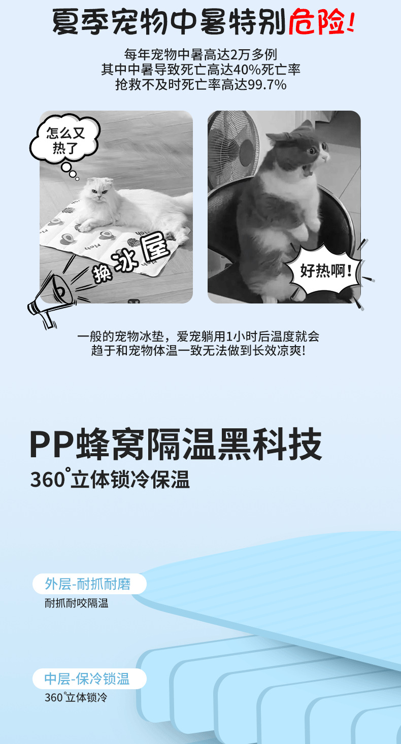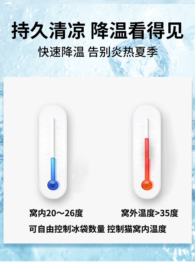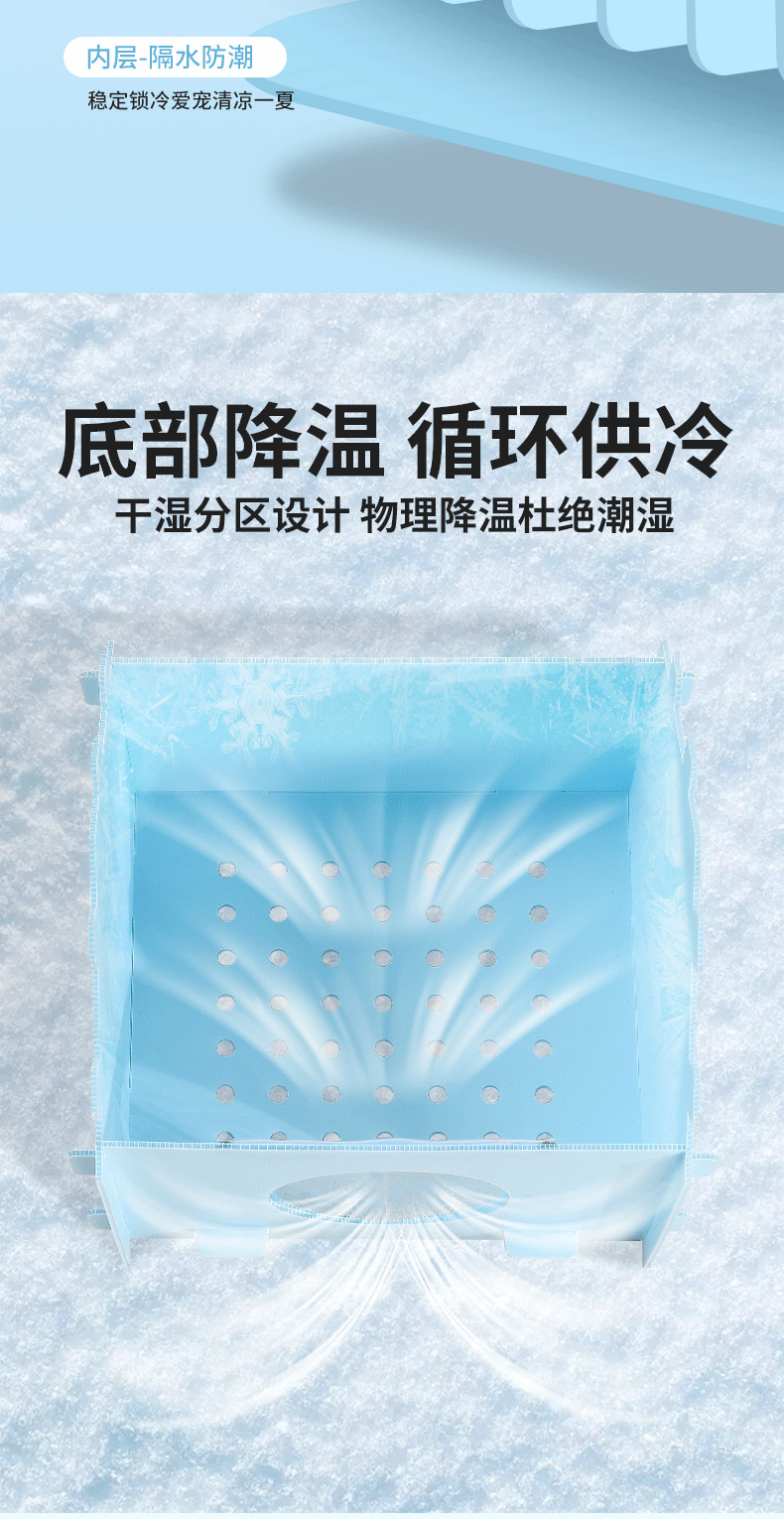 底部加厚托盘设计可放十包冰袋 或更换冰晶盒凉爽更持久温度可自行调节 让宠物清凉一夏,无需复杂操作,简单放置就能轻松降温