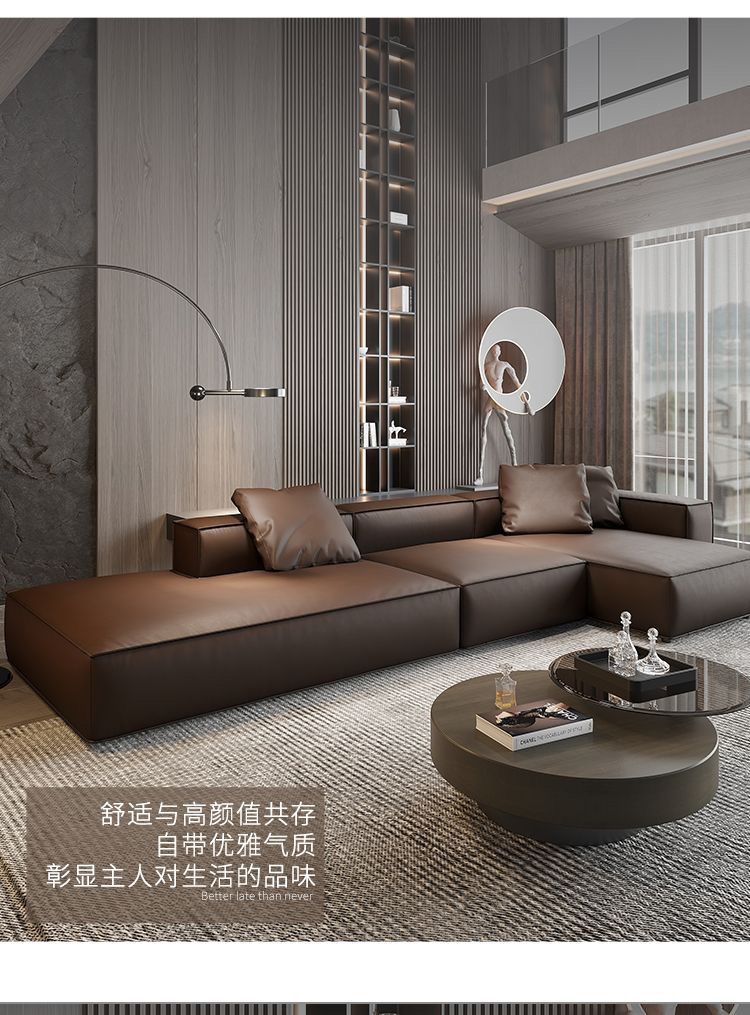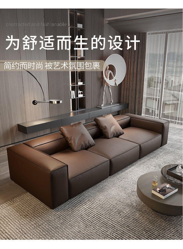 두부 블록 탑 레이어 소 가죽 소파 2025 새로운 거실 크기 L 자형 호텔 아파트 스트레이트 행 미니멀리스트