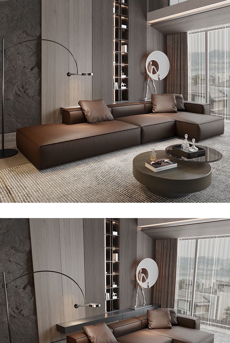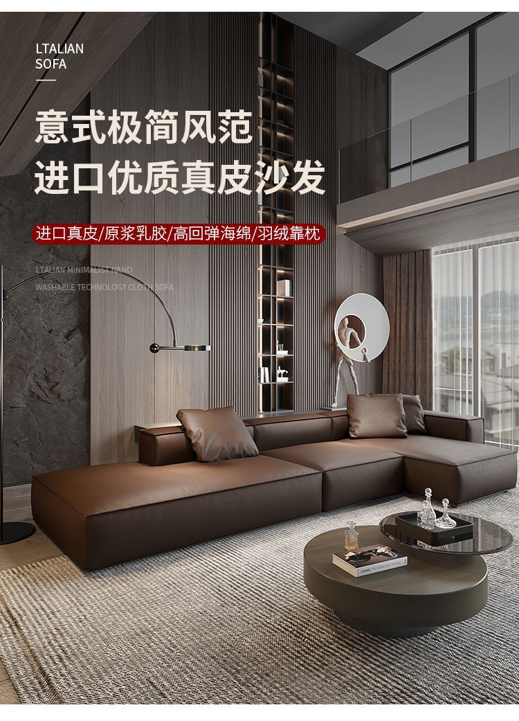 두부 블록 탑 레이어 소 가죽 소파 2025 새로운 거실 크기 L 자형 호텔 아파트 스트레이트 행 미니멀리스트스토어 가기