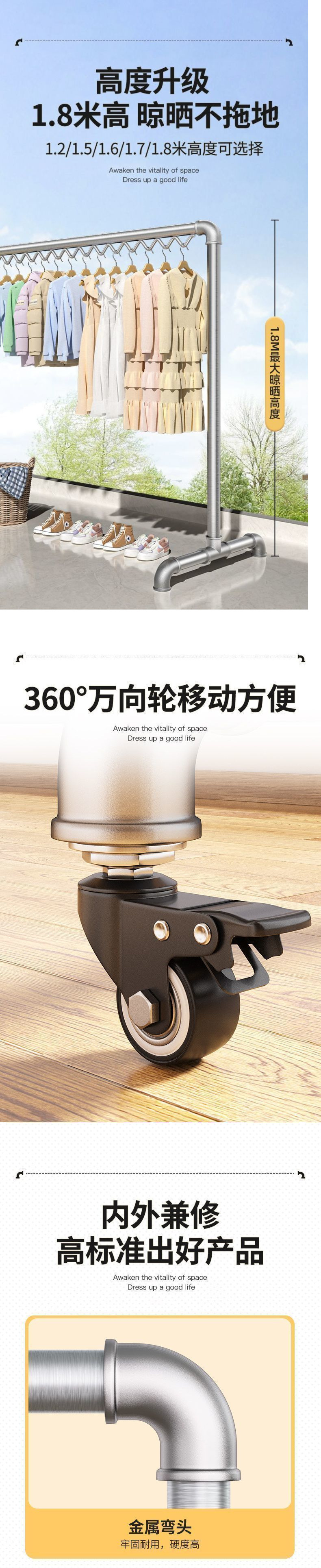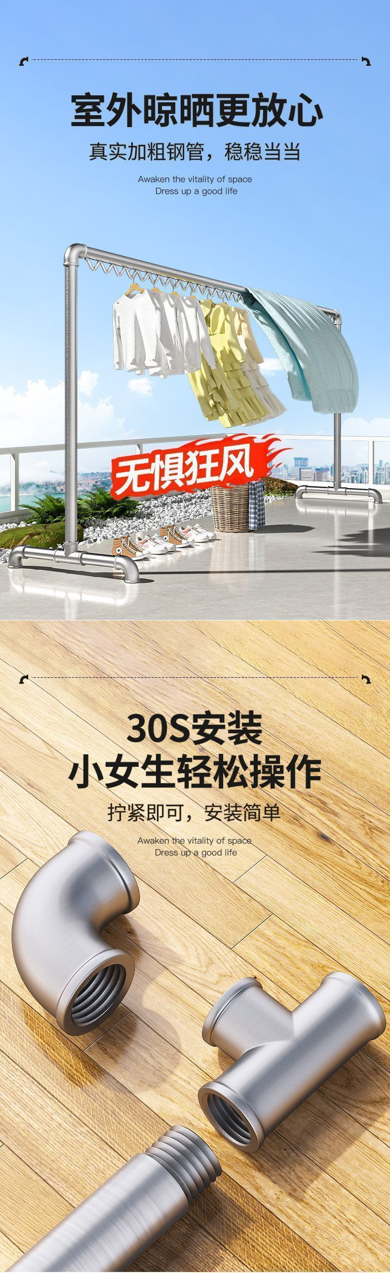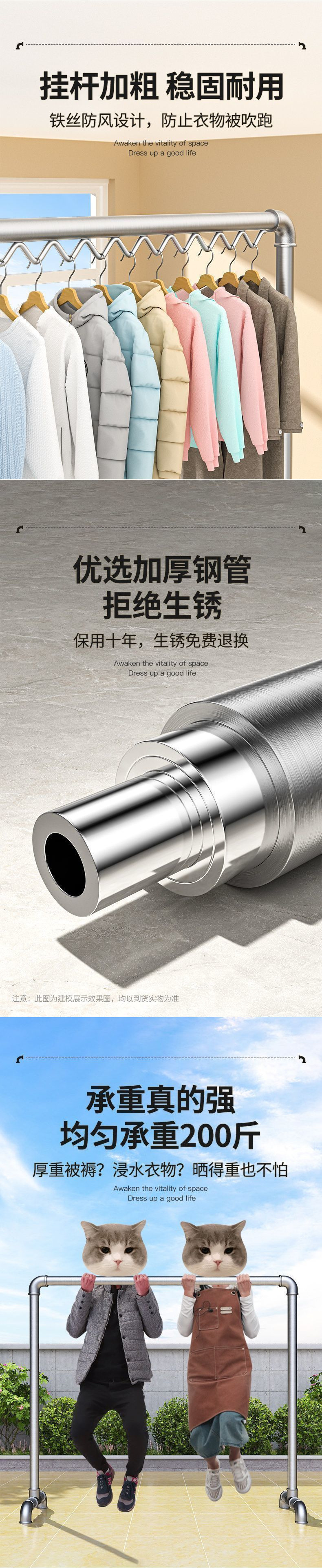 두꺼운 아연 도금 강관 건조 랙 바닥 가정용 발코니 옷걸이 야외 침실 워터 파이프 건조 랙스토어 가기