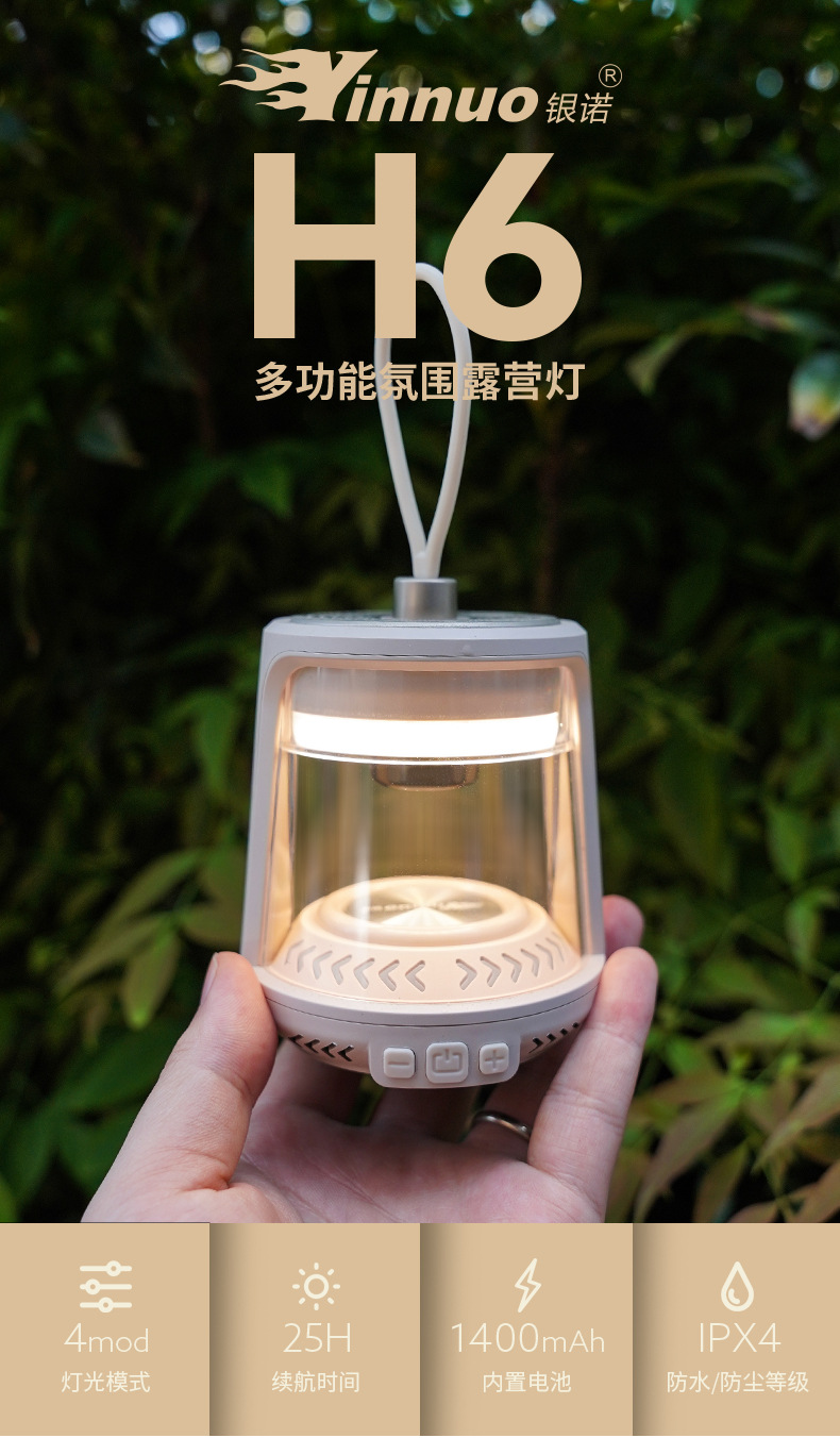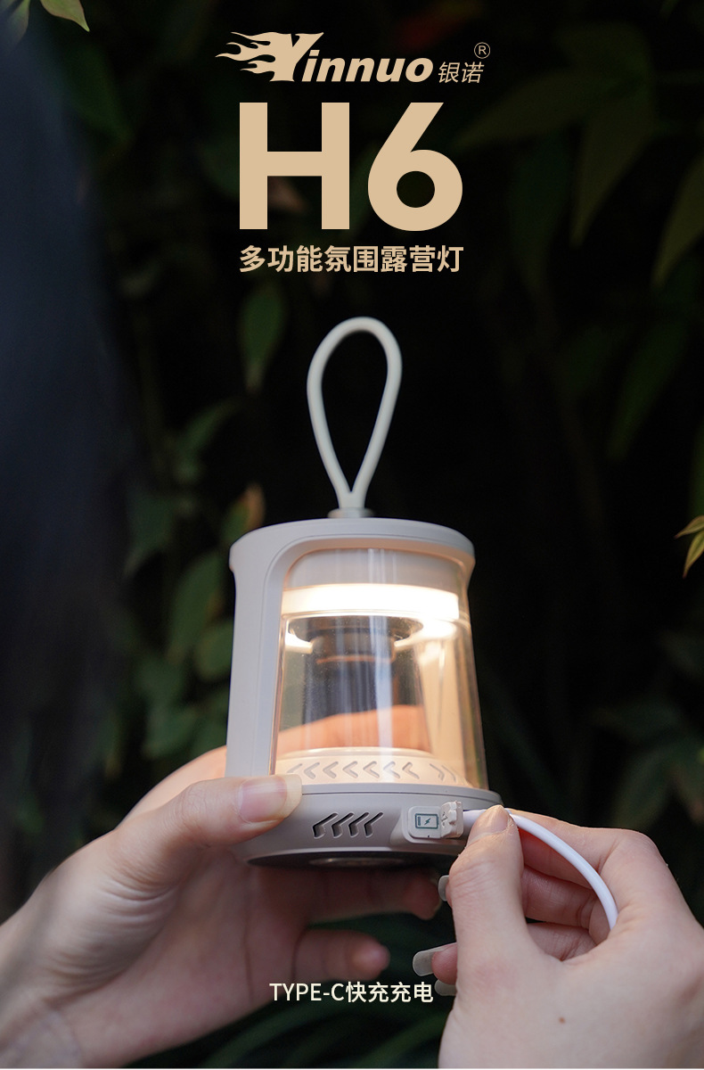 Yinnuo H6 캠핑 램프, 따뜻한 분위기, 긴 배터리 수명, 야외 휴대용 텐트 램프, 분위기 충전식 조명, 캠핑 교수형 램프스토어 가기
