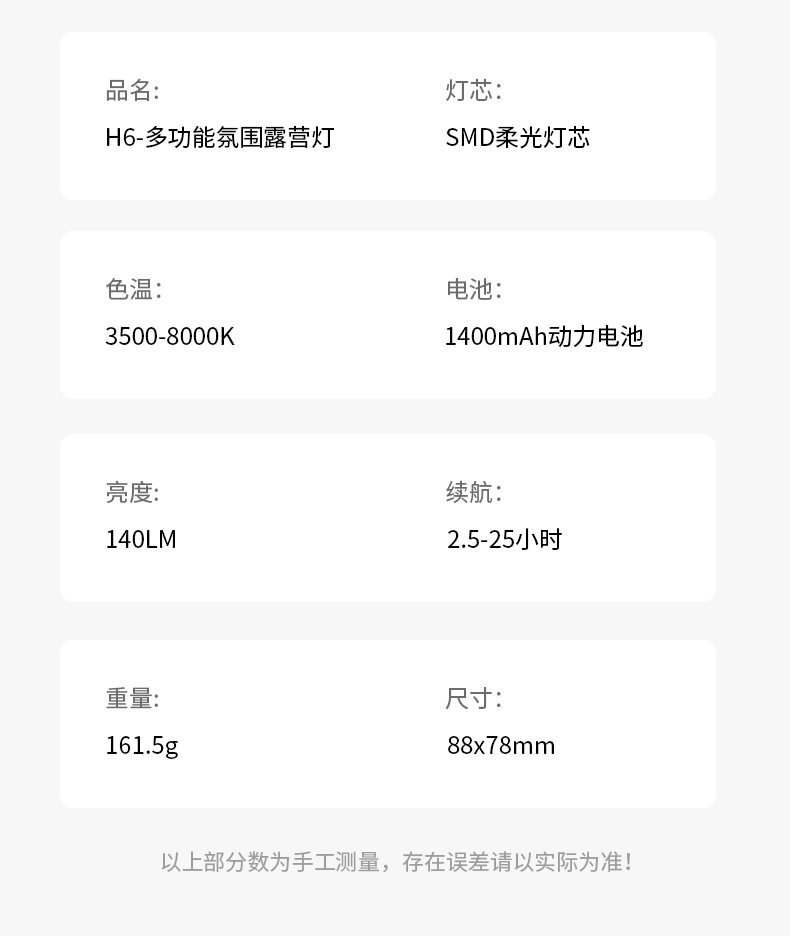 • H6【크림 화이트】분위기 캠핑 램프