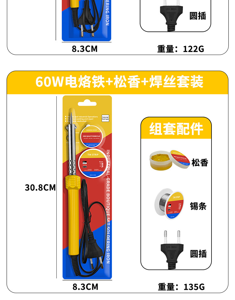 • 60W 고품질 납땜 인두 3종 세트-[원형 플러그 유럽 표준]