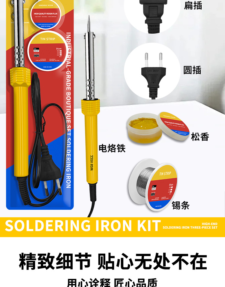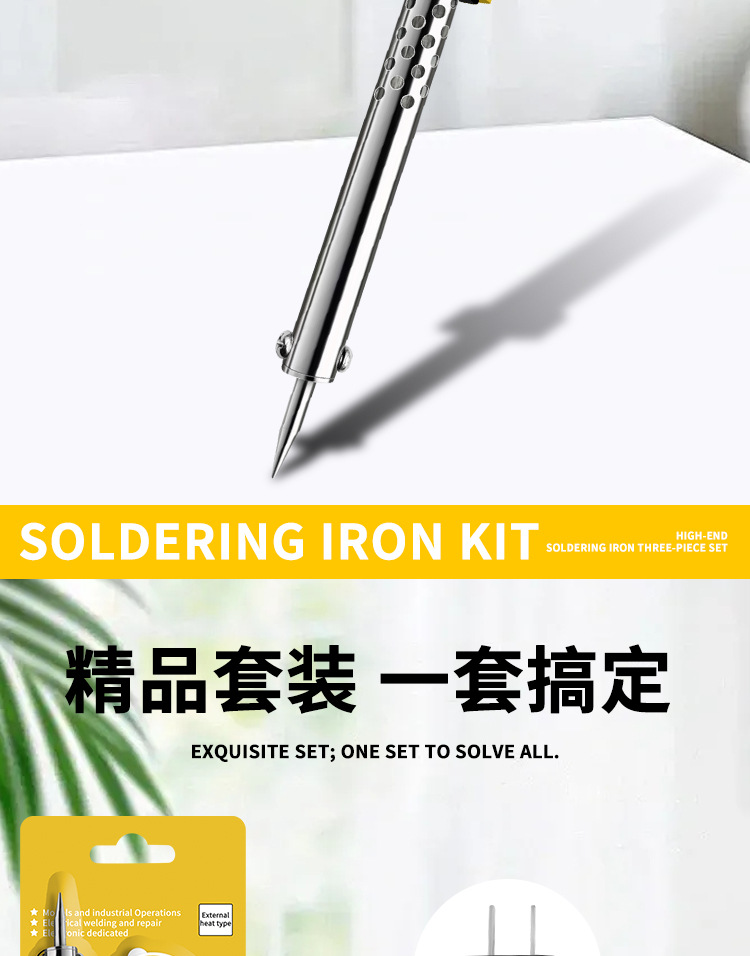 수리용 맞춤형 전기 납땜 인두 세트, 특수 항온 가정용 용접 주석 용접 와이어 60w 전문 등급 전기 납땜 펜 3피스 세트스토어 가기