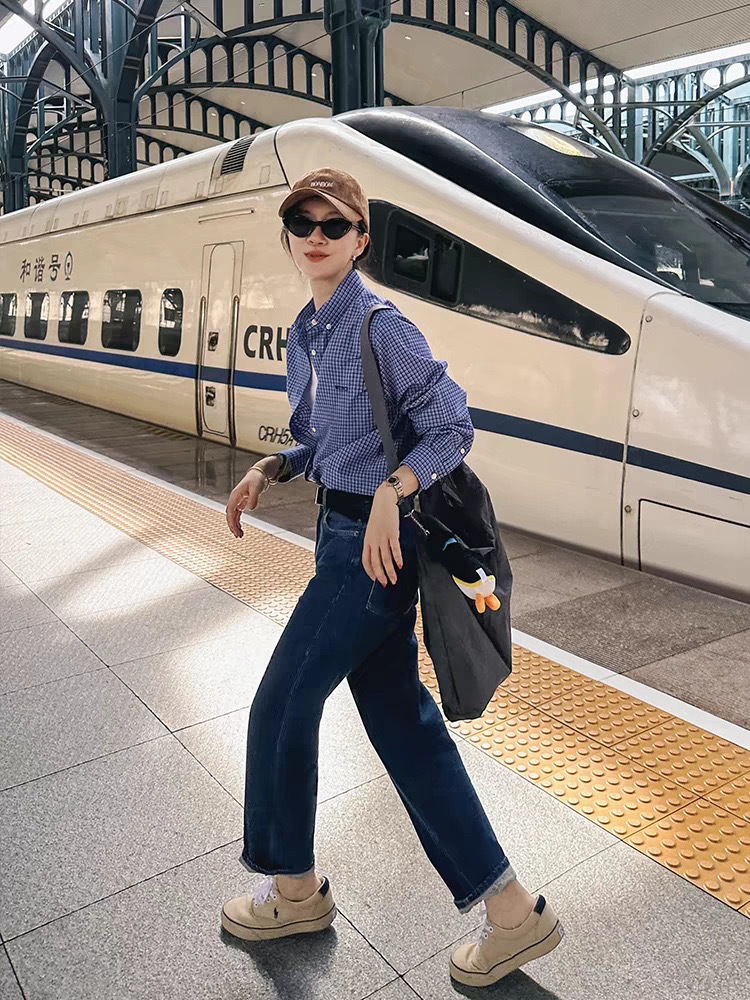 miumiu 여름 가을 아우터 스트라이프 체크 무늬 셔츠 싱글웨어 레이어드 캐주얼 루즈 긴팔 슬리밍 탑 여성용스토어 가기
