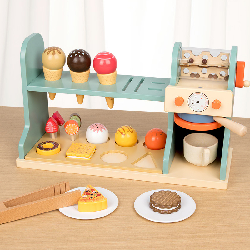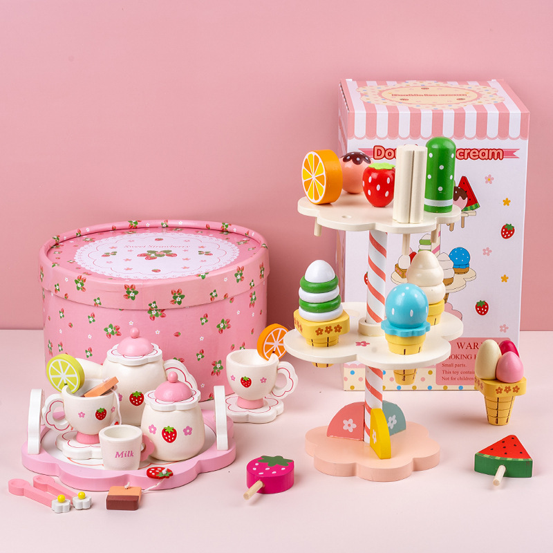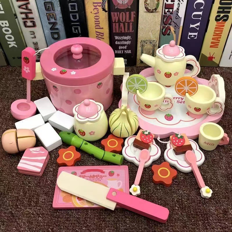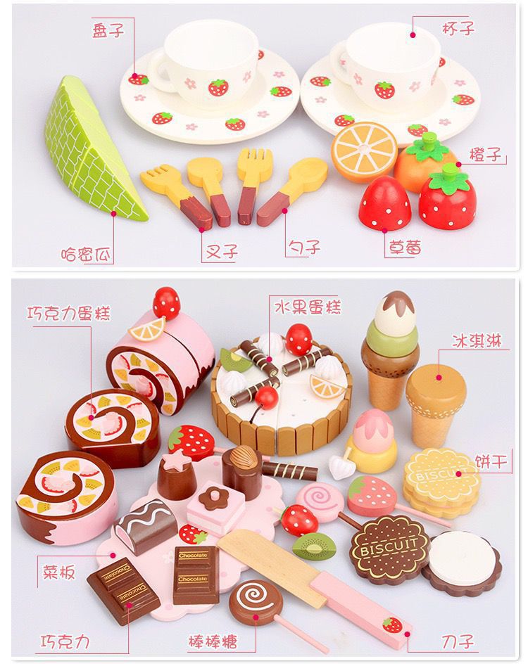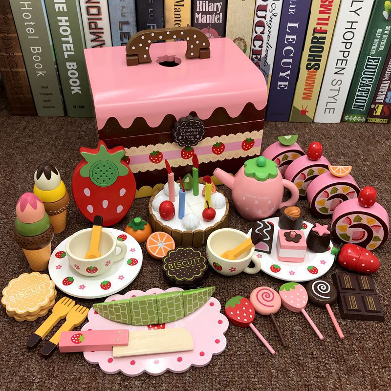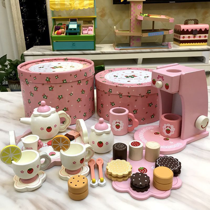 나무 놀이 주방 애프터눈 티 장난감 시뮬레이션 차 세트 생일 선물 어린 아이들을위한 시뮬레이션 케이크스토어 가기
