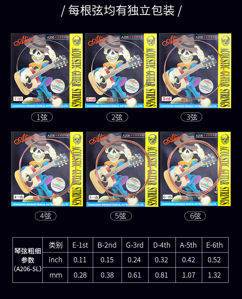 앨리스 A206 포크 기타 문자열 어쿠스틱 기타 문자열 기타 문자열 1 문자열 2 문자열 3/4/5/6 문자열 세트 문자열스토어 가기