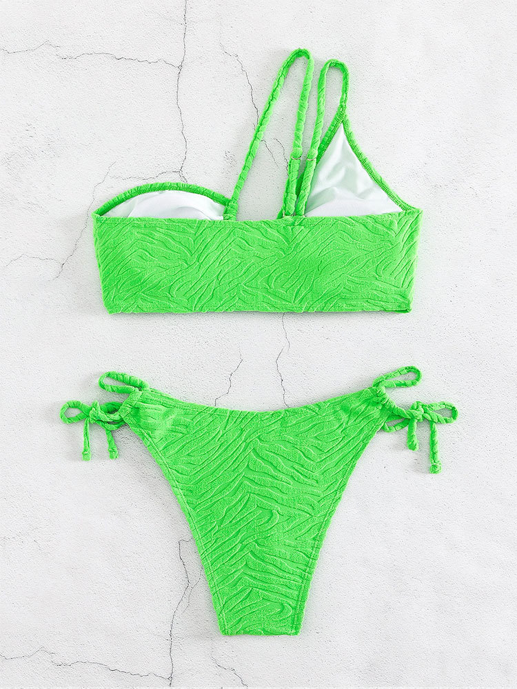 2025 대외 무역 새로운 줄무늬 한 어깨 비키니 유럽과 미국 섹시한 높은 허리 단색 수영복 여성 공장 재고 도매스토어 가기