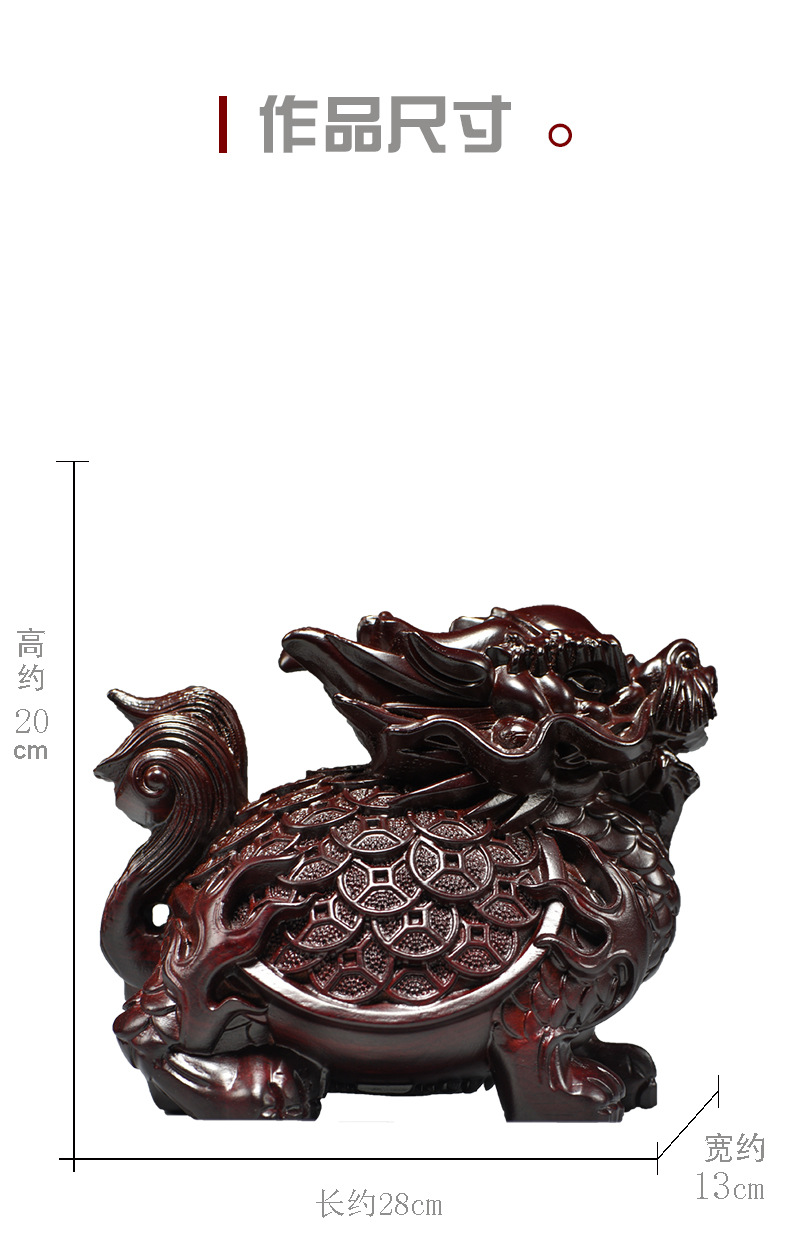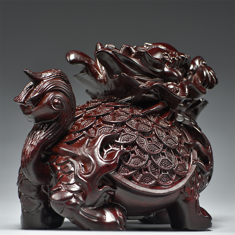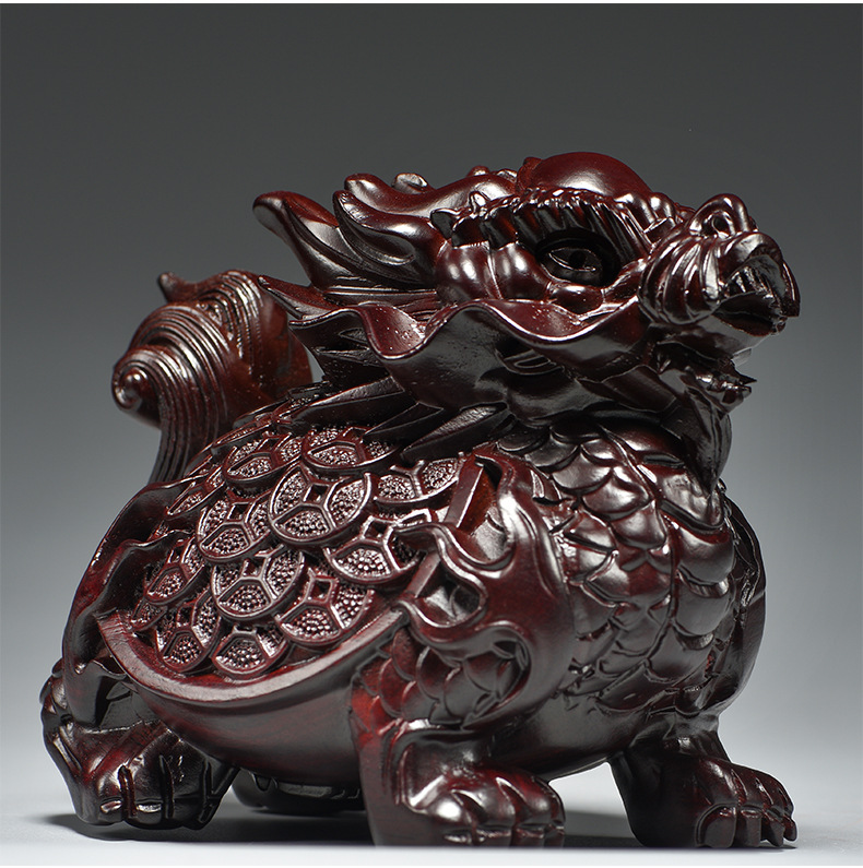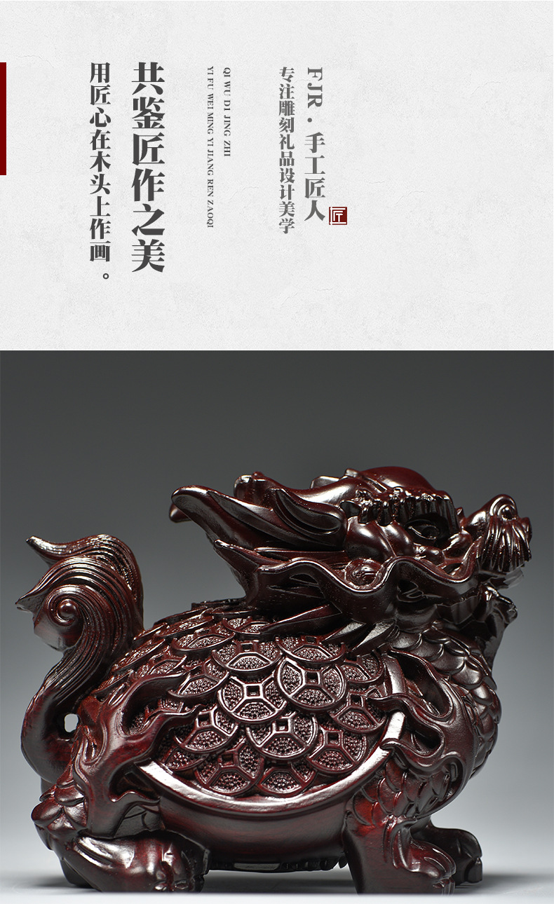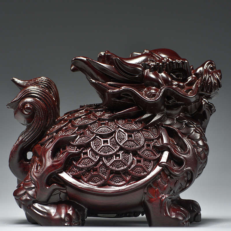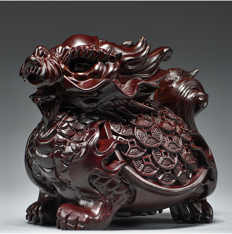 흑단 조각 용 거북이 장식품, 팔괘 금룡 거북이, 집 거실, 현관, 각도 마스코트, 풍수 장식