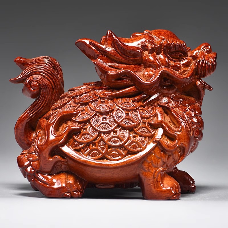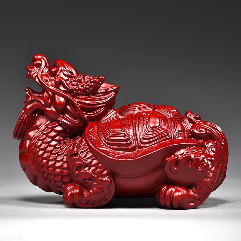• 붉은 나무 조각 용거북 [길이 10cm 싱글]