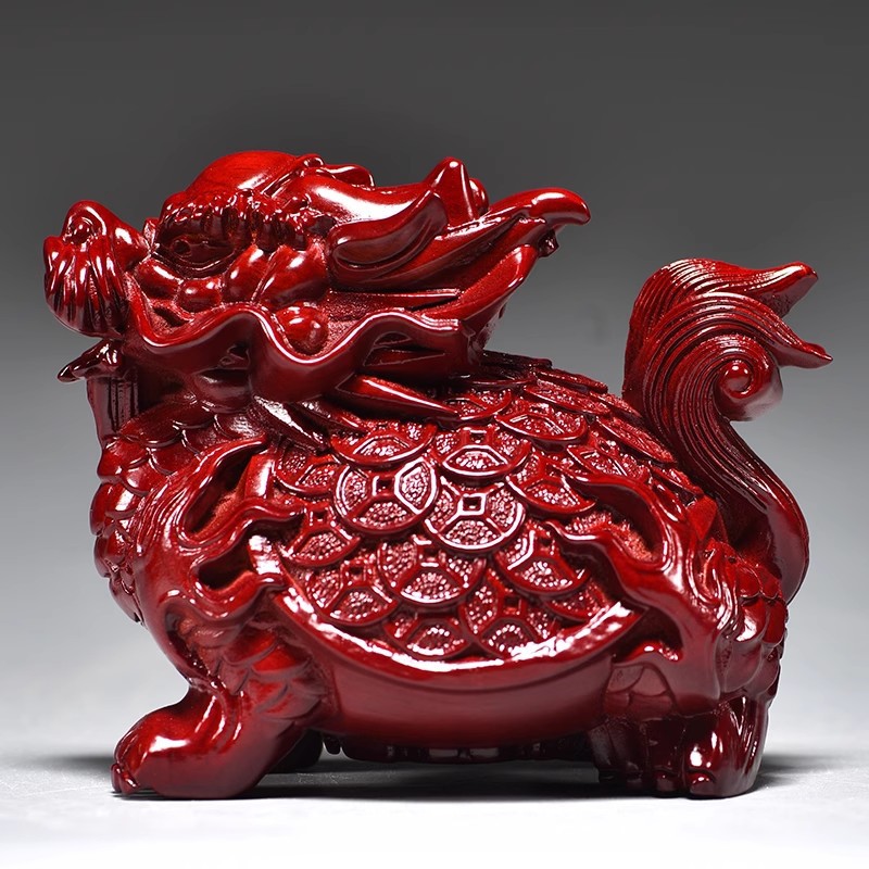 • 붉은 나무 조각 용거북 [길이 16cm 싱글]