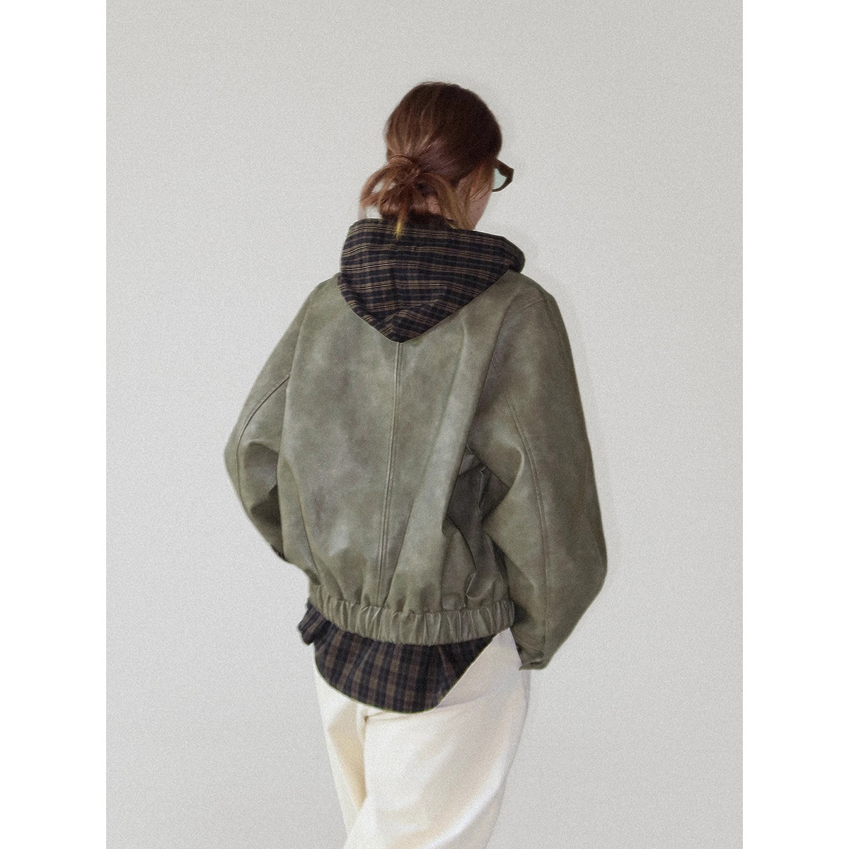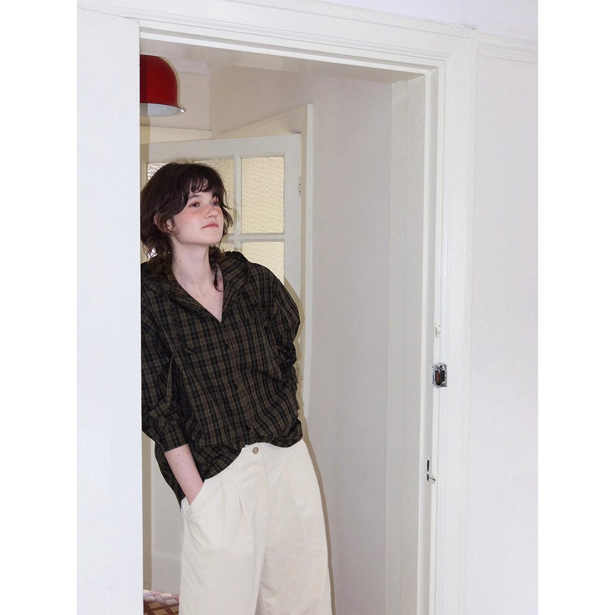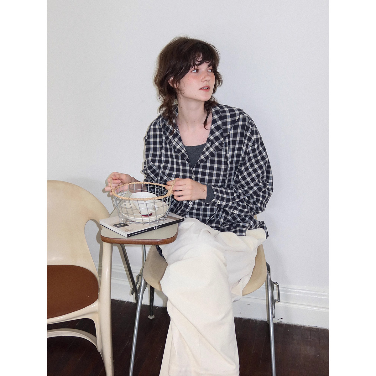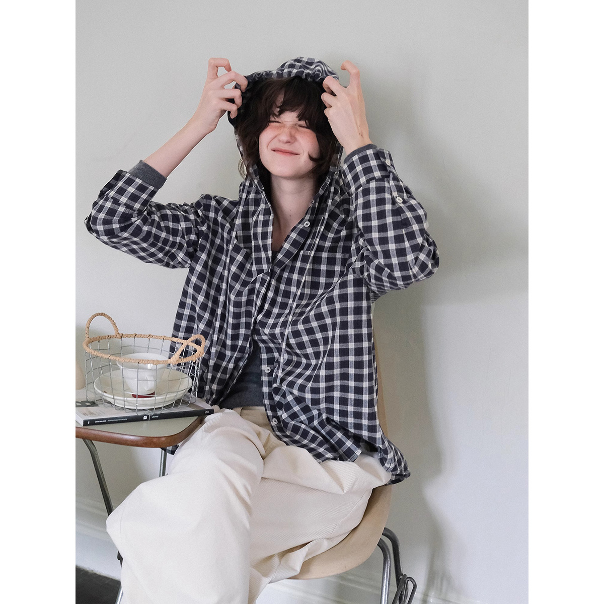 2592 # Letm 레트로 클래식' 여성용 북유럽 가을 경량 후드 체크 무늬 코튼 셔츠 재킷