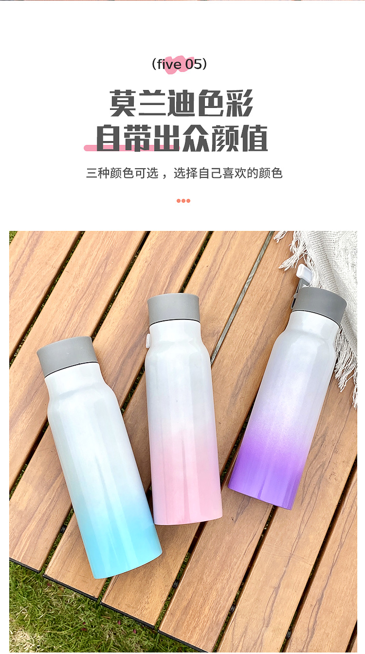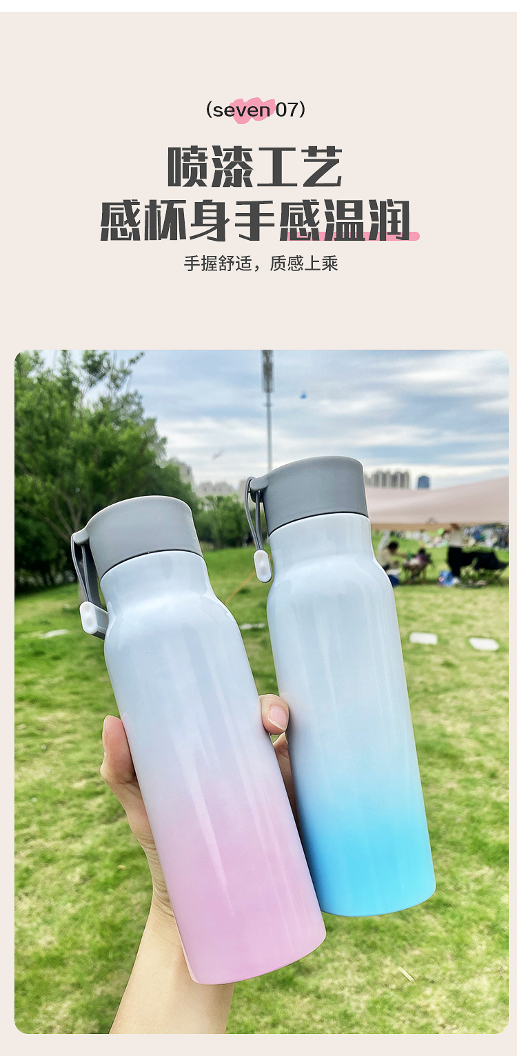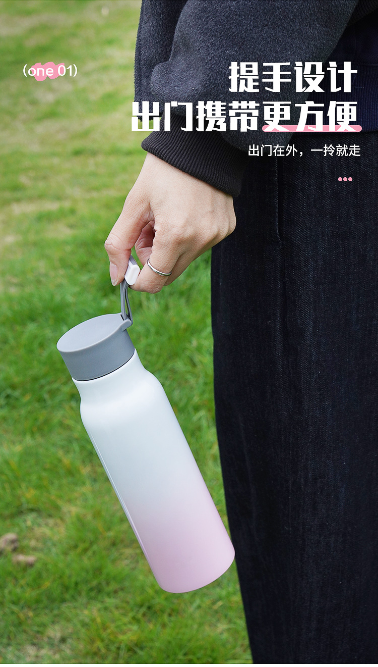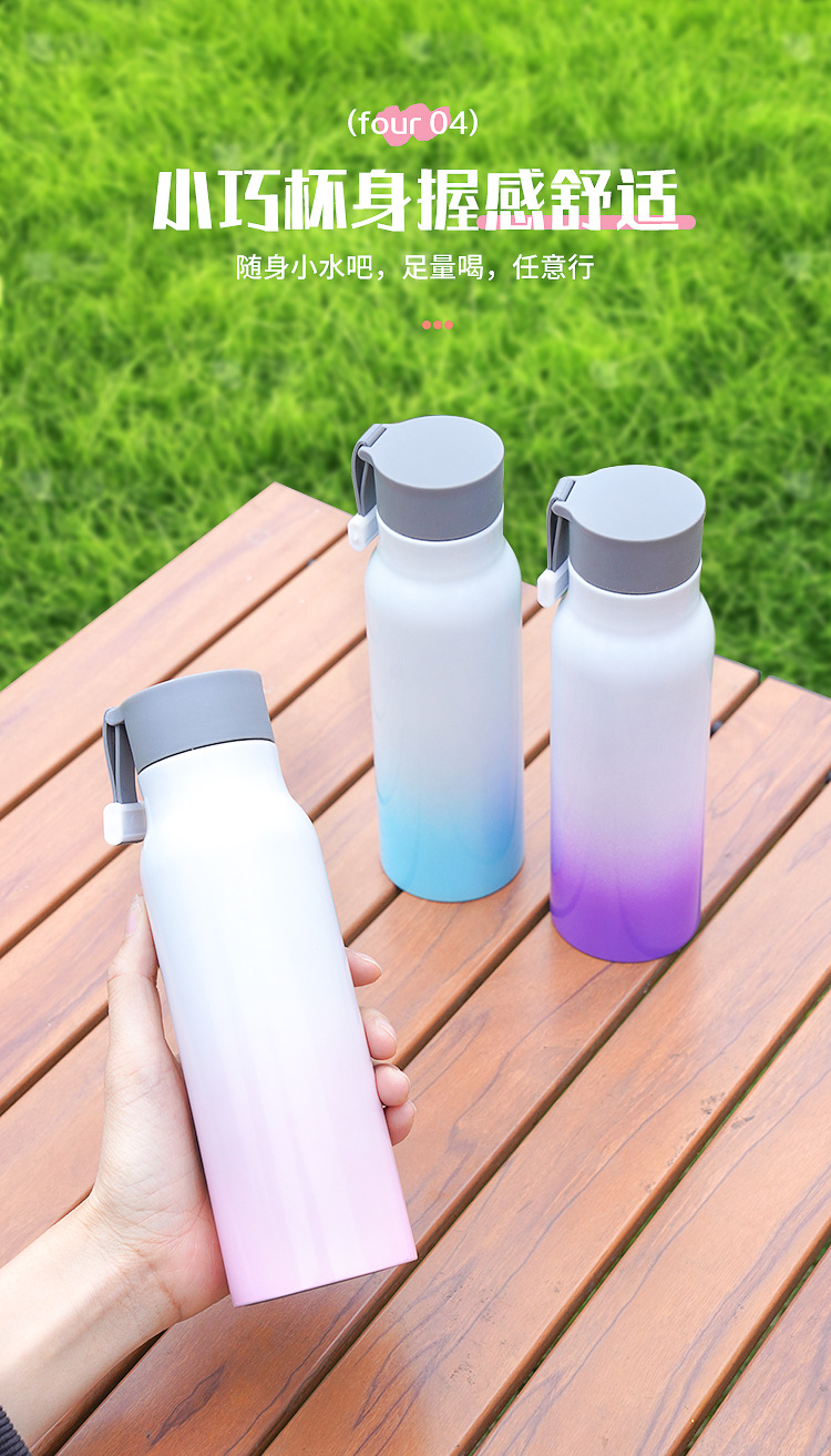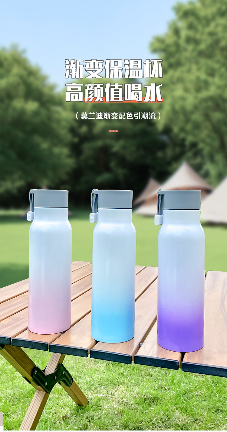 가정용 주전자 그라데이션 야외 휴대용 등산 스포츠 로프 진공 스테인레스 스틸 작은 입 병 보온병 컵 간단한스토어 가기
