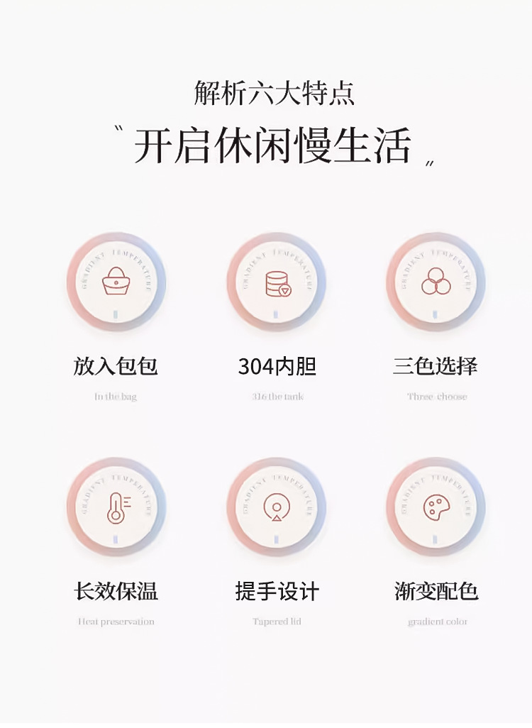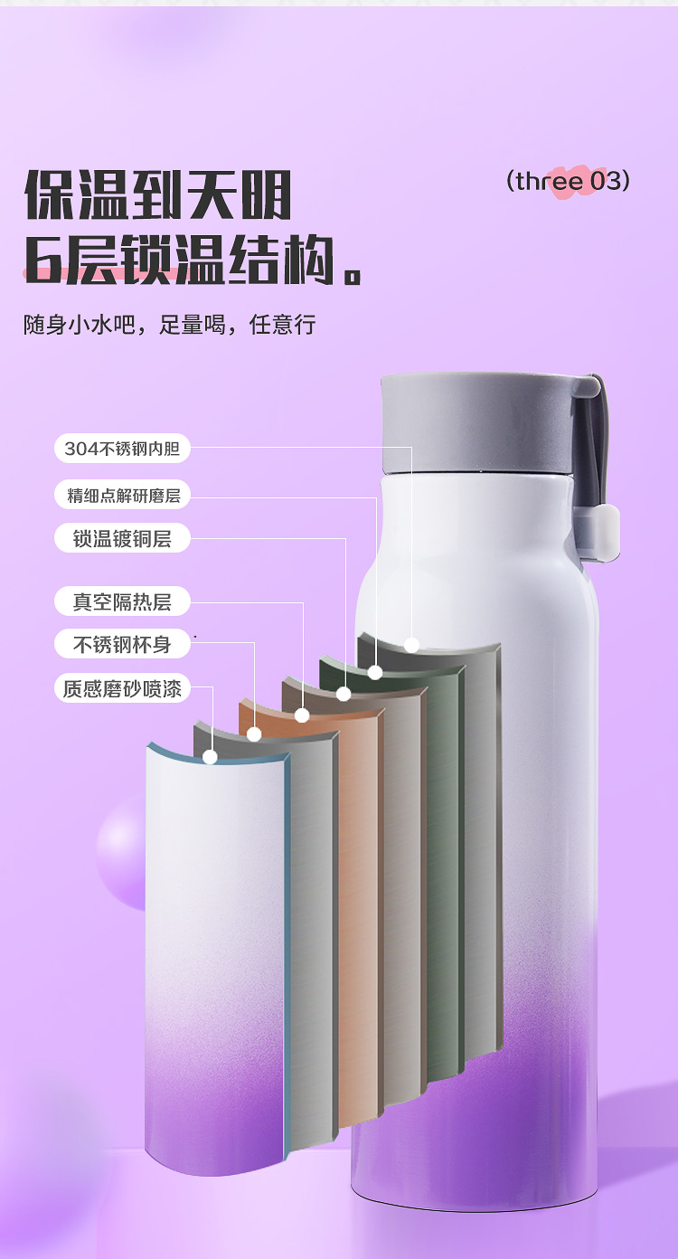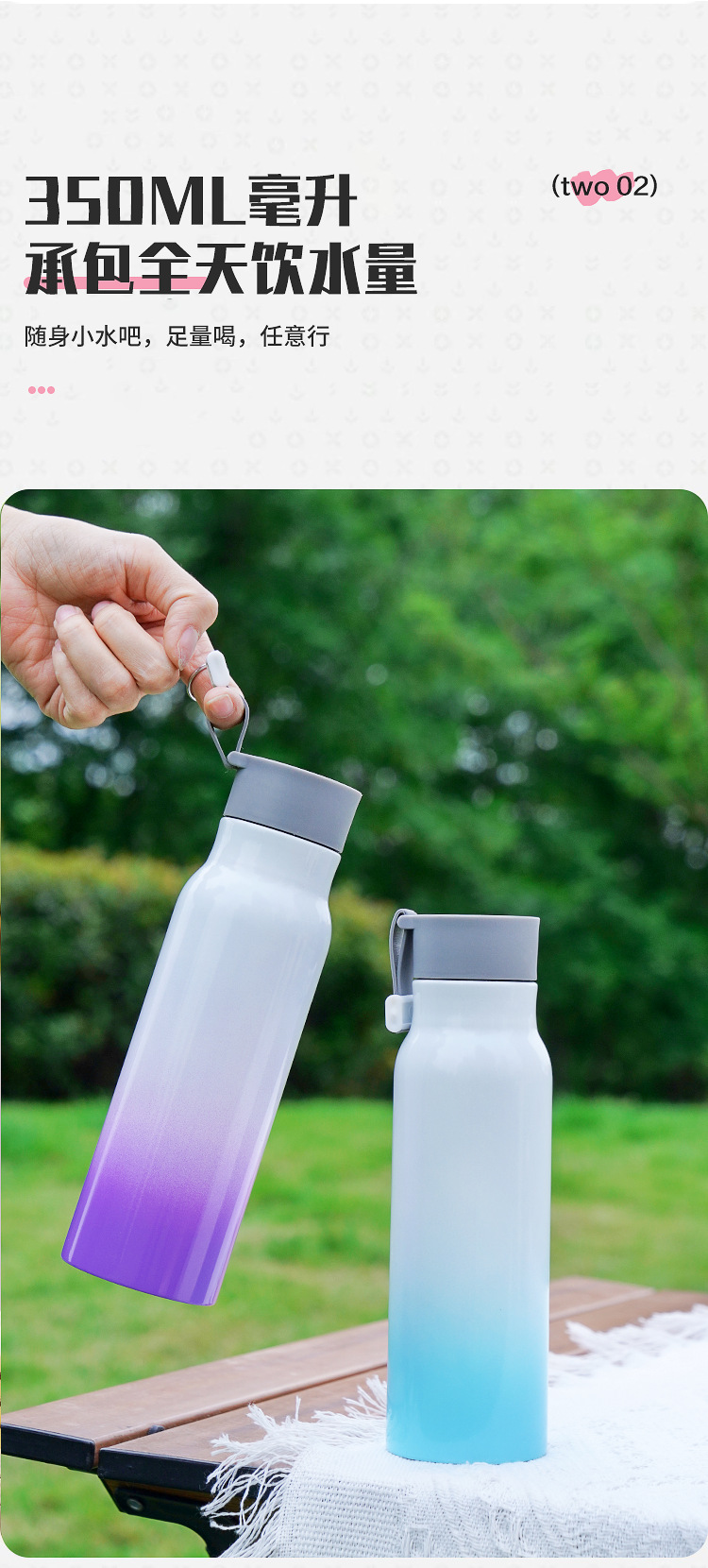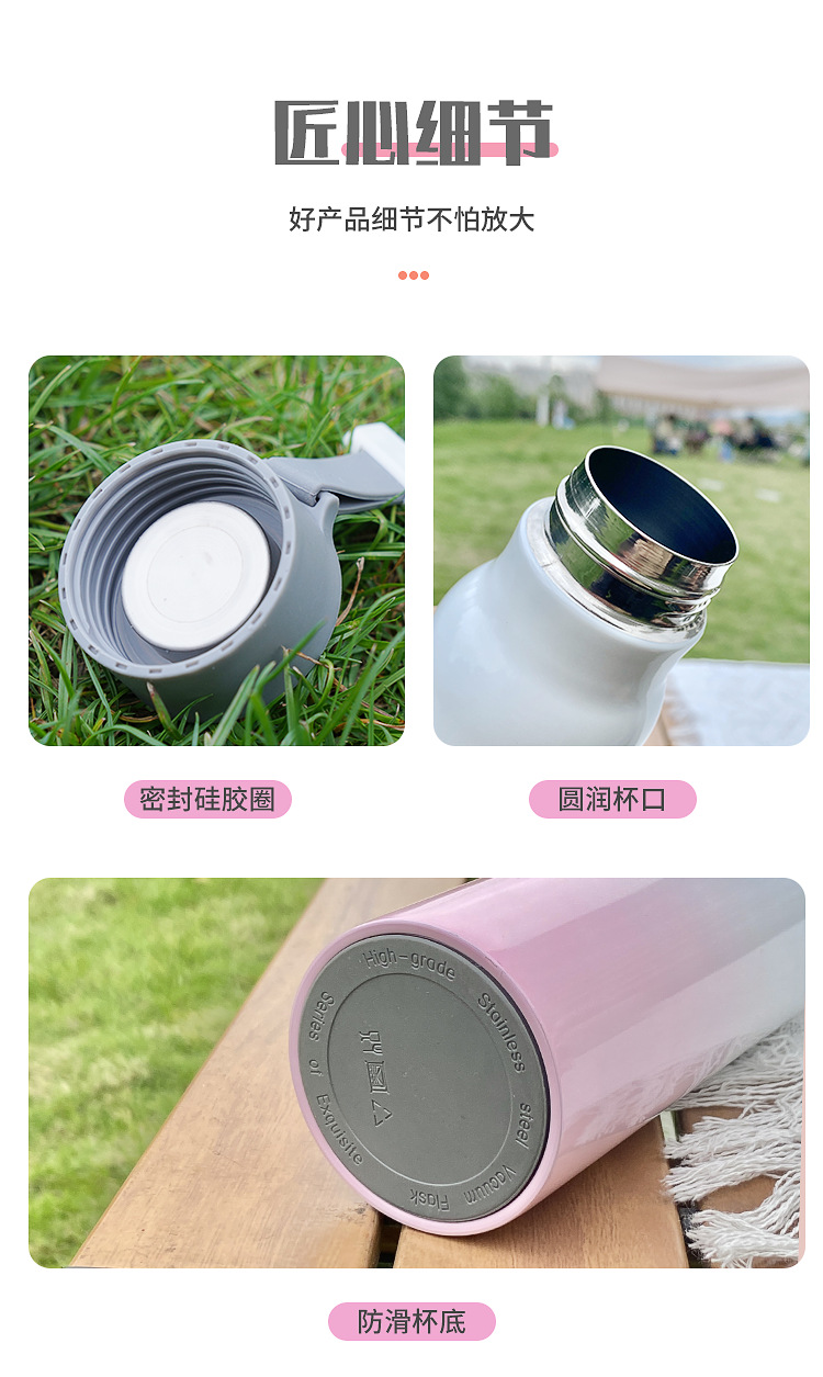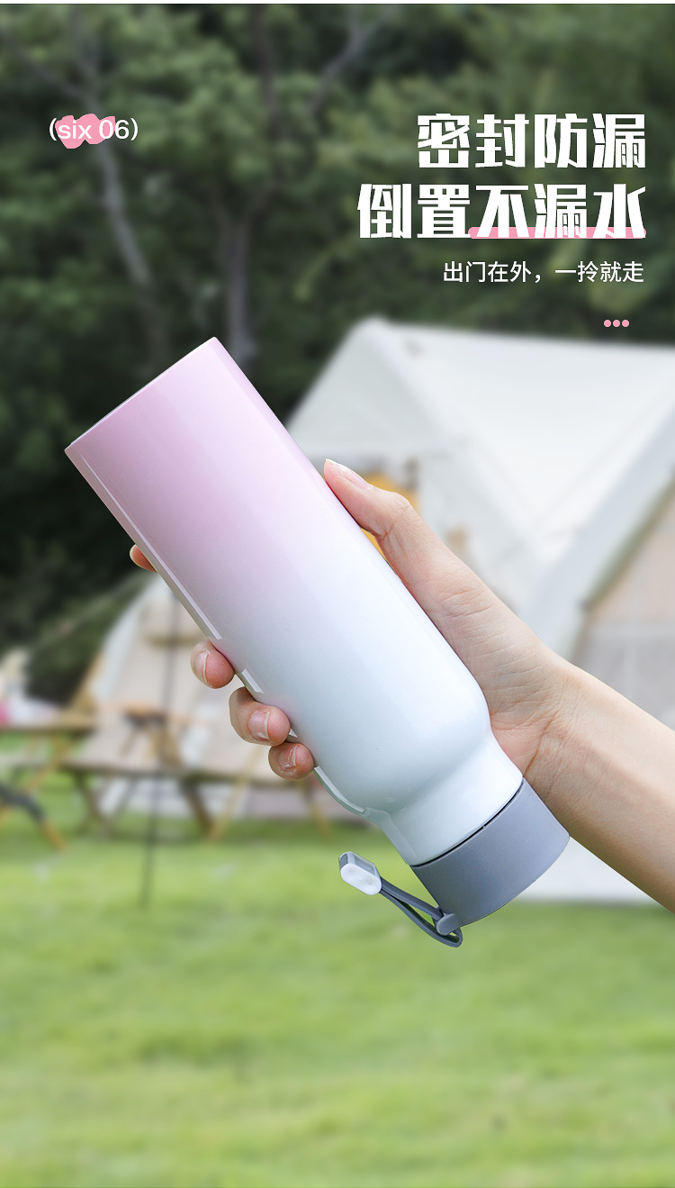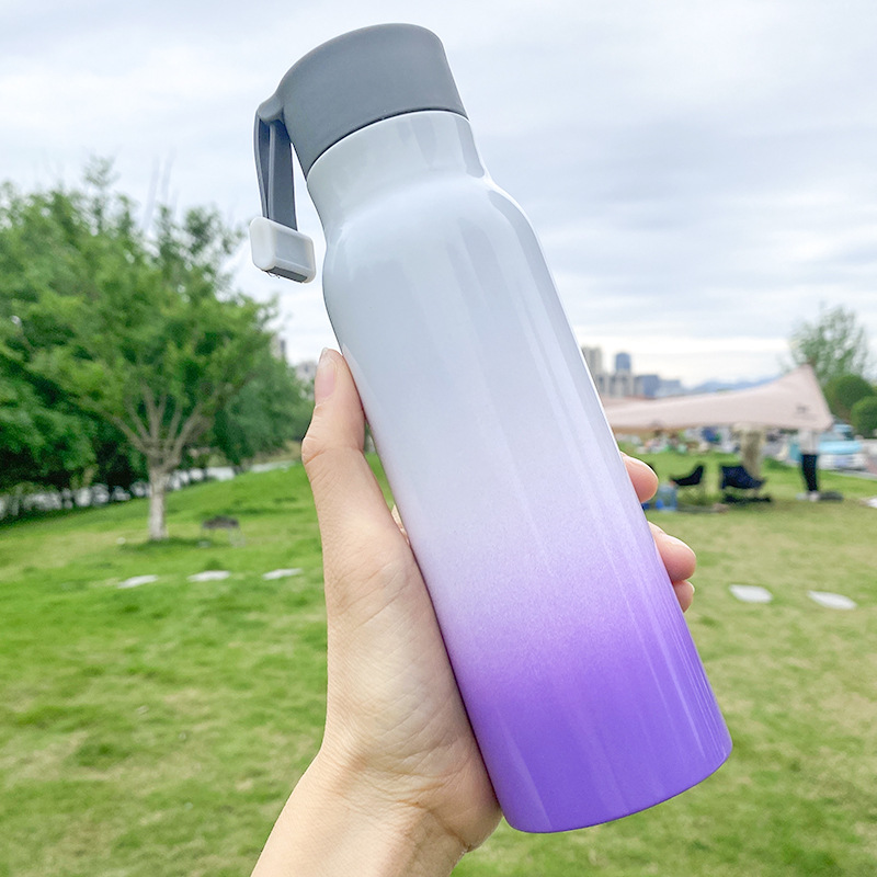 가정용 주전자 그라데이션 야외 휴대용 등산 스포츠 로프 진공 스테인레스 스틸 작은 입 병 보온병 컵 간단한스토어 가기