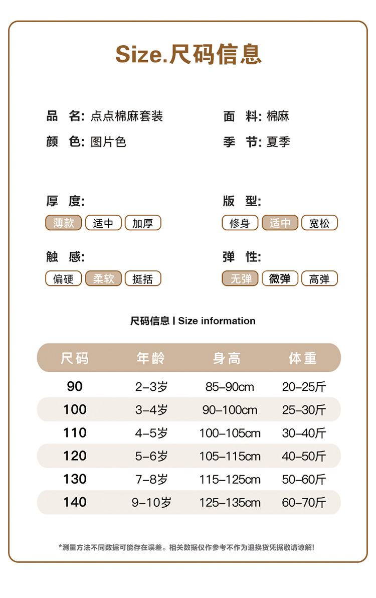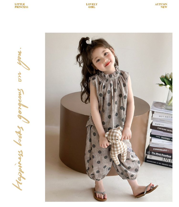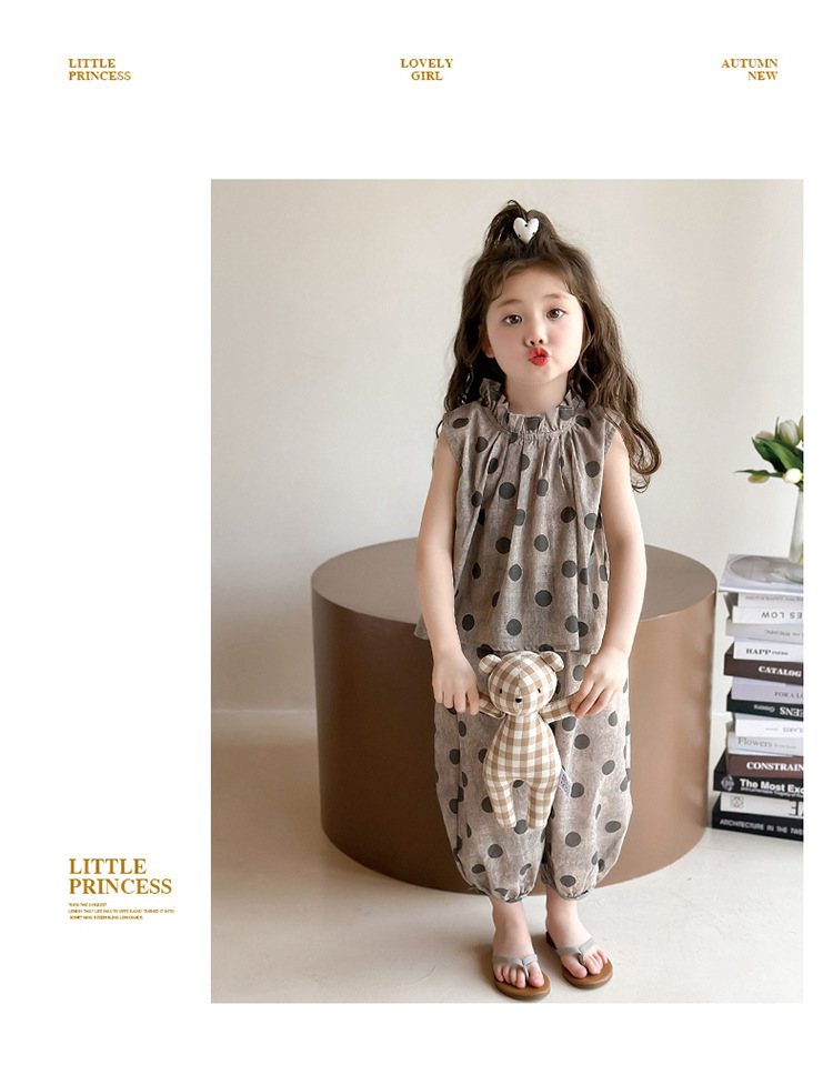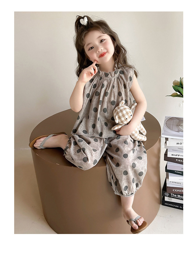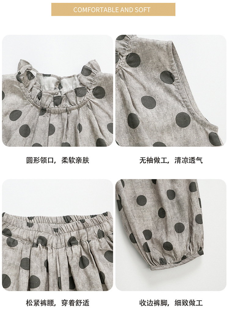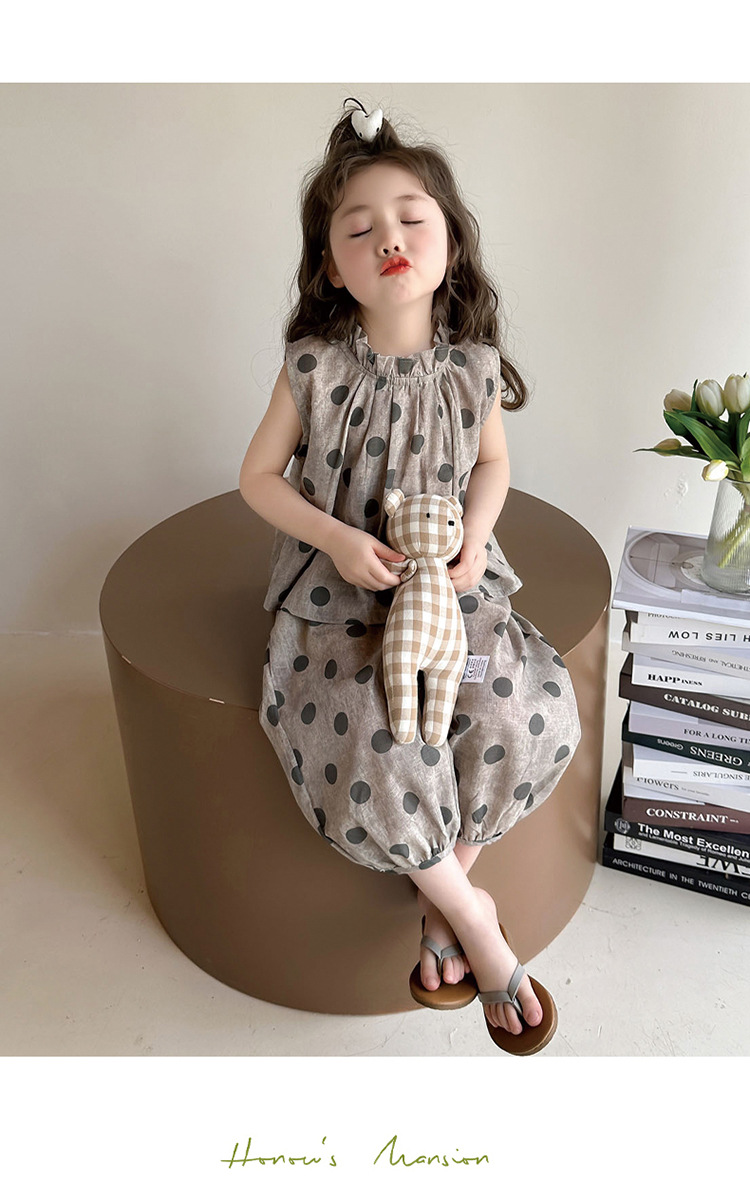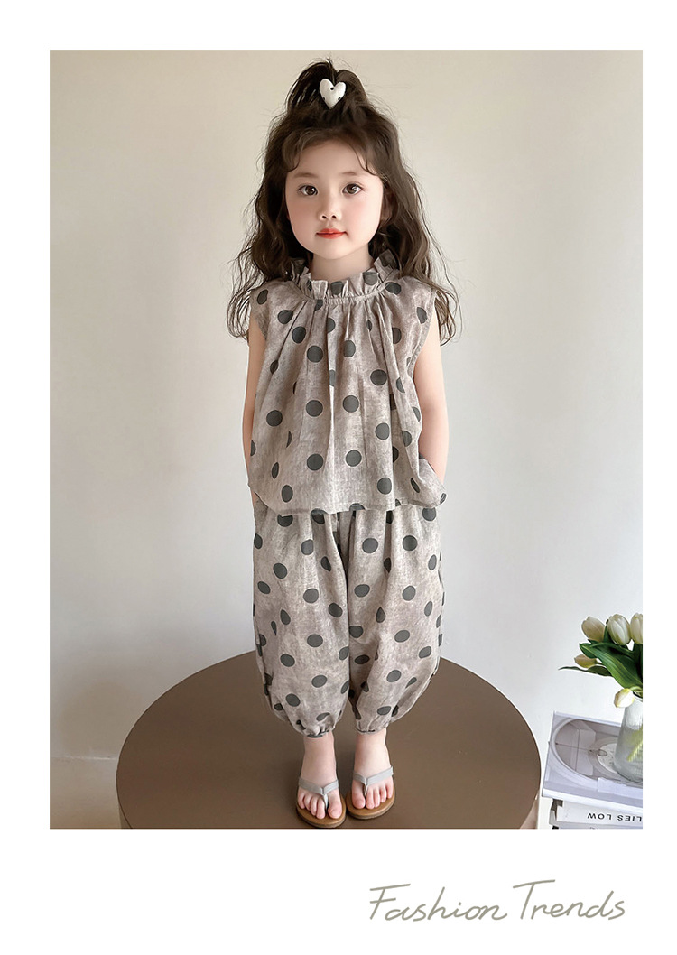 소녀 웨이브 포인트 코튼 앤 리넨 세트 2025 여름 새 패션 소녀 세련된 투피스 세트 중소 어린이 여름 원피스스토어 가기