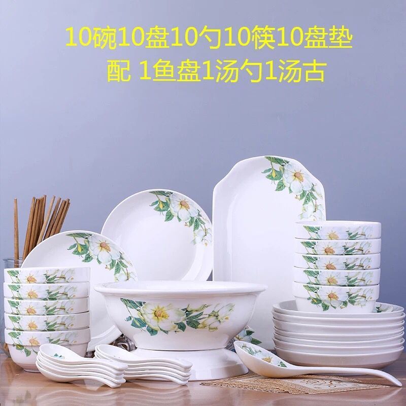10인용 가정용 접시 세트, 세라믹 식기 세트, 간단한 그릇과 젓가락, 인 스타일의 가벼운 고급 식기