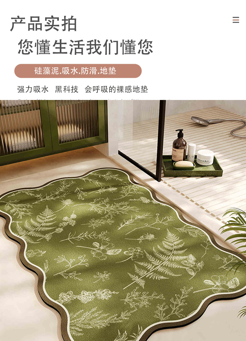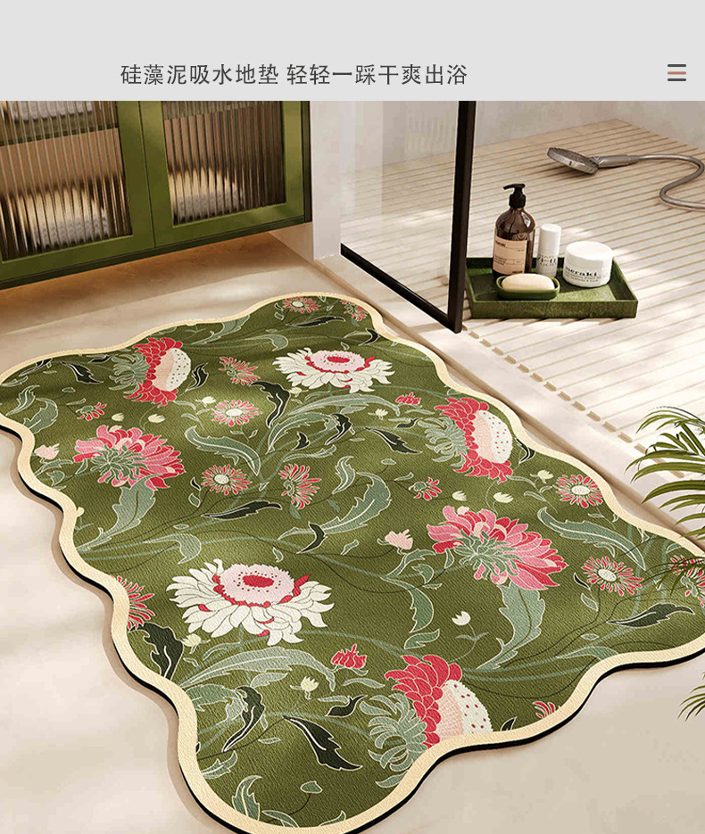 가벼운 고급 꽃 Diatom 진흙 바닥 매트 욕실 물 흡수성 빠른 건조 발 매트 가정용 미끄럼 쉬운 관리 바닥 매트스토어 가기