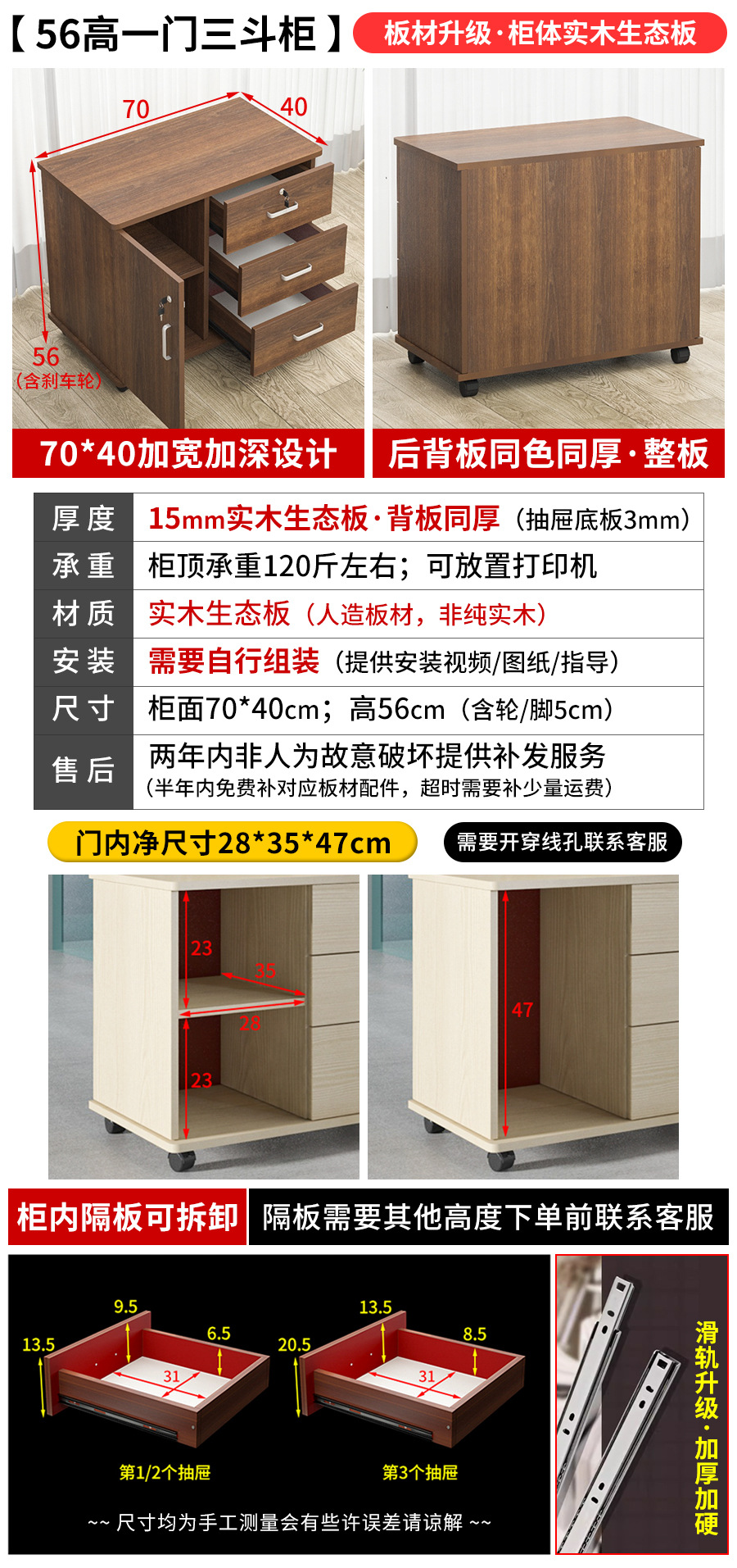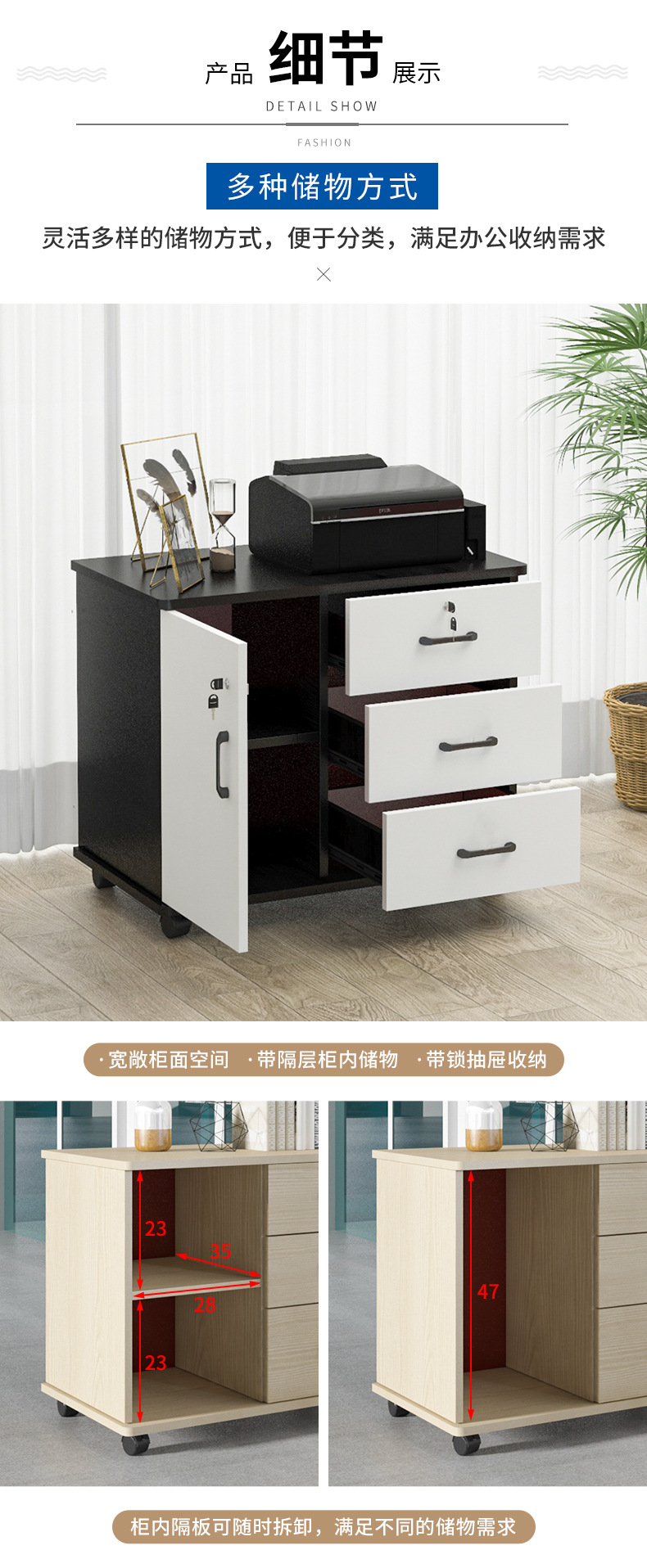 사무실 모바일 파일 캐비닛 슬라이드 레일이 있는 잠금 캐비닛이 있는 단단한 나무 에코 보드 다층 서랍 캐비닛 보관 mm^스토어 가기