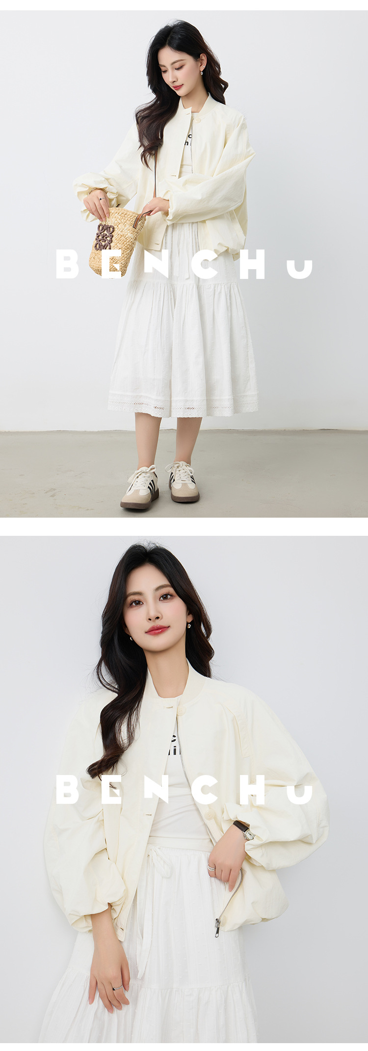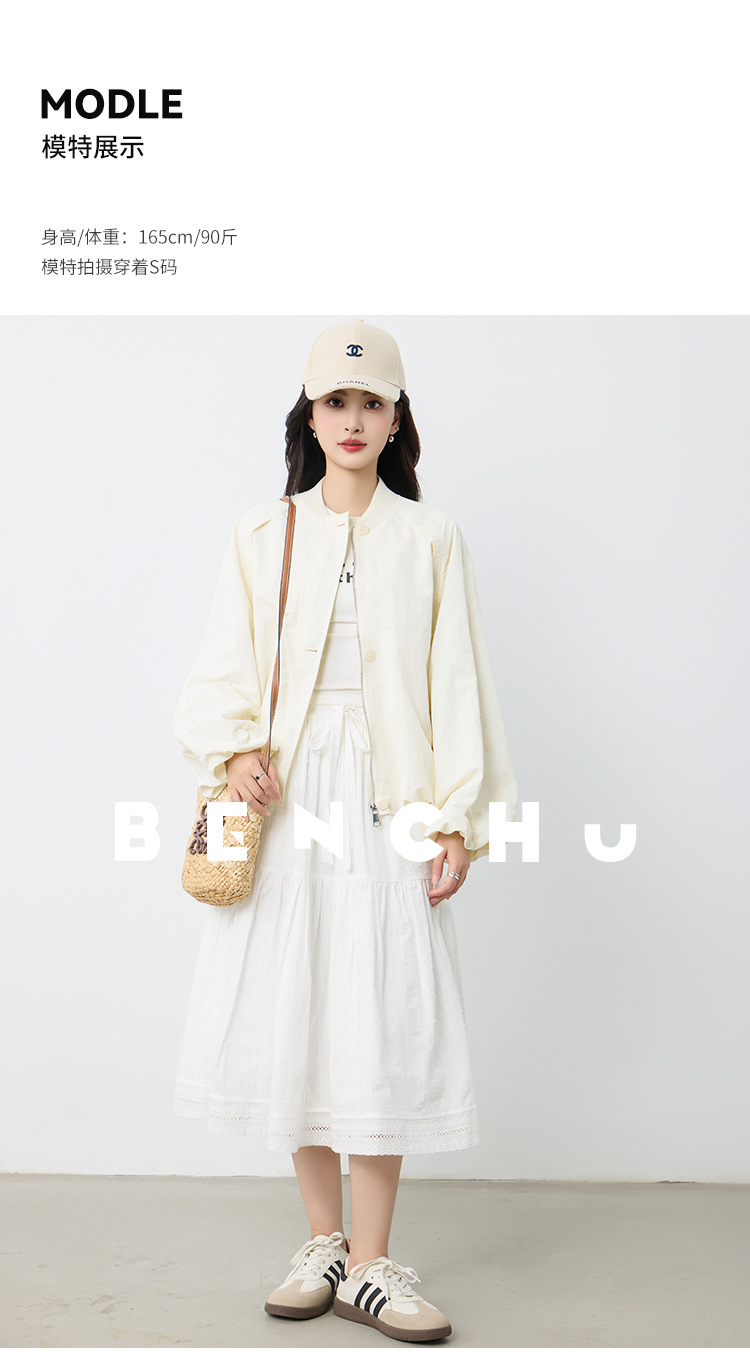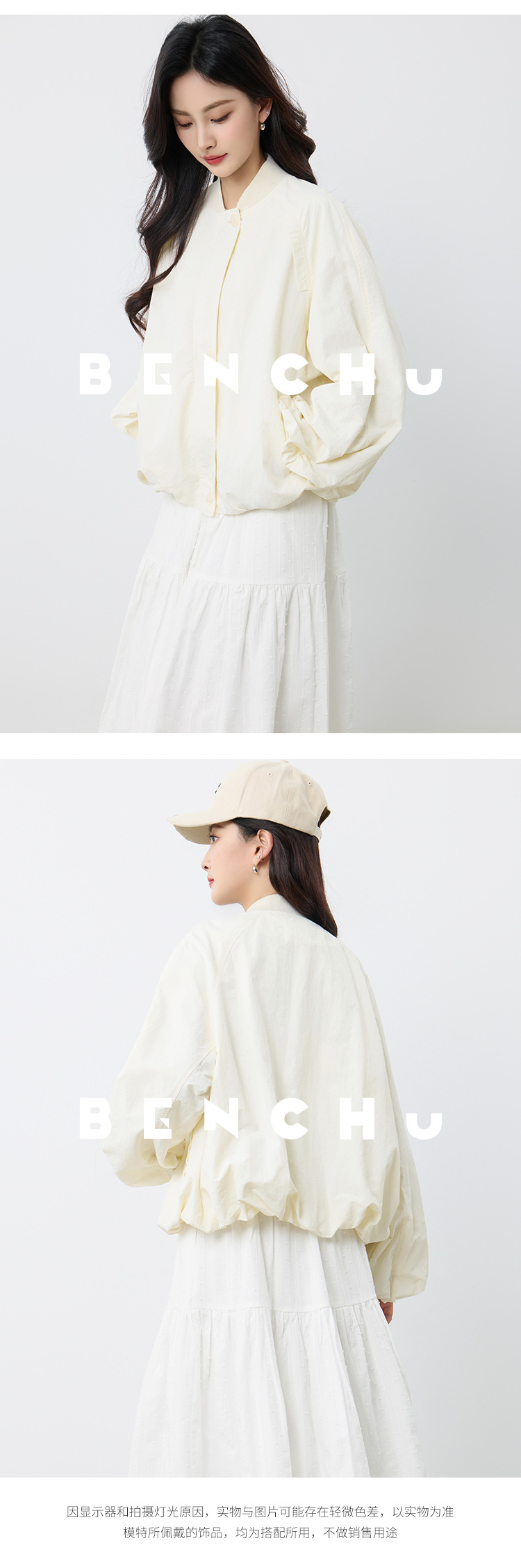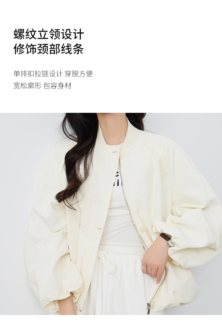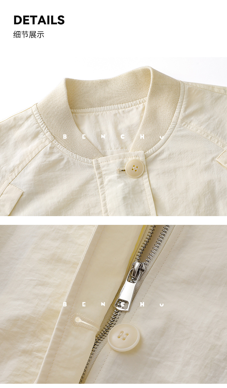 [벤 추] 느슨한 캐주얼 조커 야구 재킷 둥근 목 얇은 지퍼 선 스크린 재킷 여성의 한국판