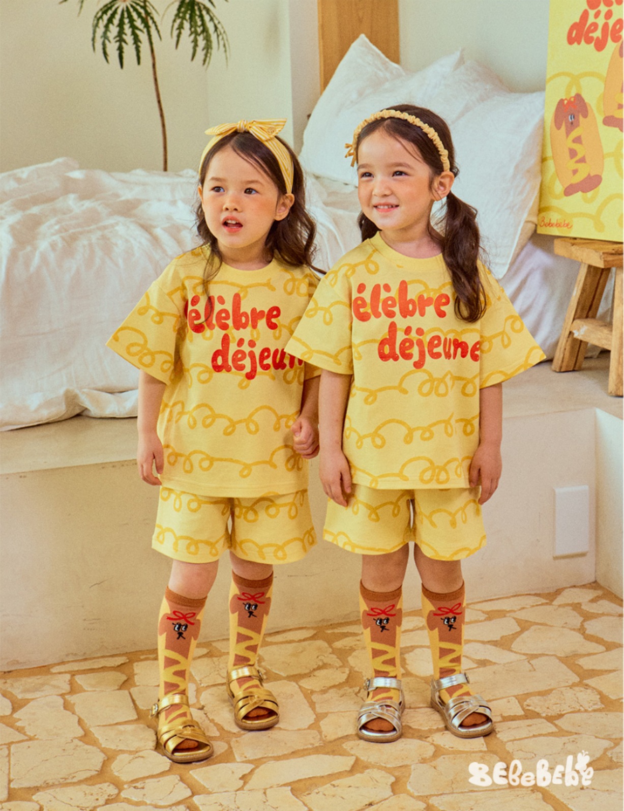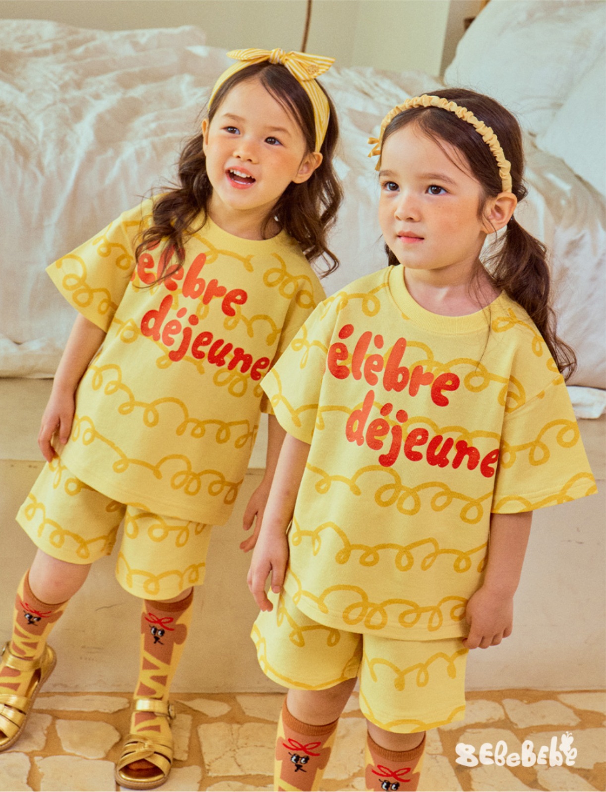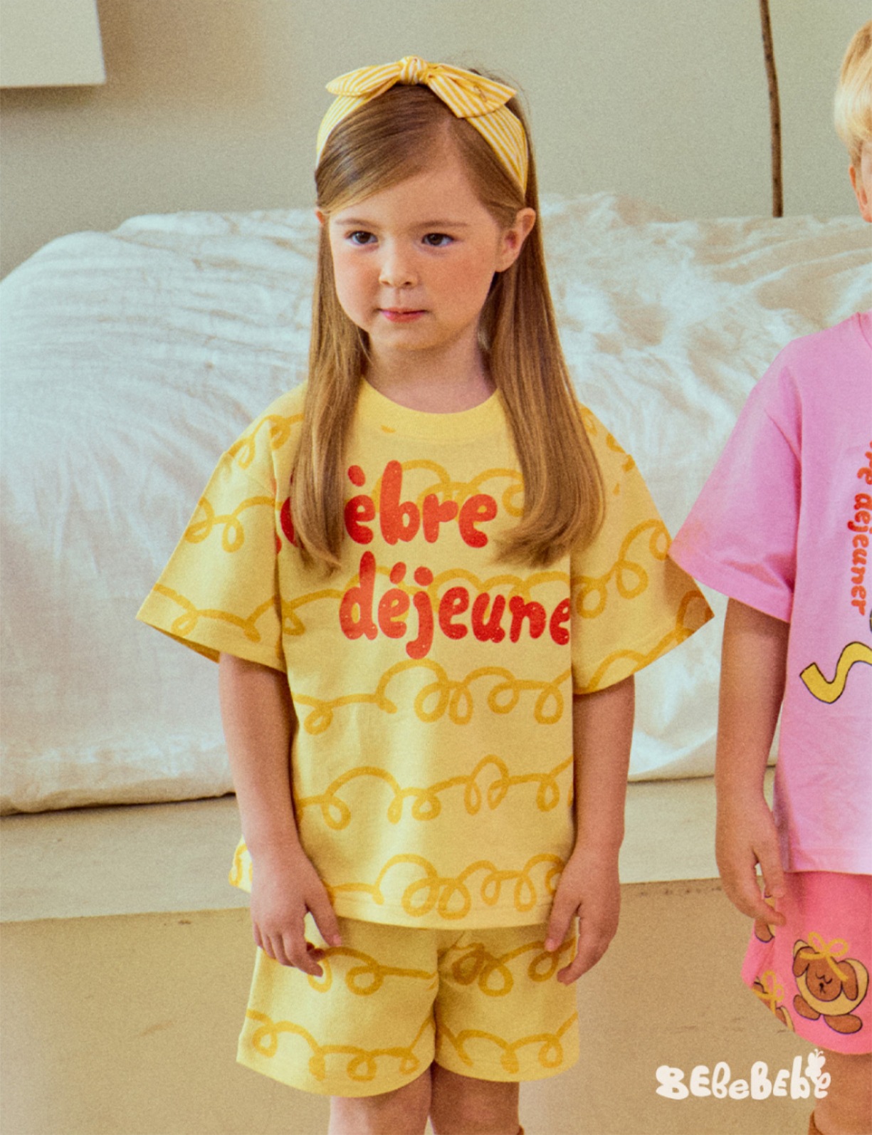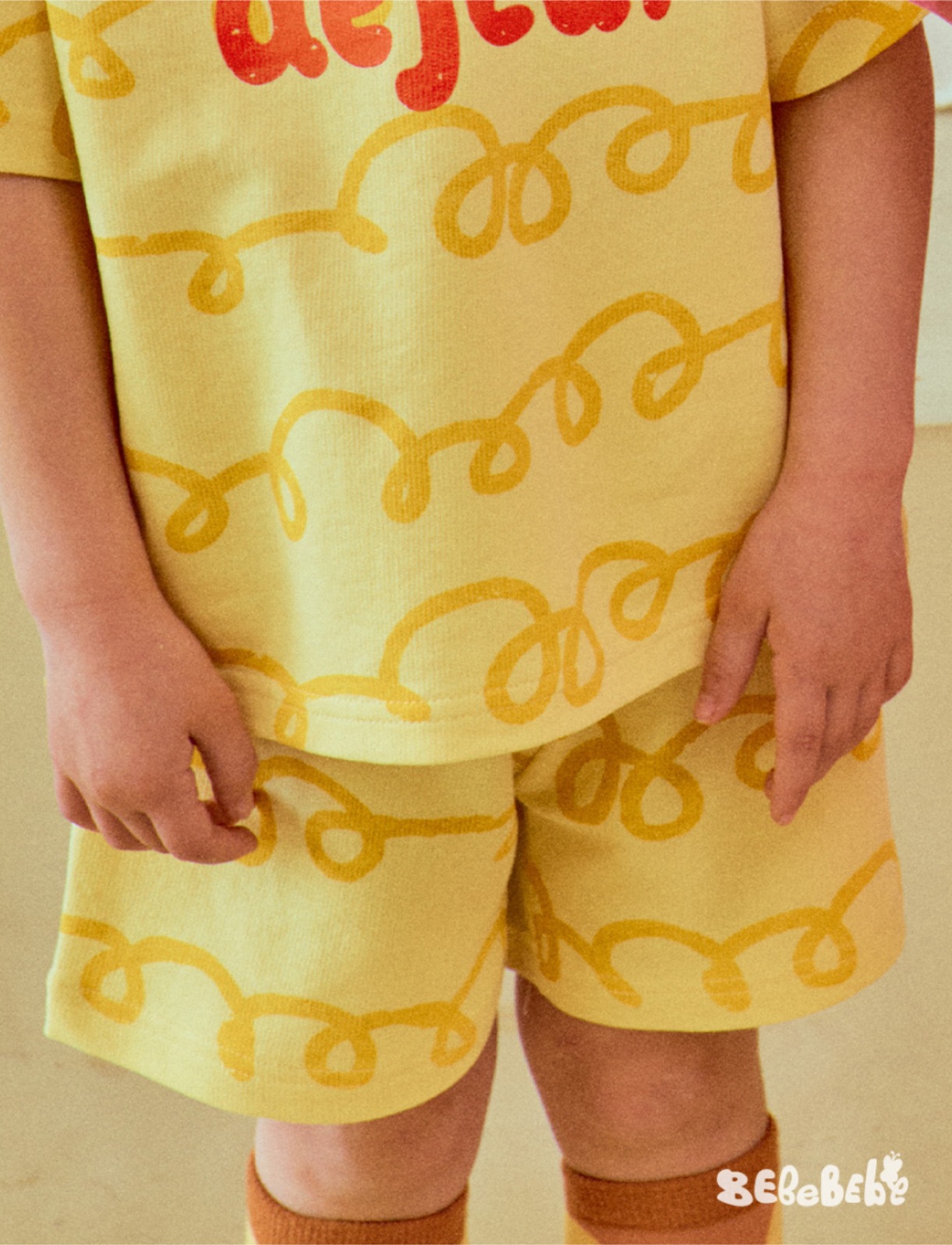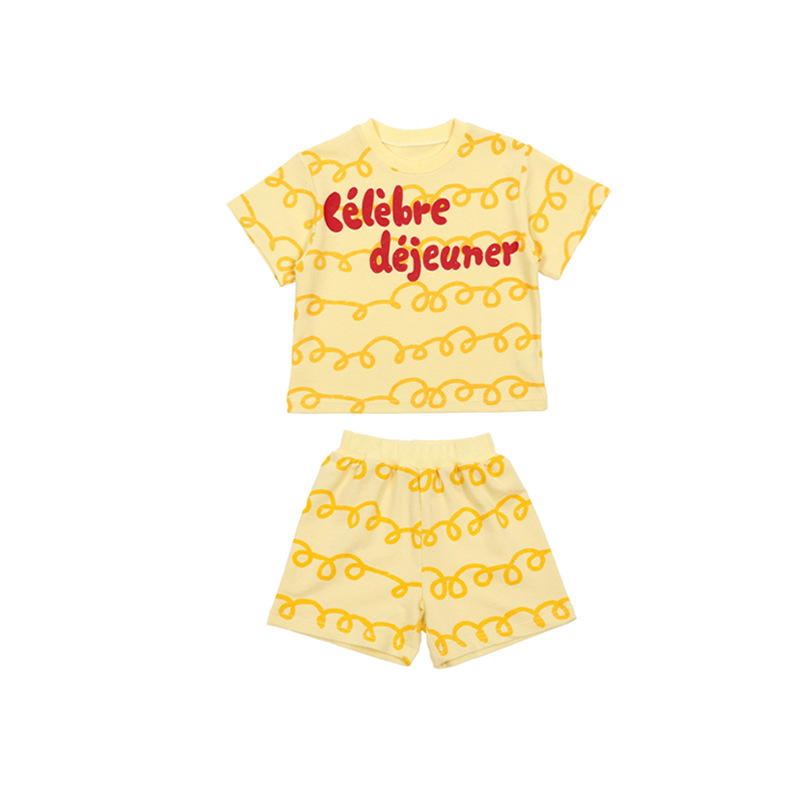 • BE 옐로우 웨이브 스트라이프 티셔츠 반바지 세트
