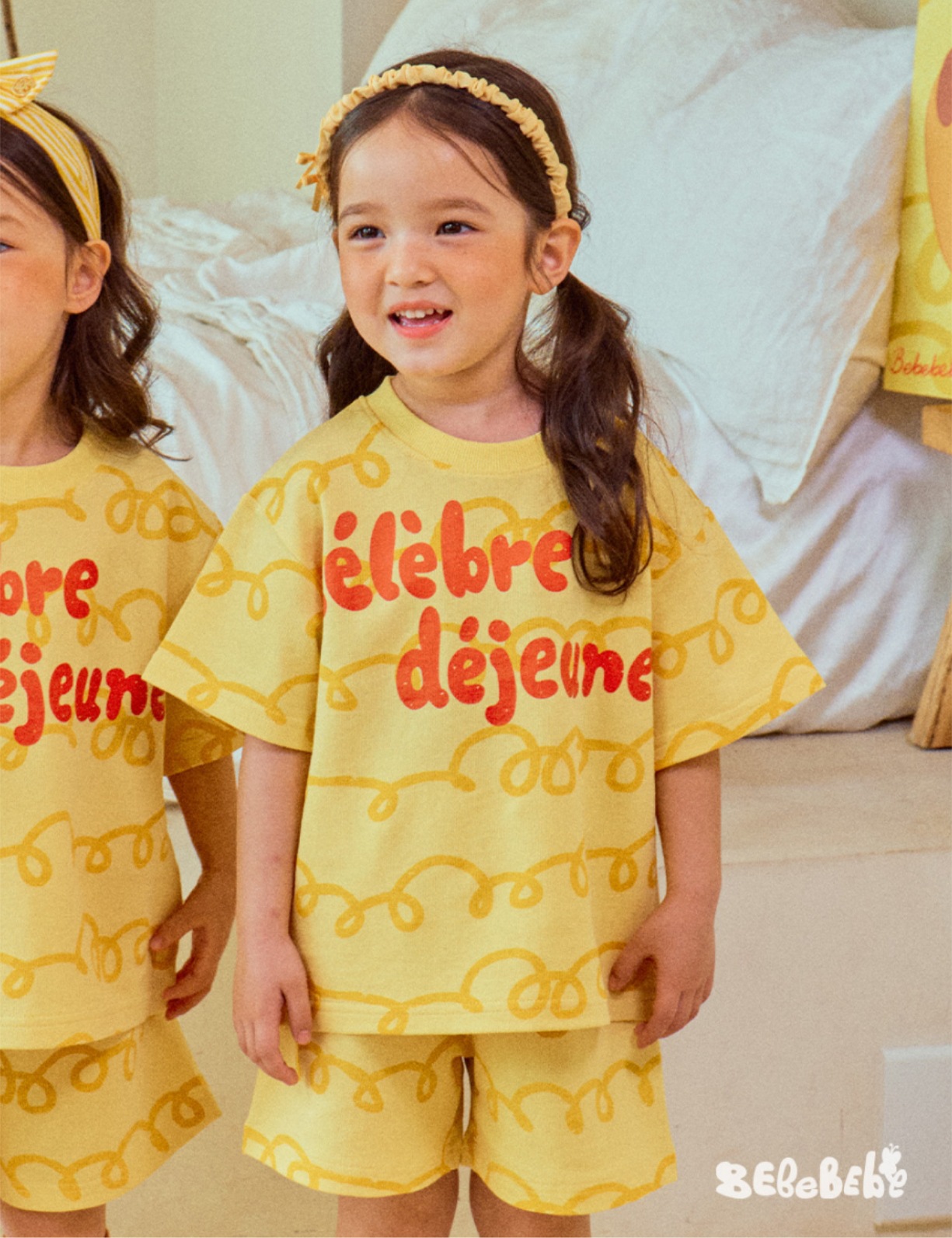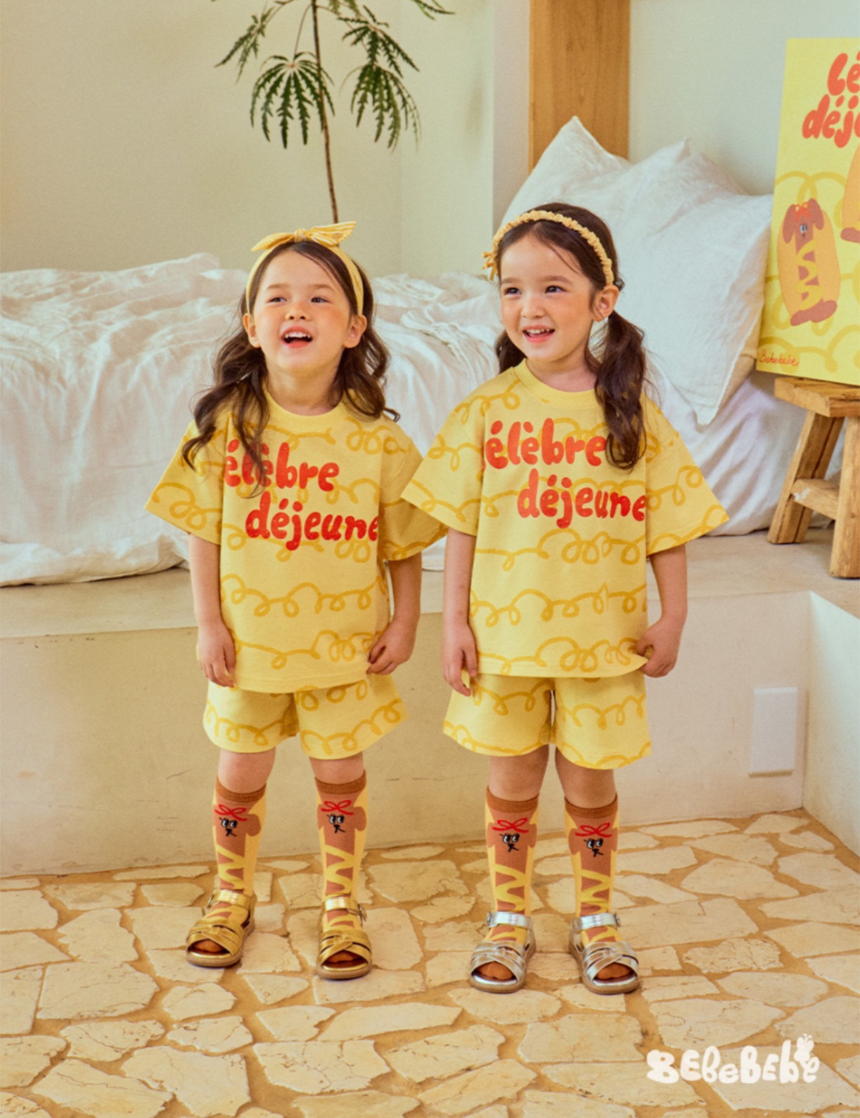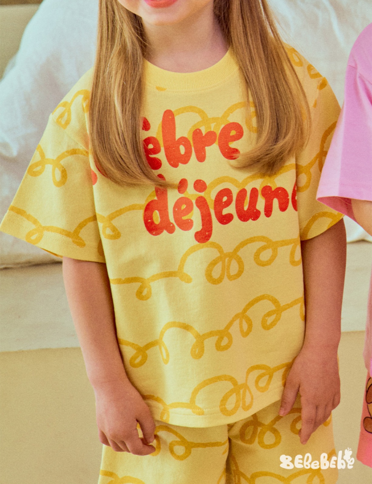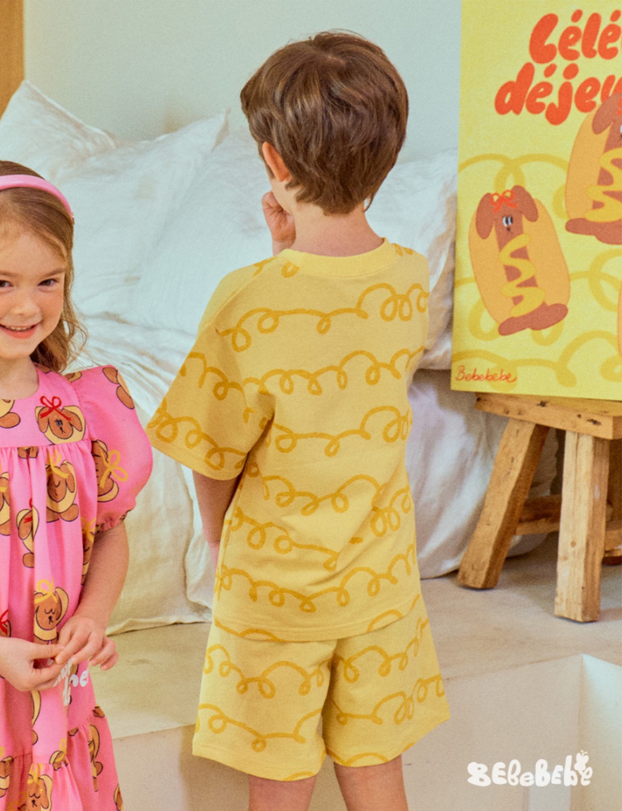 • BE 옐로우 웨이브 스트라이프 티셔츠 반바지 세트