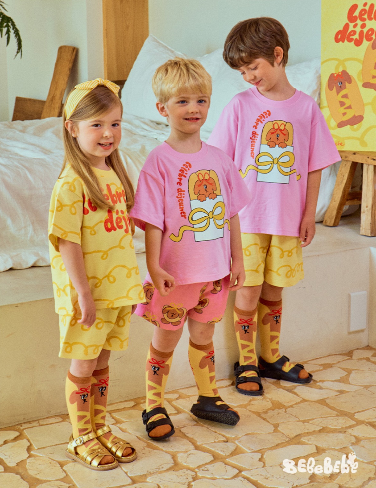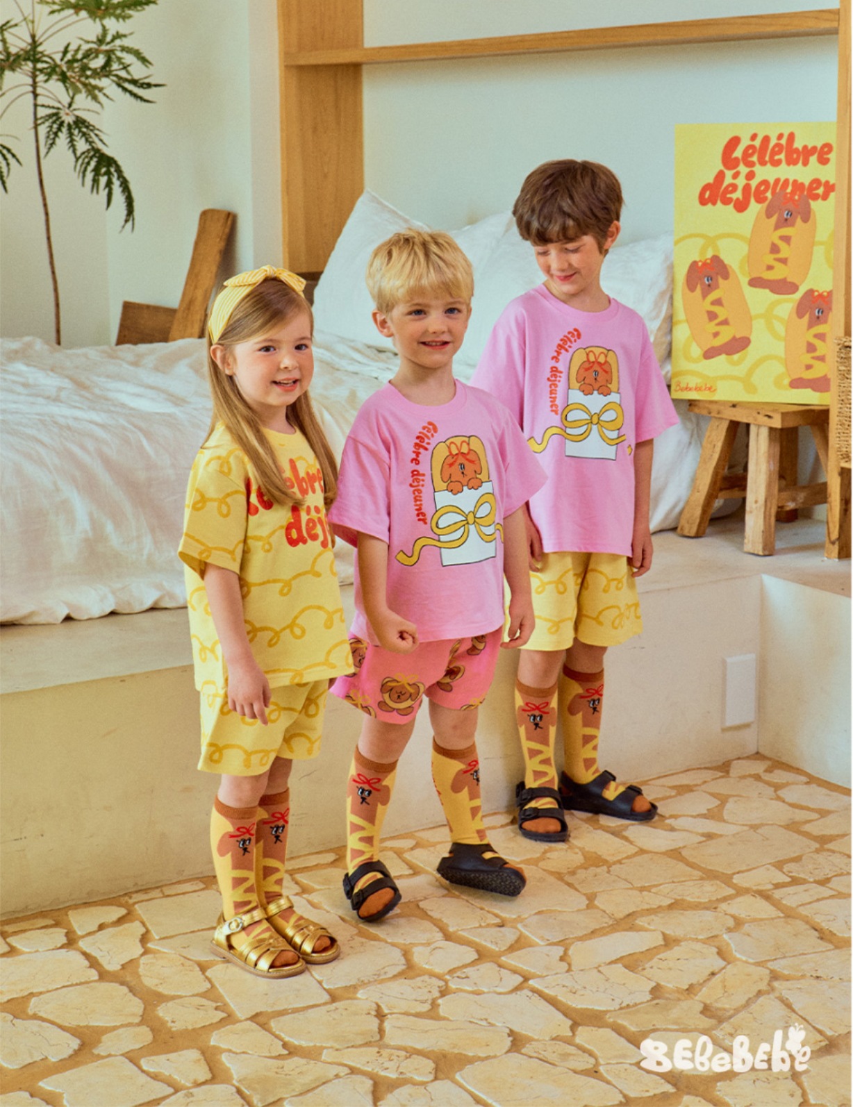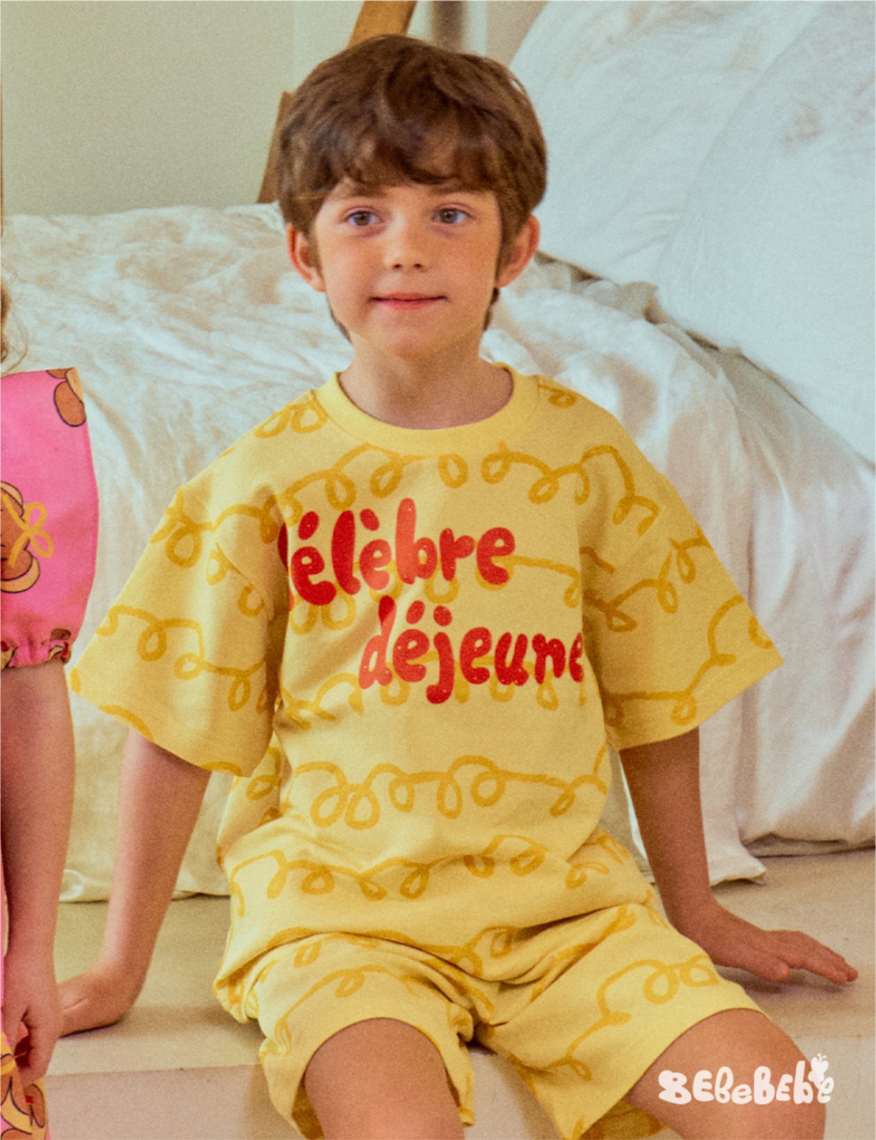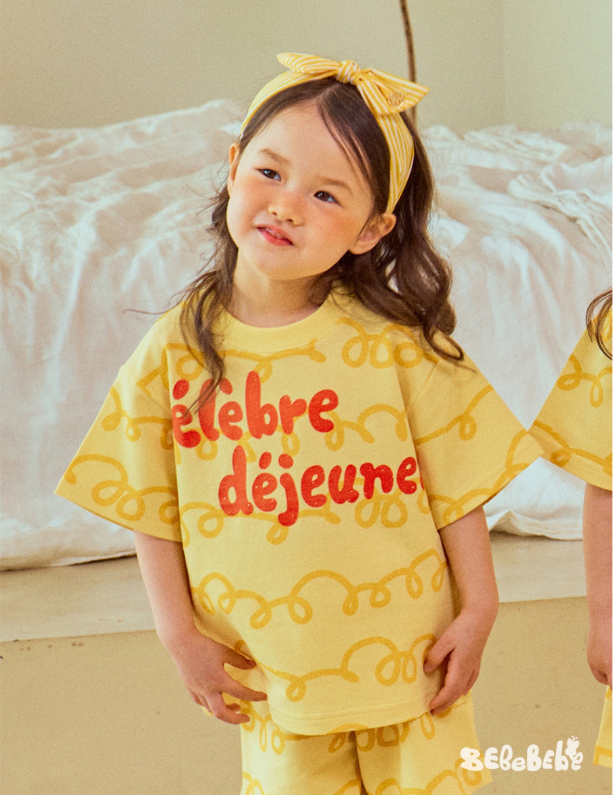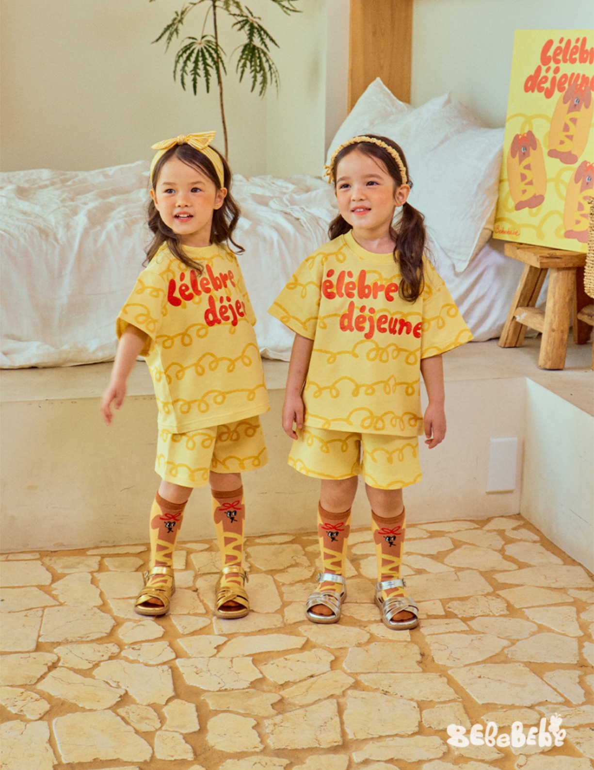• BE 옐로우 웨이브 스트라이프 티셔츠 반바지 세트