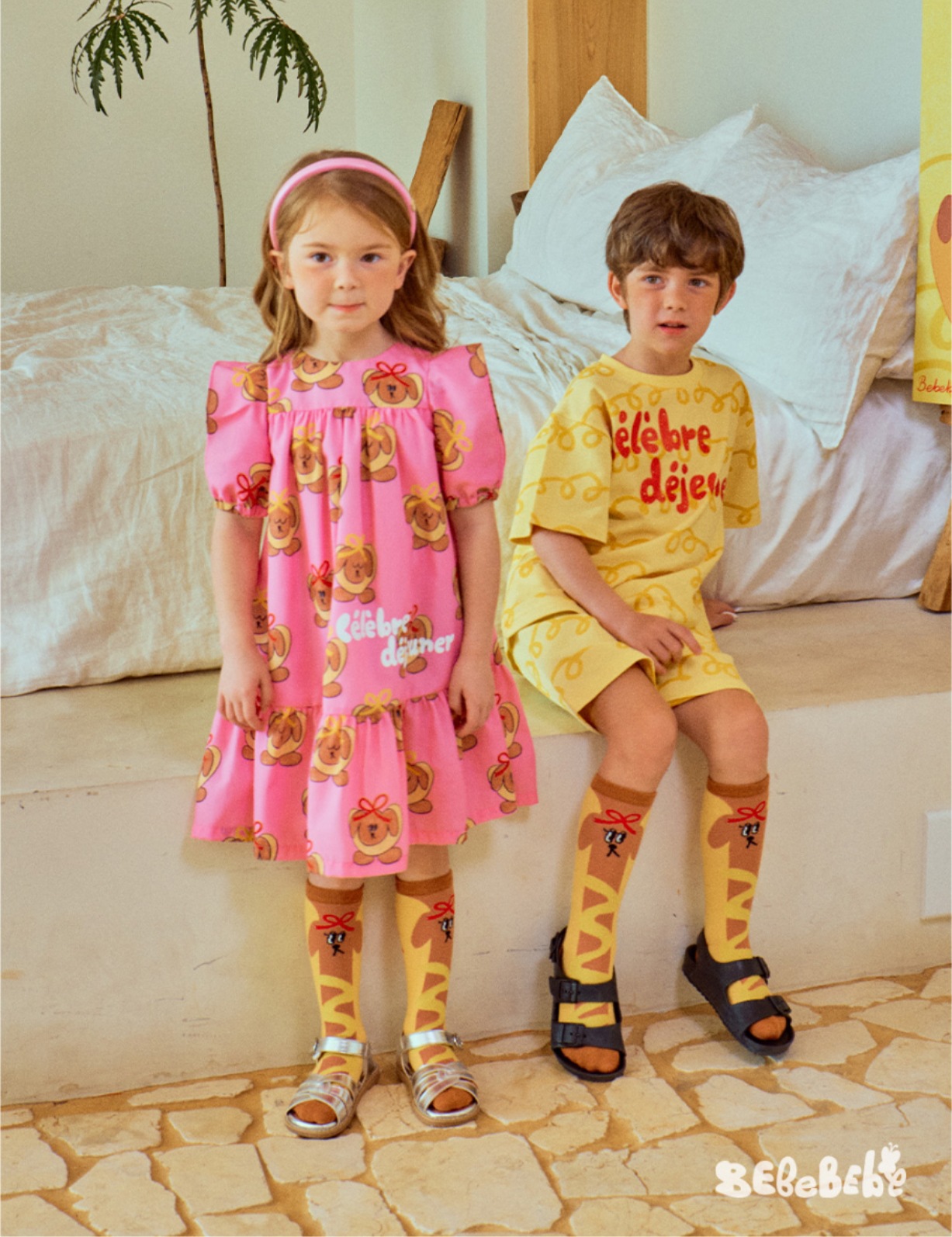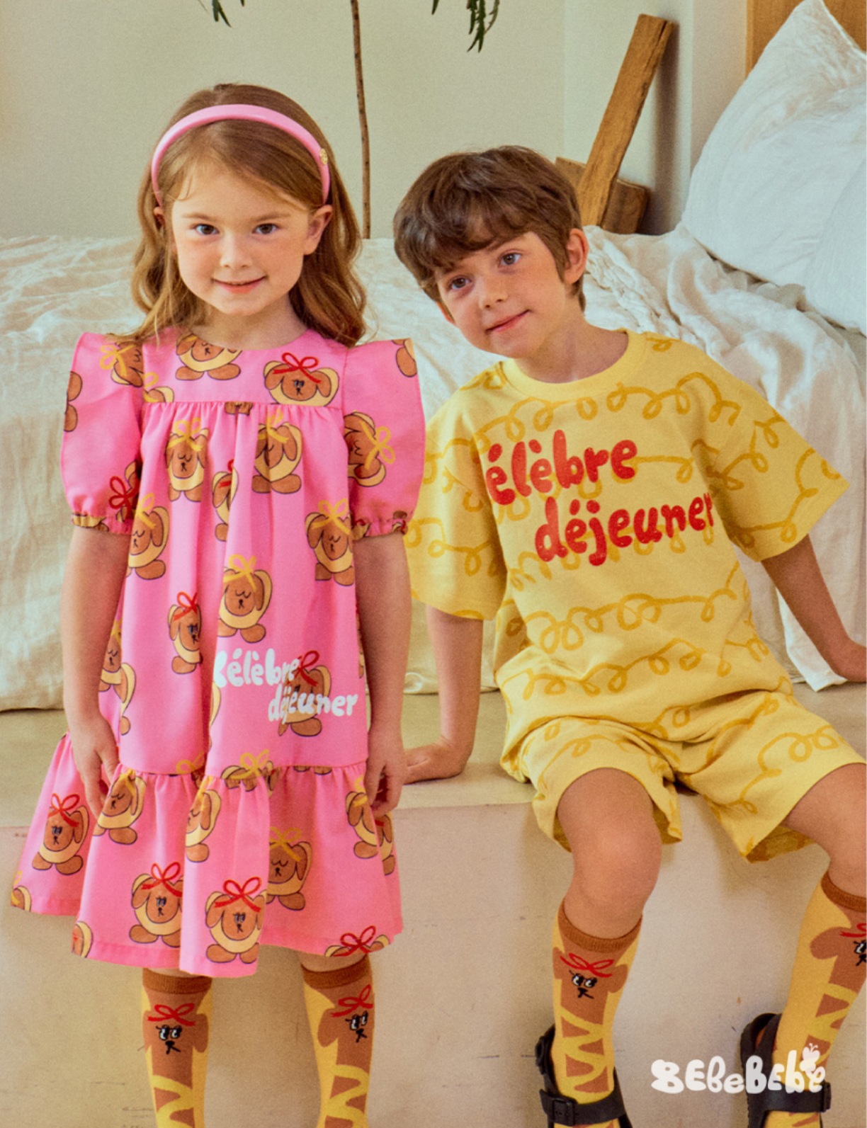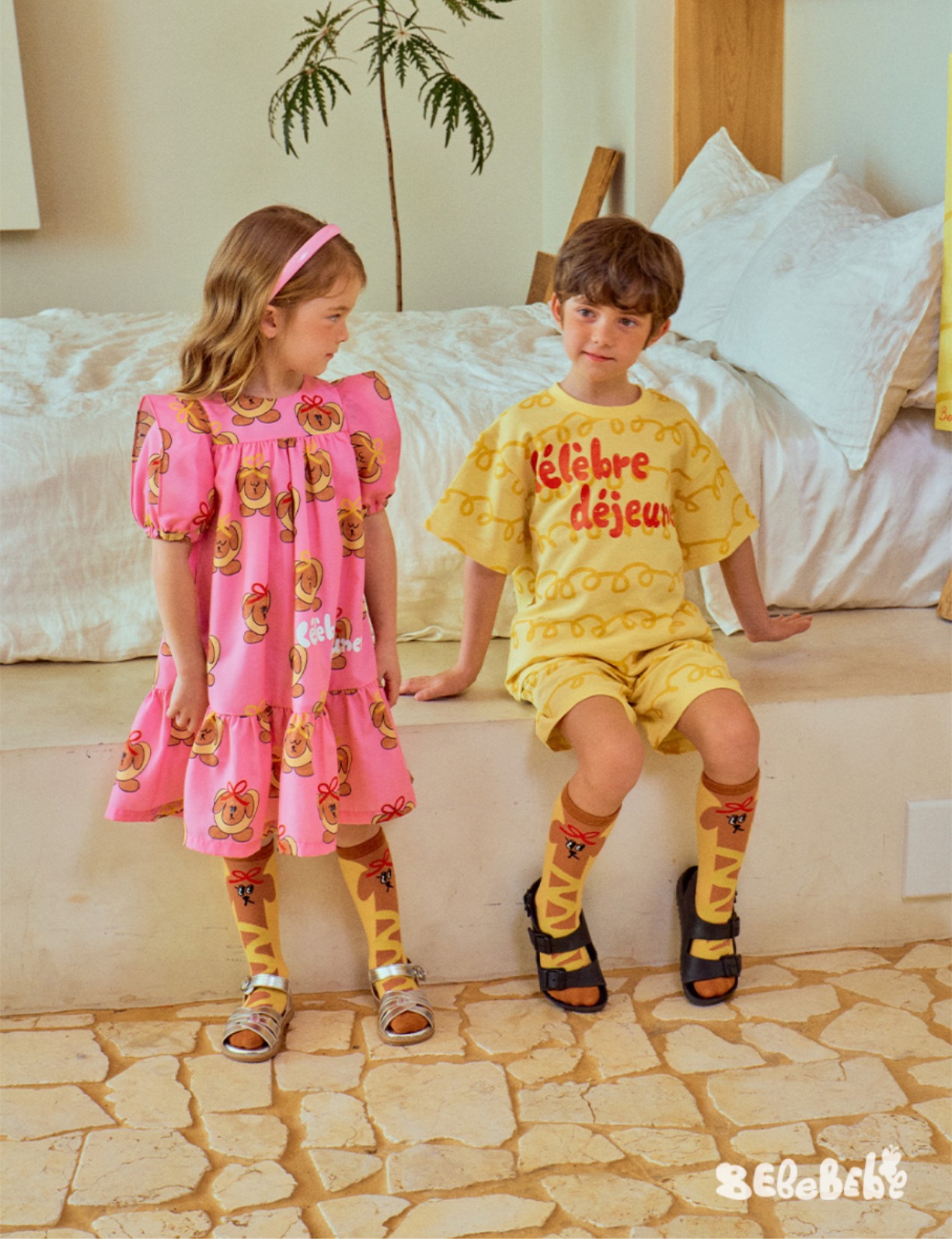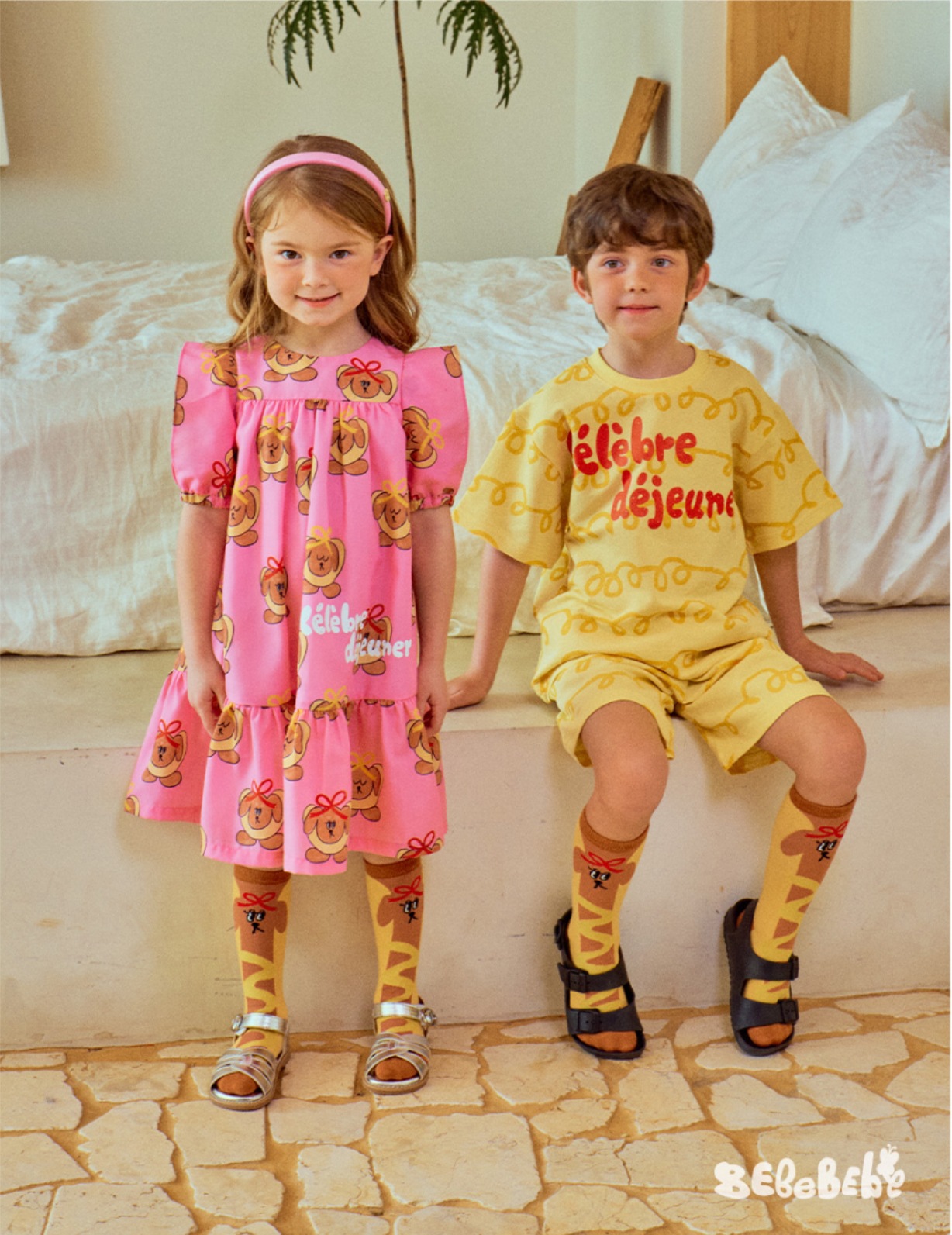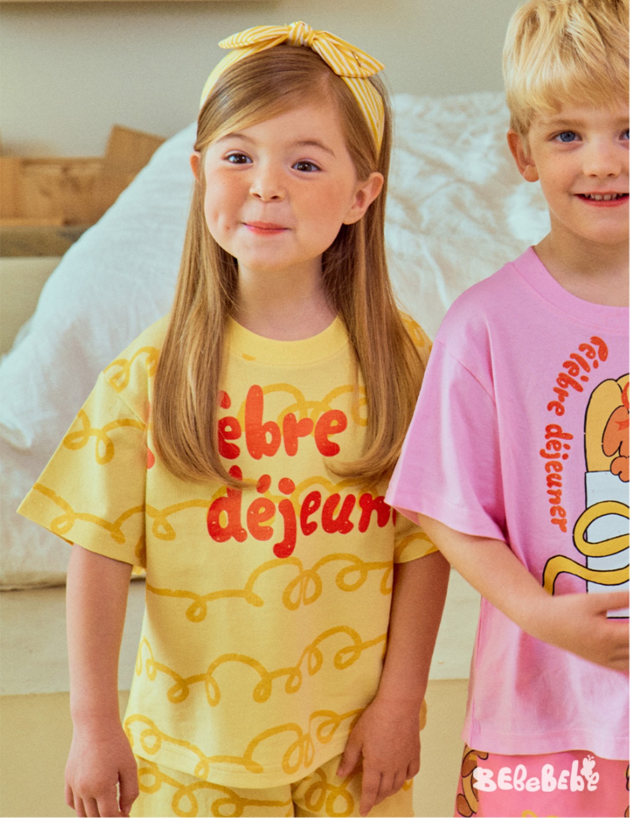 재고 있음! BE25 여름 신작 면 프린트 반팔 티셔츠 한국 스타일 귀여운 형제 자매 스타일 티셔츠 반바지 정장