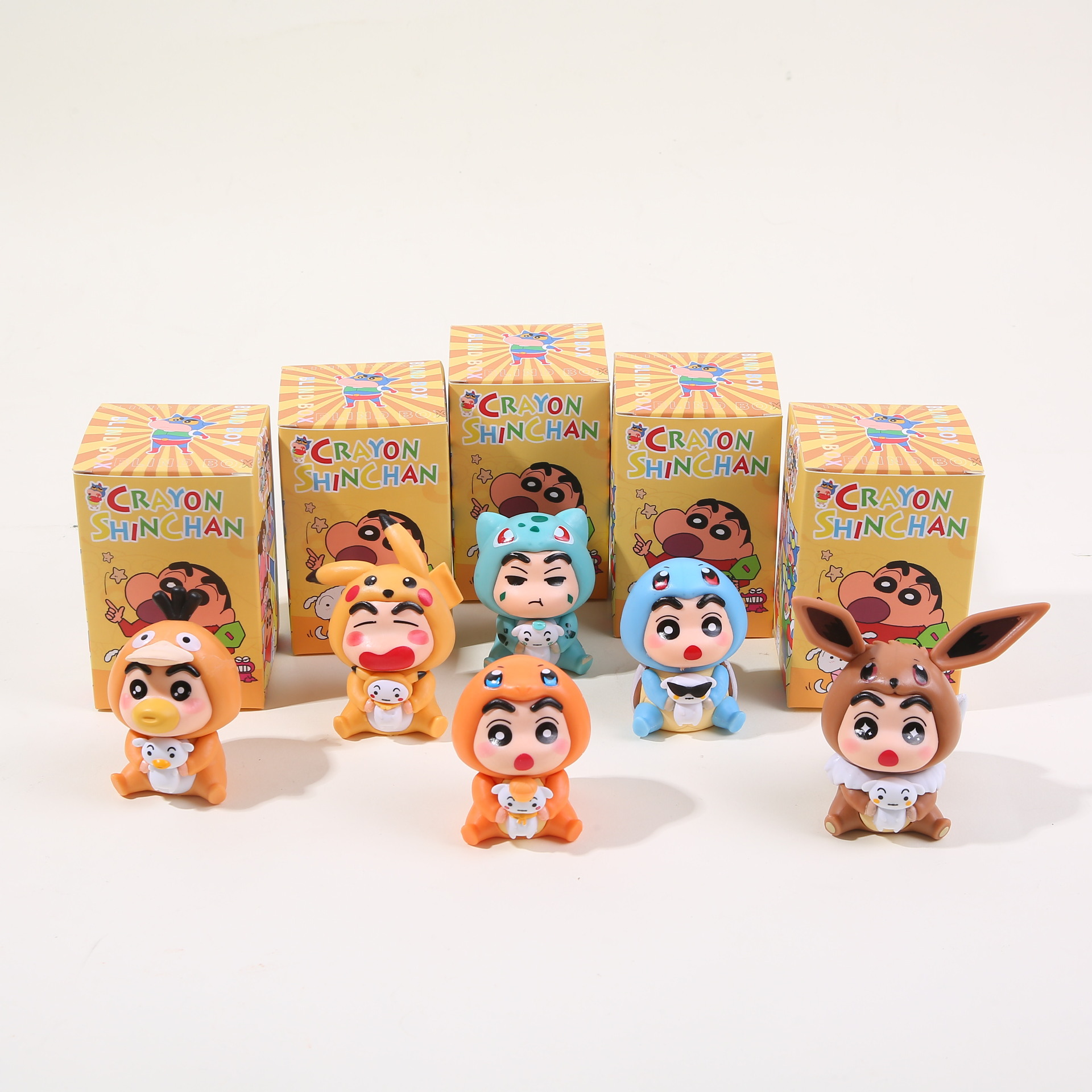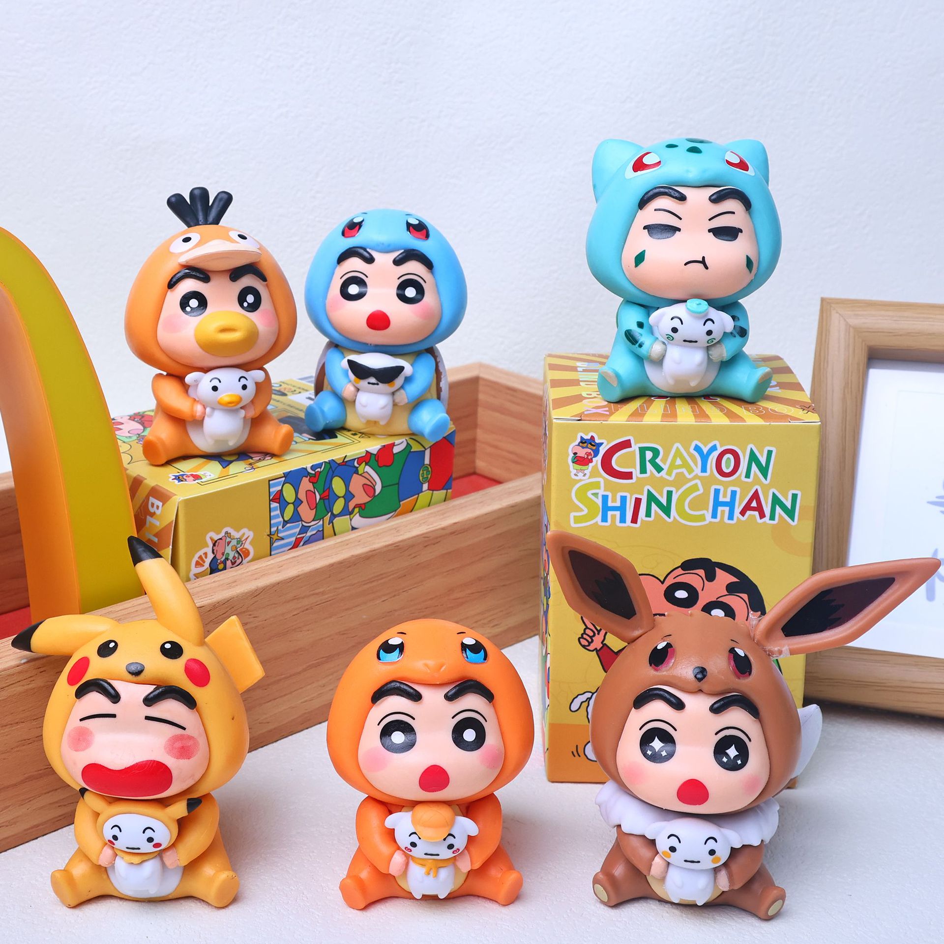 크레용 신짱 cos 피카츄 피규어 블라인드 박스 변장 작은 유행 장난감 인형 인형 데스크탑 장식품 선물스토어 가기