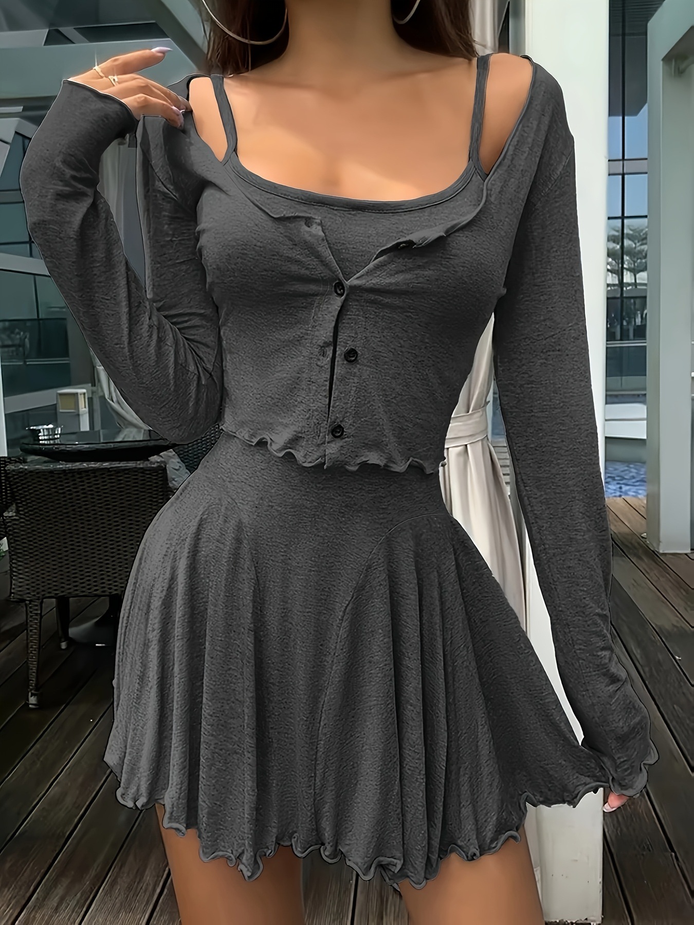 새로운 달콤한 여성용 슈트, 복고풍 심플한 카디건 재킷, 레이어드 여름 서스펜더 드레스, 투피스 세트, 유럽 및 미국스토어 가기