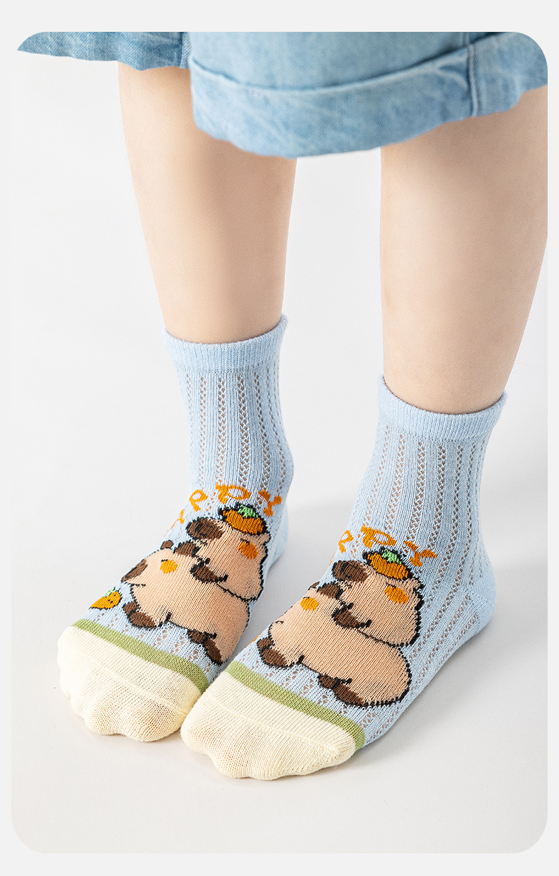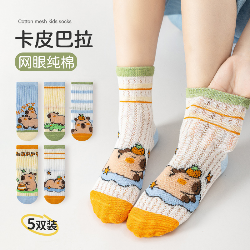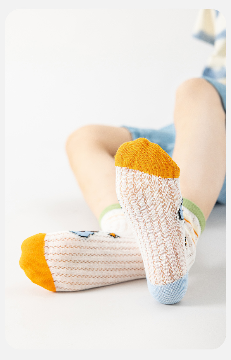 어린이 양말 여름 얇은 만화 메쉬 크리스탈 양말 짧은 양말 Kabi Bala 소녀와 소년을위한 봄 및 여름 보트 양말