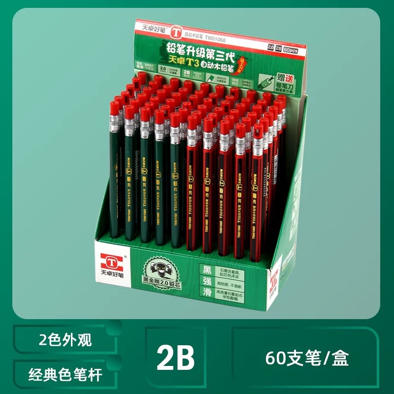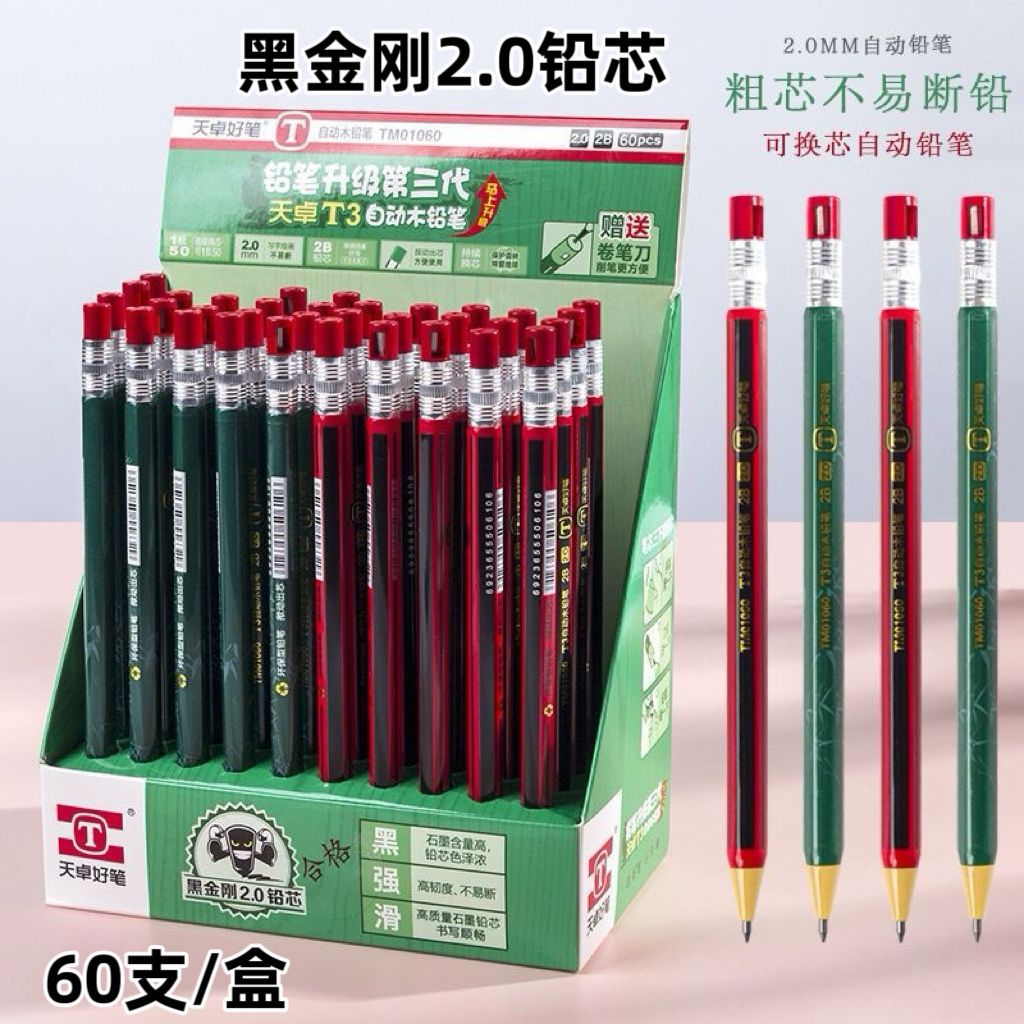 Tianzhuo 2.0 자동 연필 프레스 샤프너가있는 깨지지 않는 친환경 학생 연필 두꺼운 헤드 리필