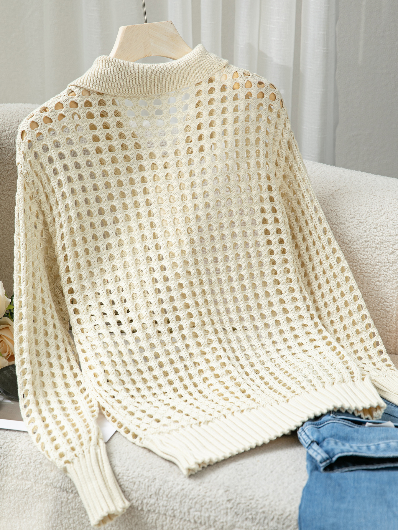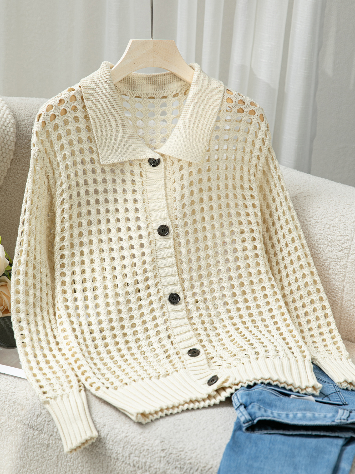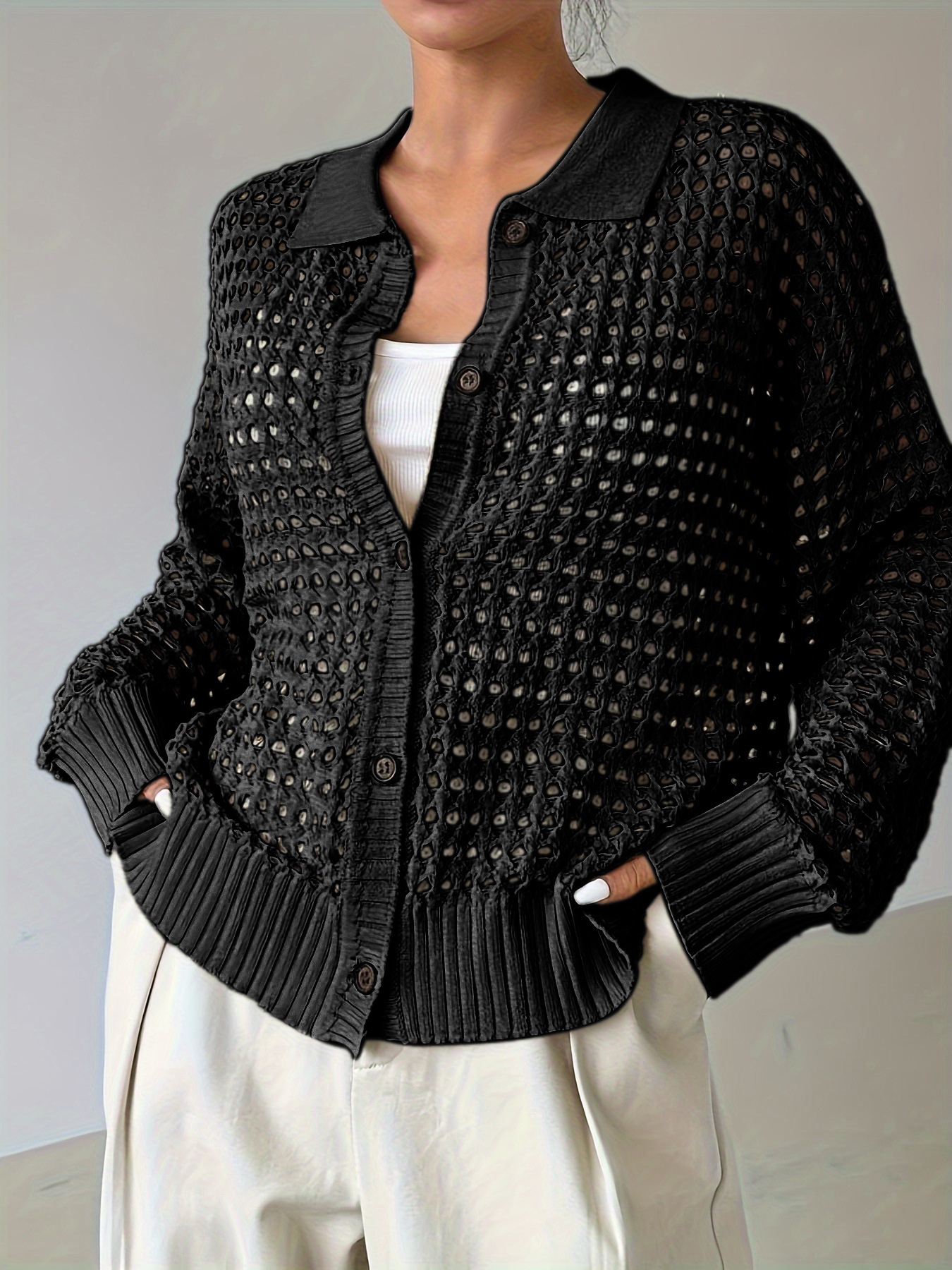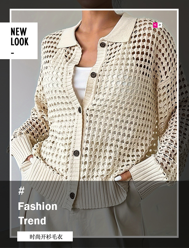 봄 가을 새로운 여성 속이 빈 니트 솔리드 컬러 우아한 휴가 긴 소매 싱글 브레스트 니트 카디건 스웨터 여성스토어 가기