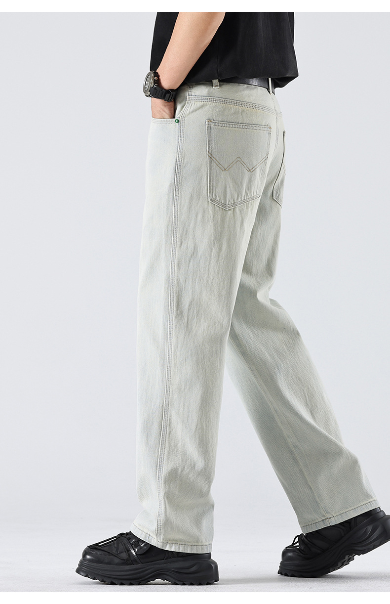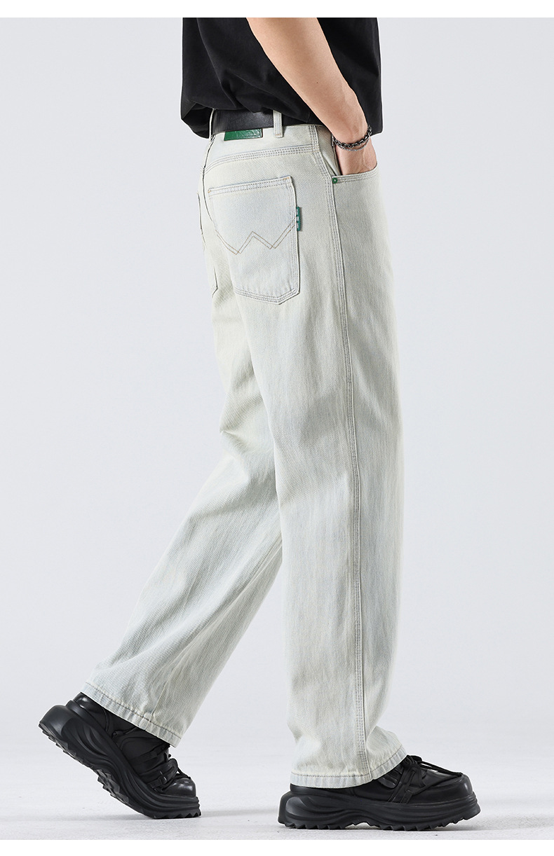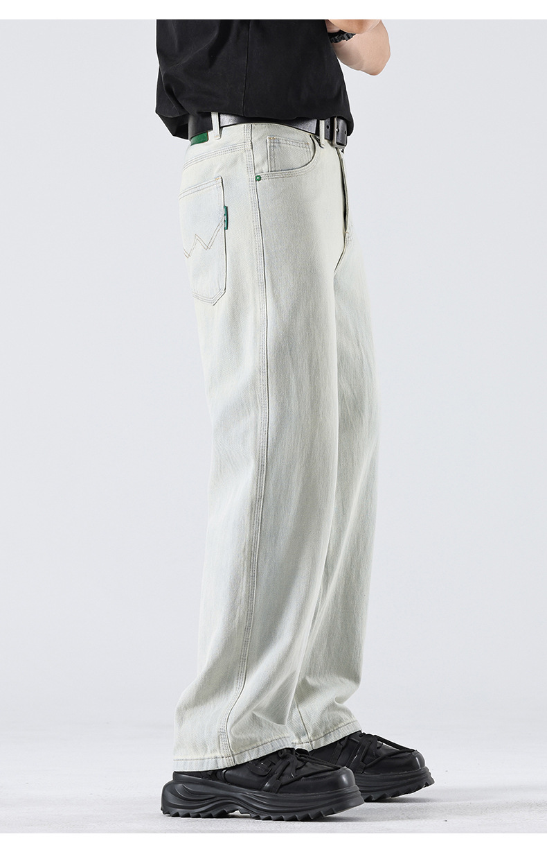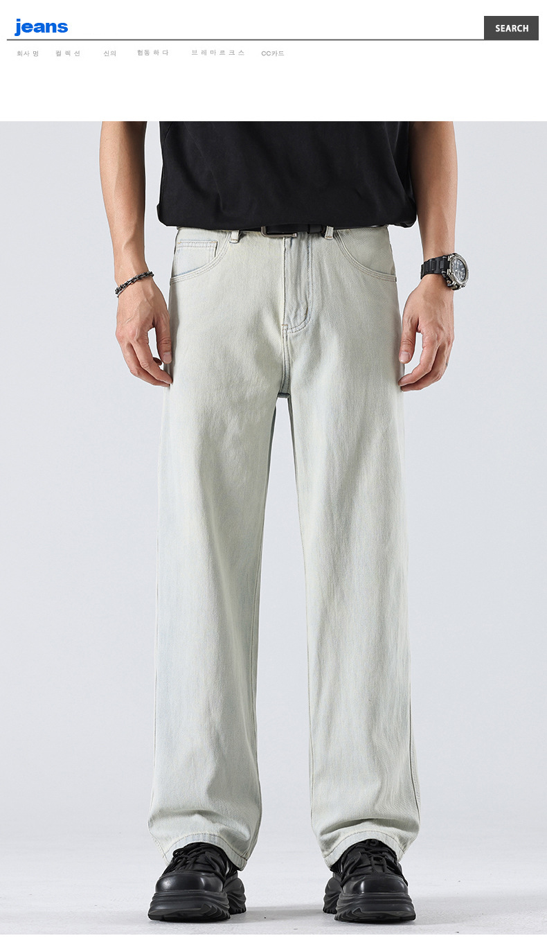 Muqiu 남성복 2025 여름 새로운 패션 브랜드 미국 빈티지 세탁 청바지 남성용 느슨한 스트레이트 와이드 다리 바지