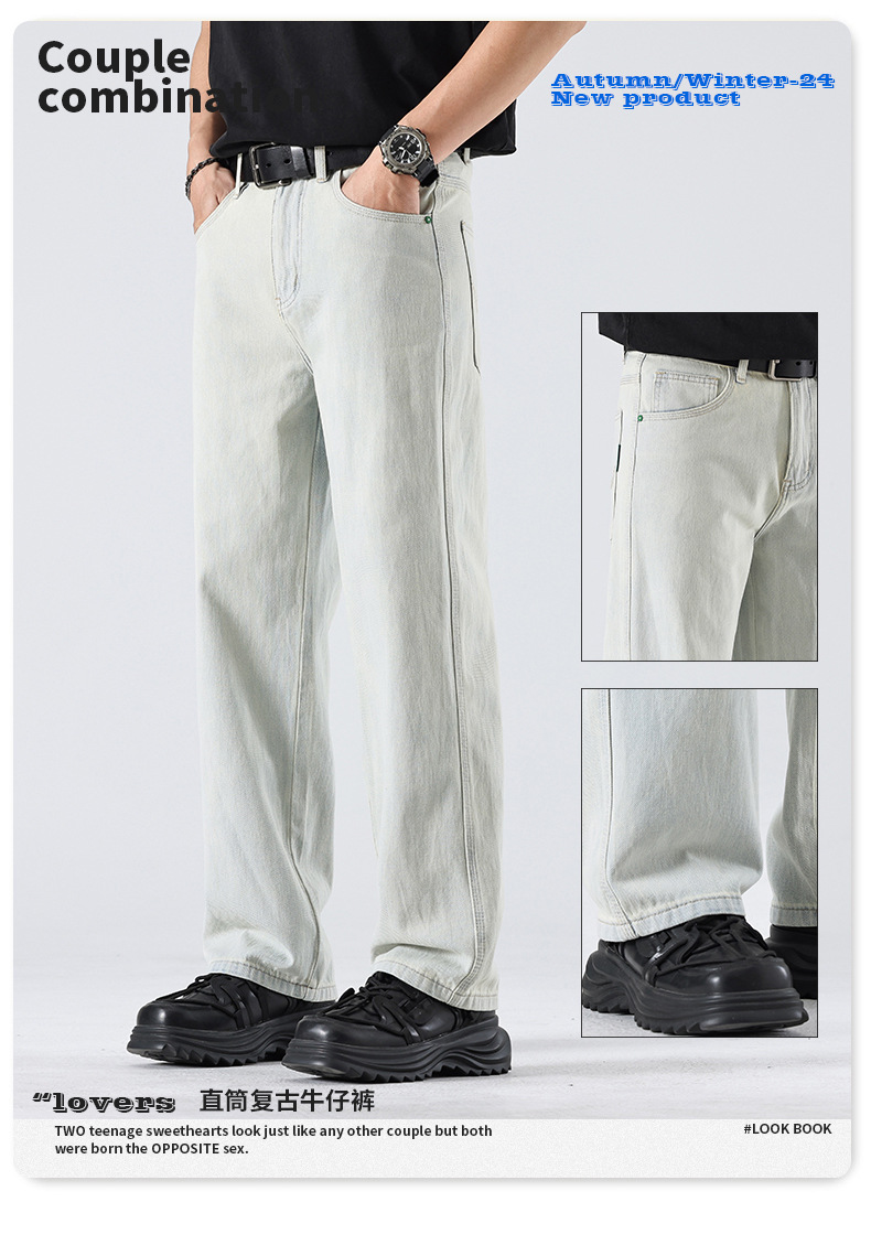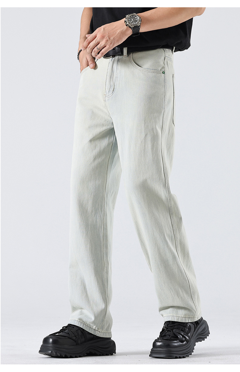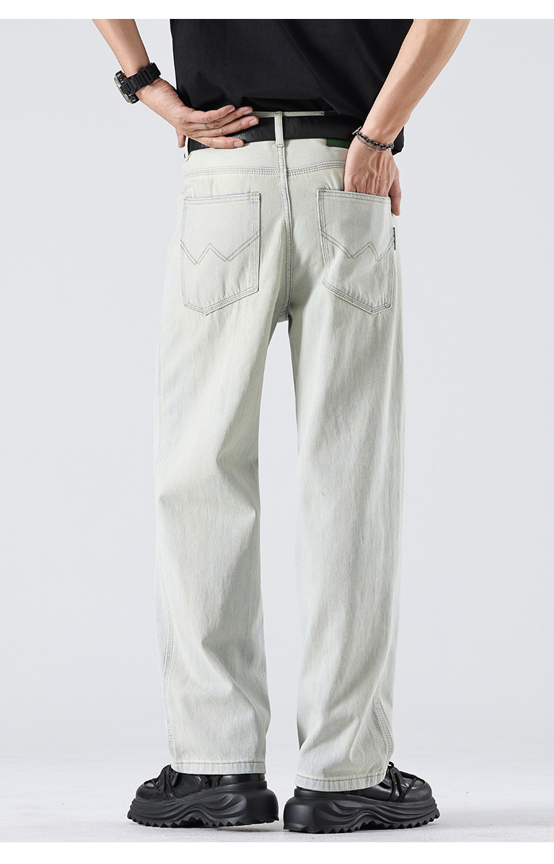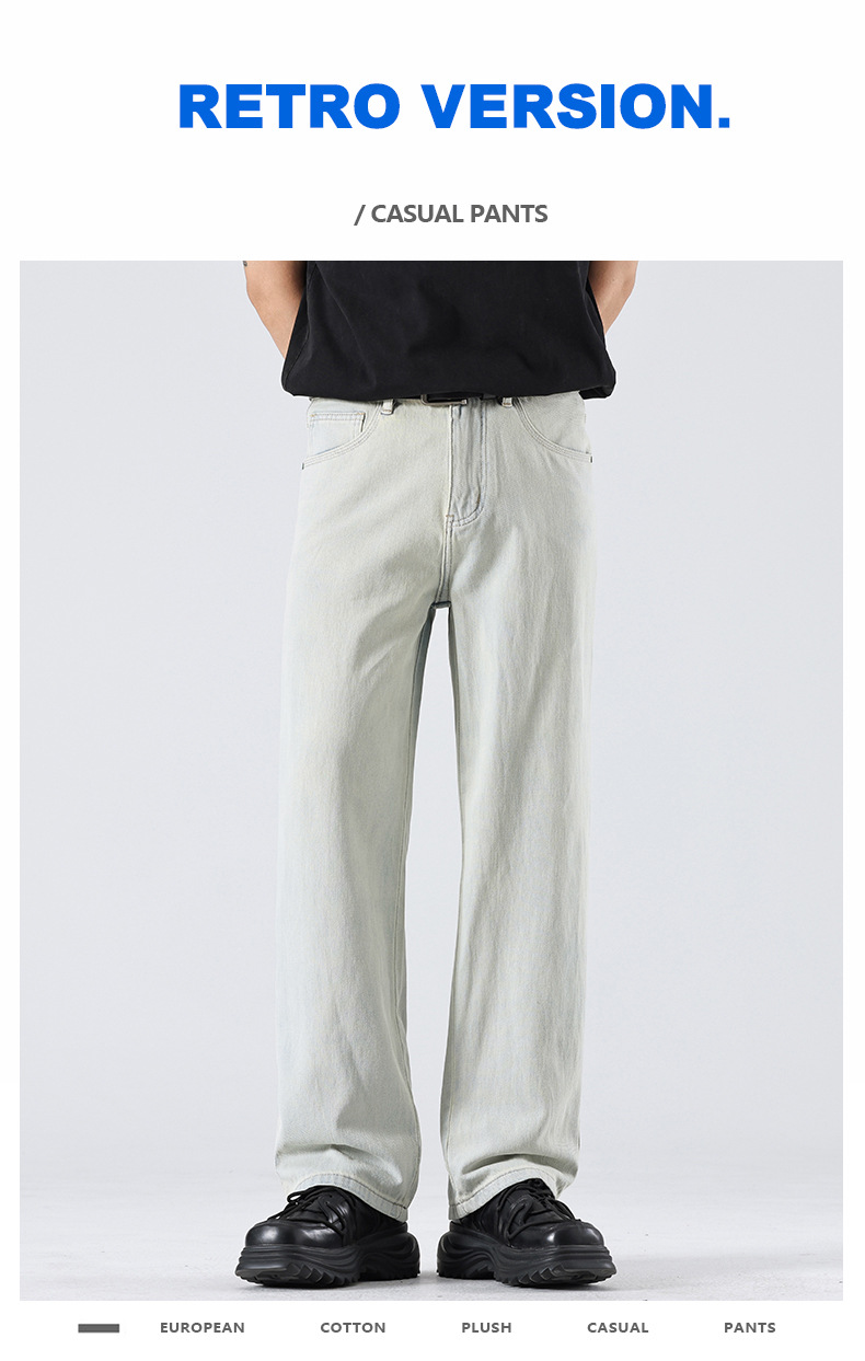 Muqiu 남성복 2025 여름 새로운 패션 브랜드 미국 빈티지 세탁 청바지 남성용 느슨한 스트레이트 와이드 다리 바지