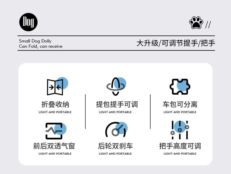 개와 고양이를 위한 분리형 산책용 유모차, 개를 위한 가볍고 휴대성이 뛰어난 야외 캐리어, 애완동물을 위한 접이식 분리형 유모차