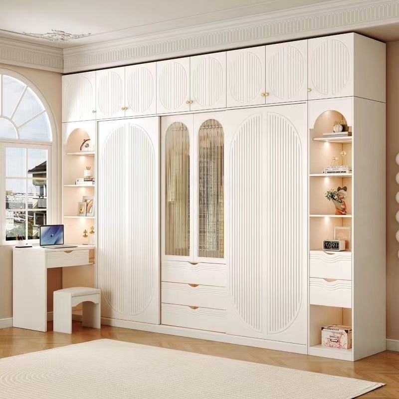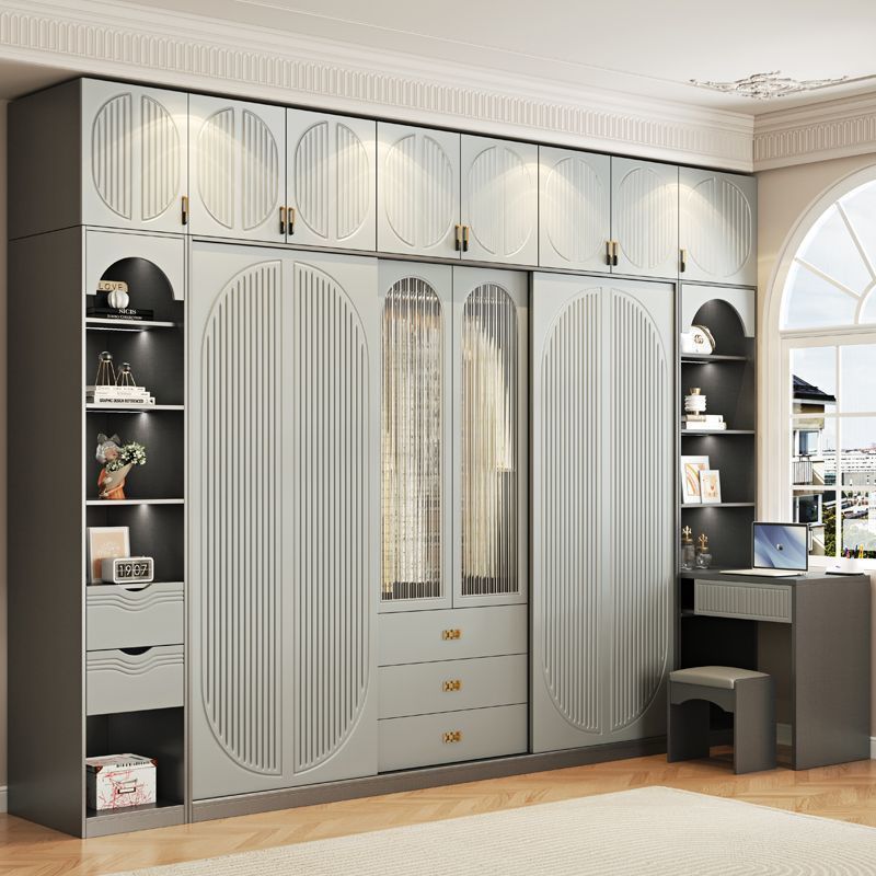 단단한 나무 회색 유럽 스타일 슬라이딩 도어 책상 옷장 홈 침실 사물함 슬라이딩 도어 옷장 대용량 캐비닛