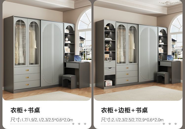 • 옷장 + 책상 + 사이드 캐비닛 + 상단 캐비닛