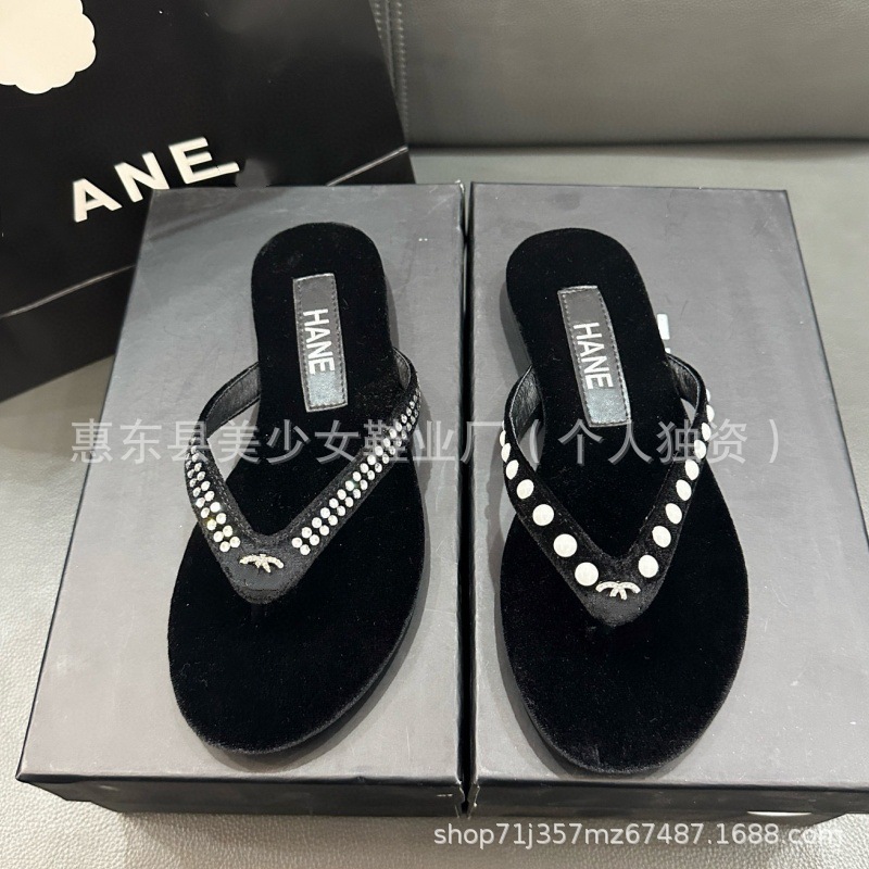 고버전 ~ 25C 초봄 신작 소형 향수 다이아몬드 진주 플랫 벨벳 아우터웨어 여성용 바캉스 해변 헤링본 샌들스토어 가기