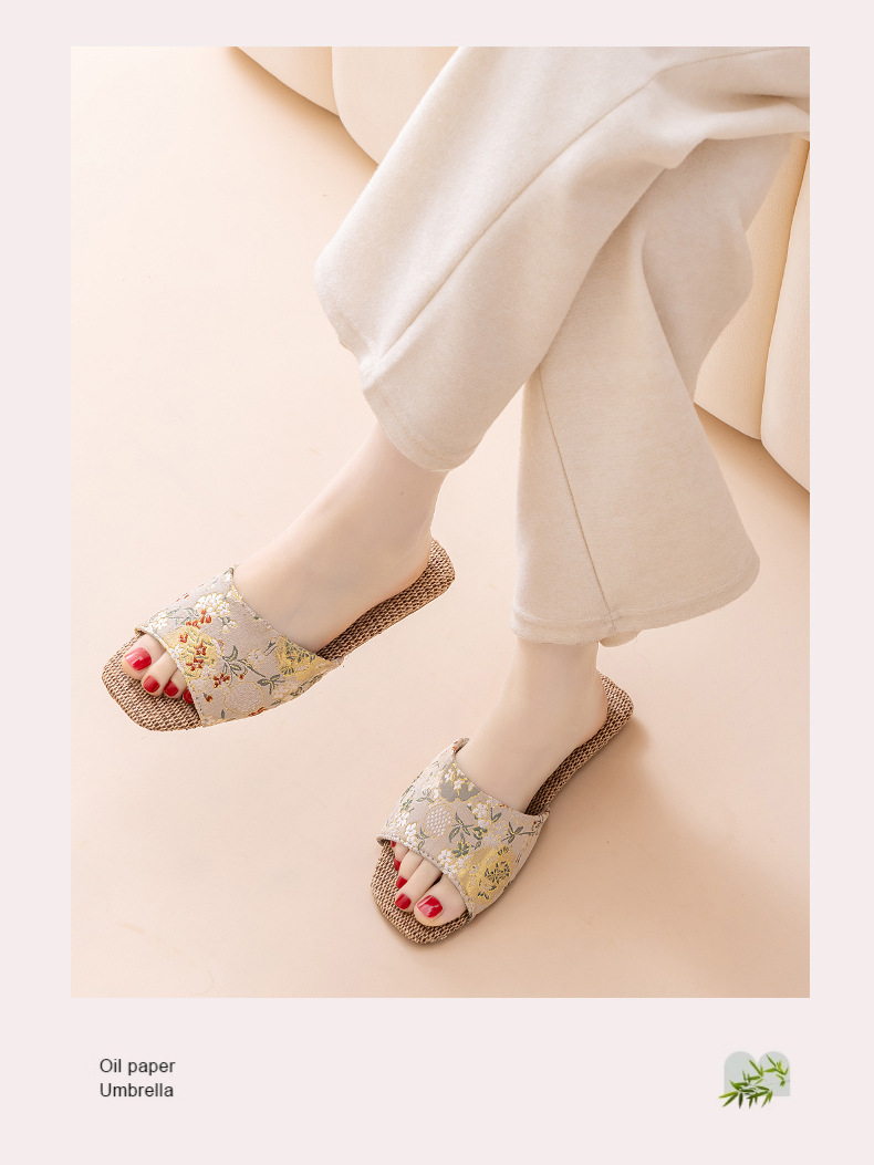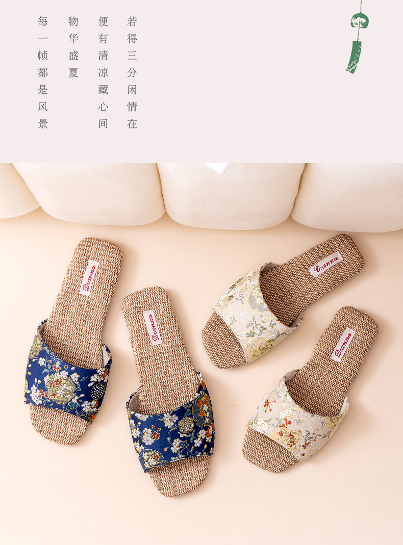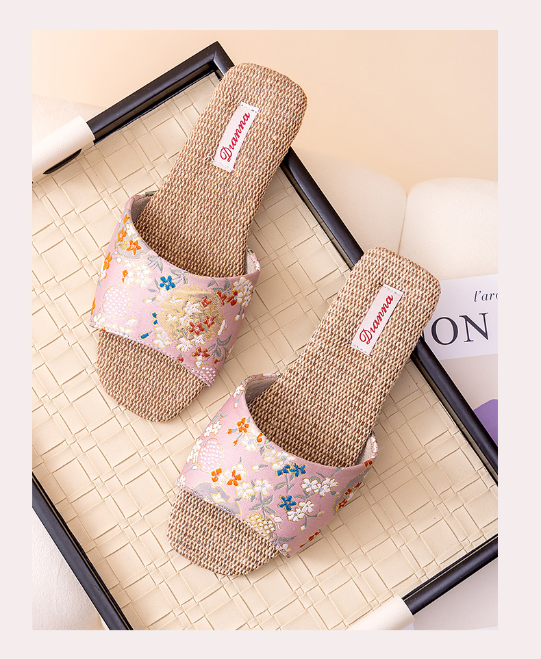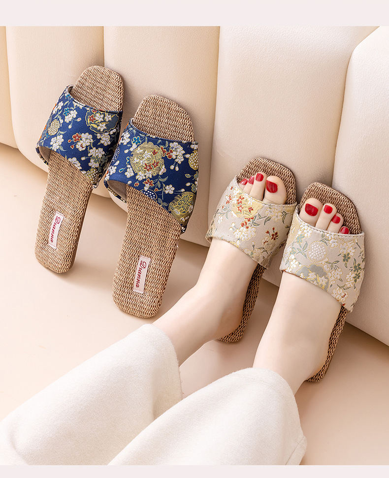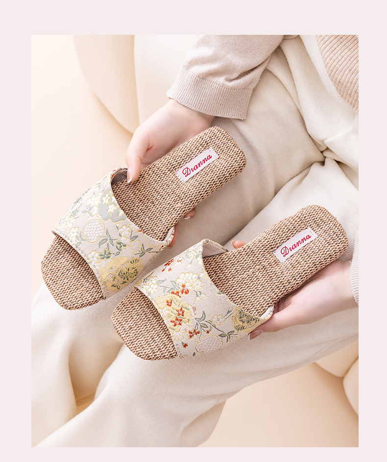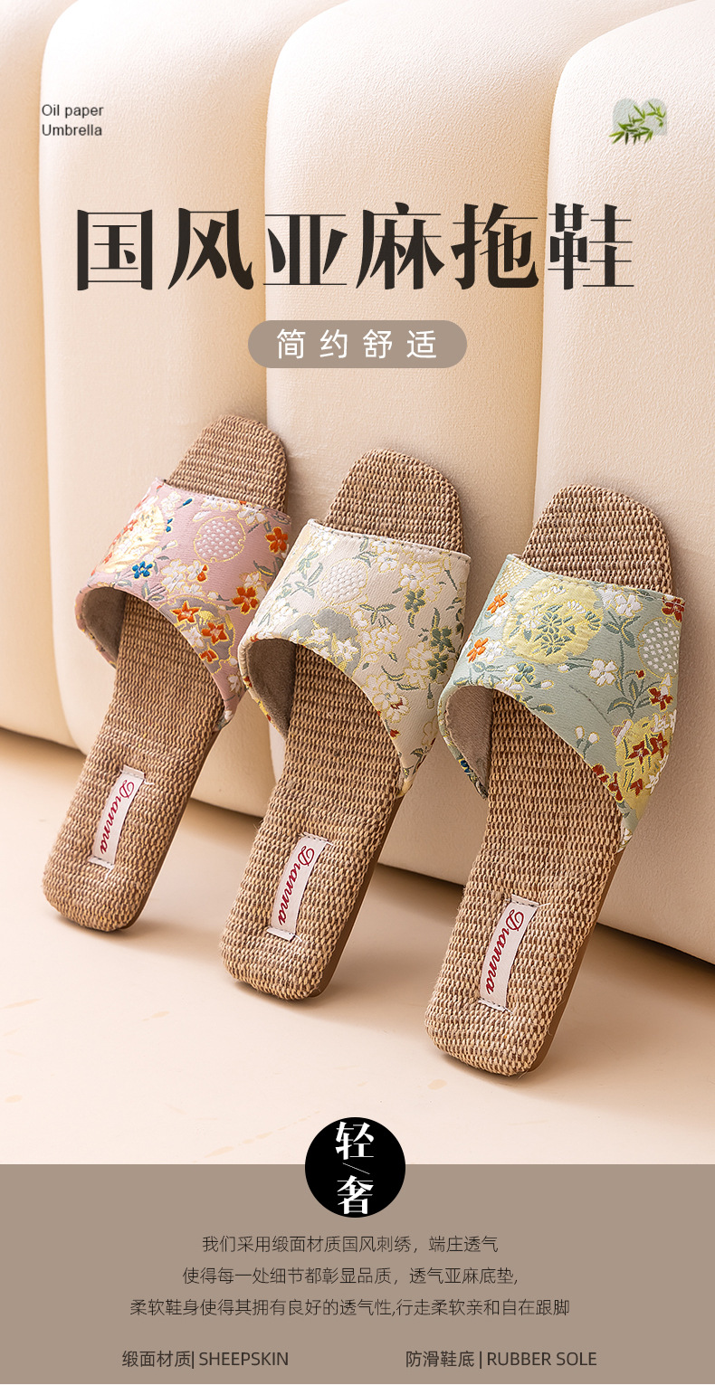 홈 린넨 슬리퍼, 미끄럼 방지, 중국 스타일 자수, 통기성 및 내마모성, 커플 사계절 샌들, 공장 직접 판매, 직송스토어 가기