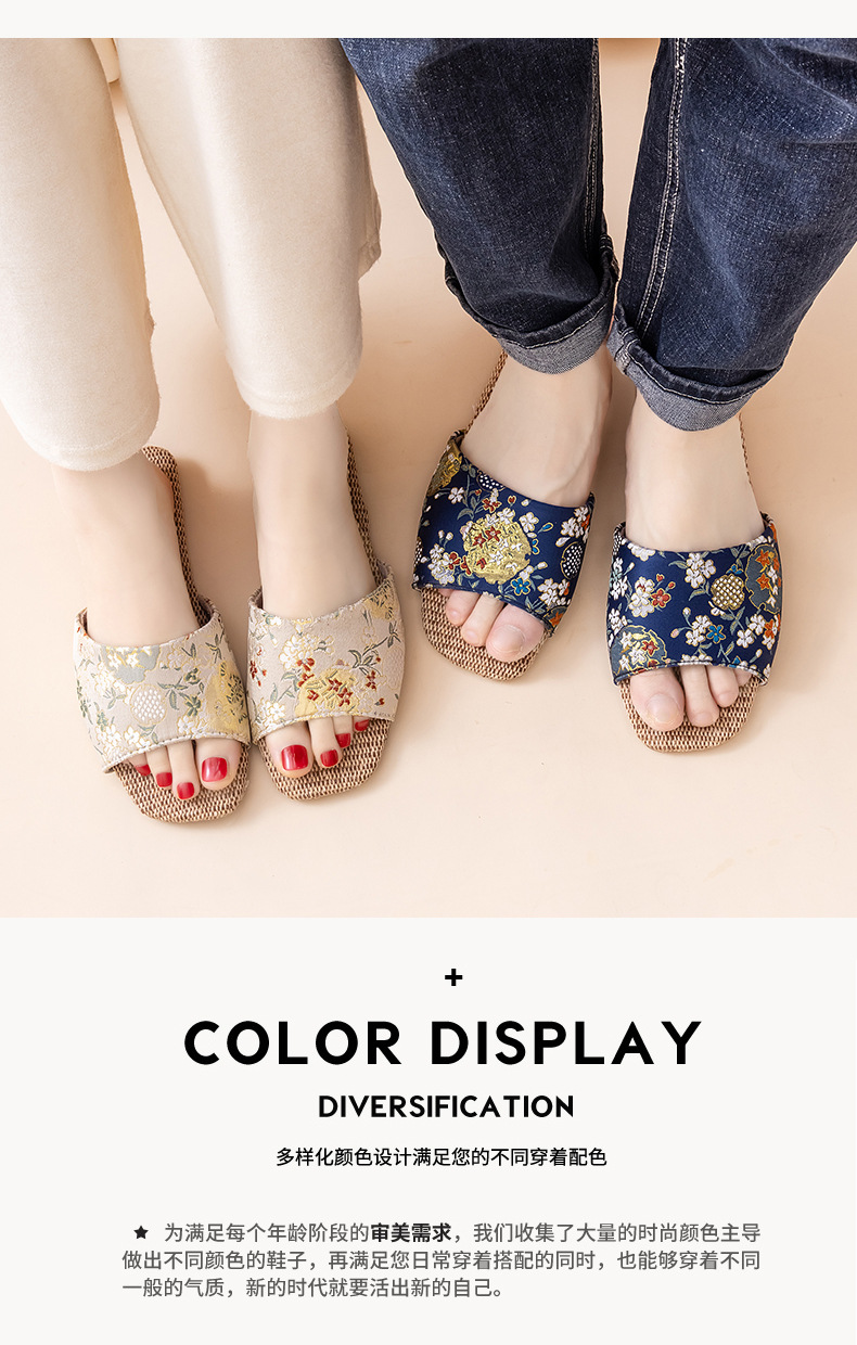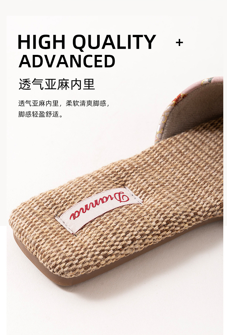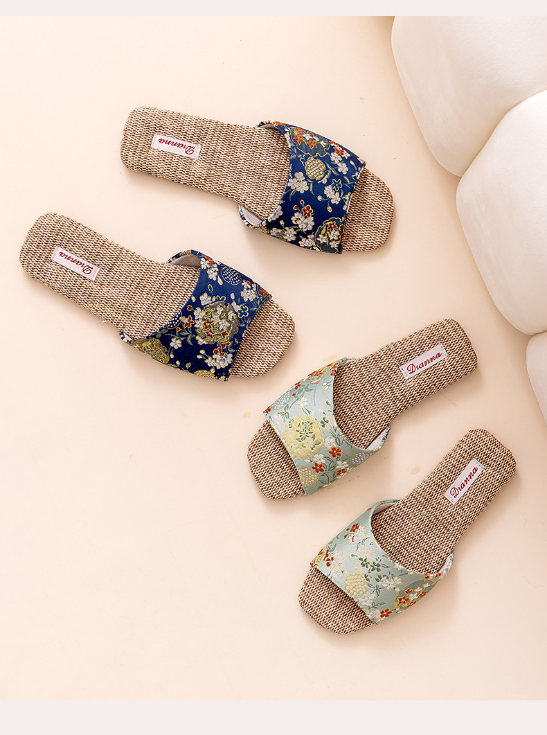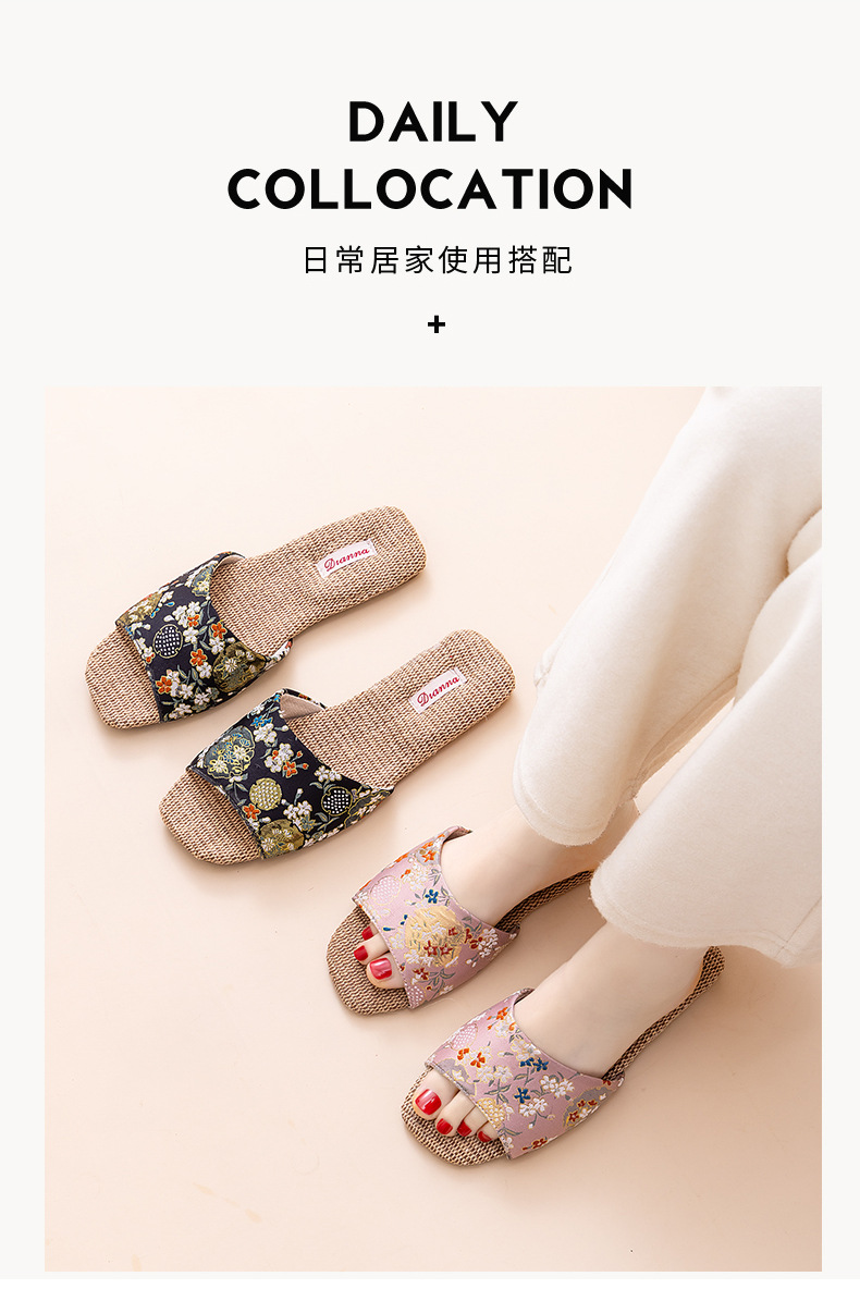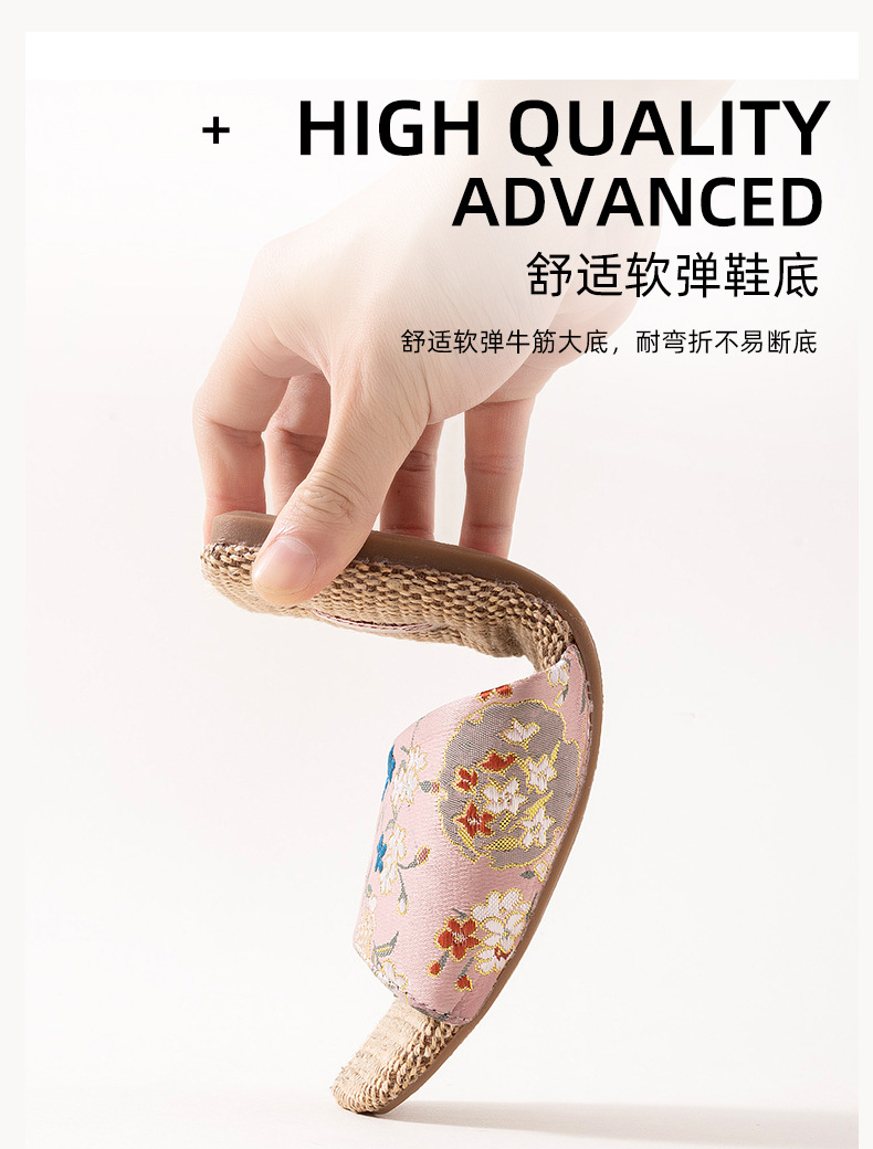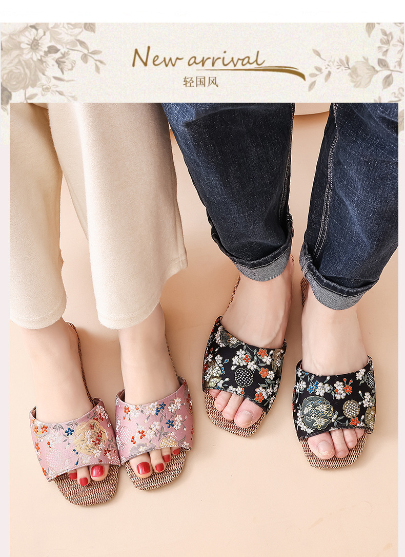 홈 린넨 슬리퍼, 미끄럼 방지, 중국 스타일 자수, 통기성 및 내마모성, 커플 사계절 샌들, 공장 직접 판매, 직송스토어 가기