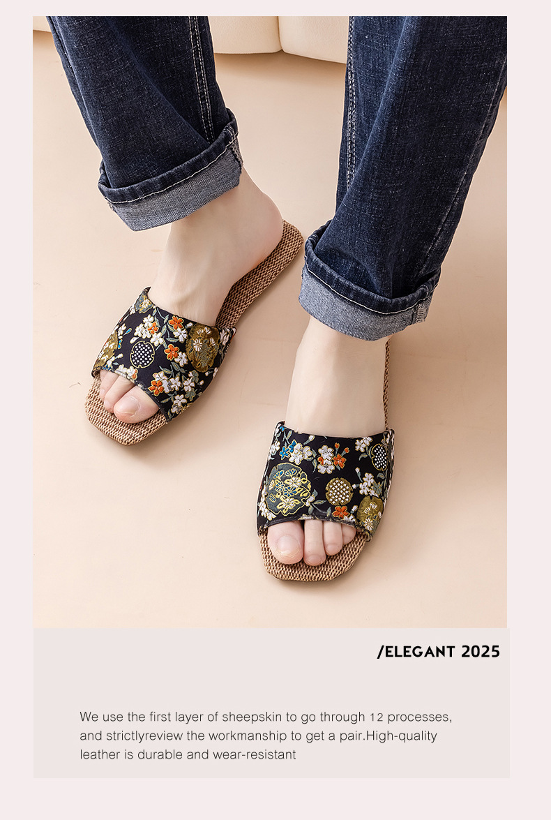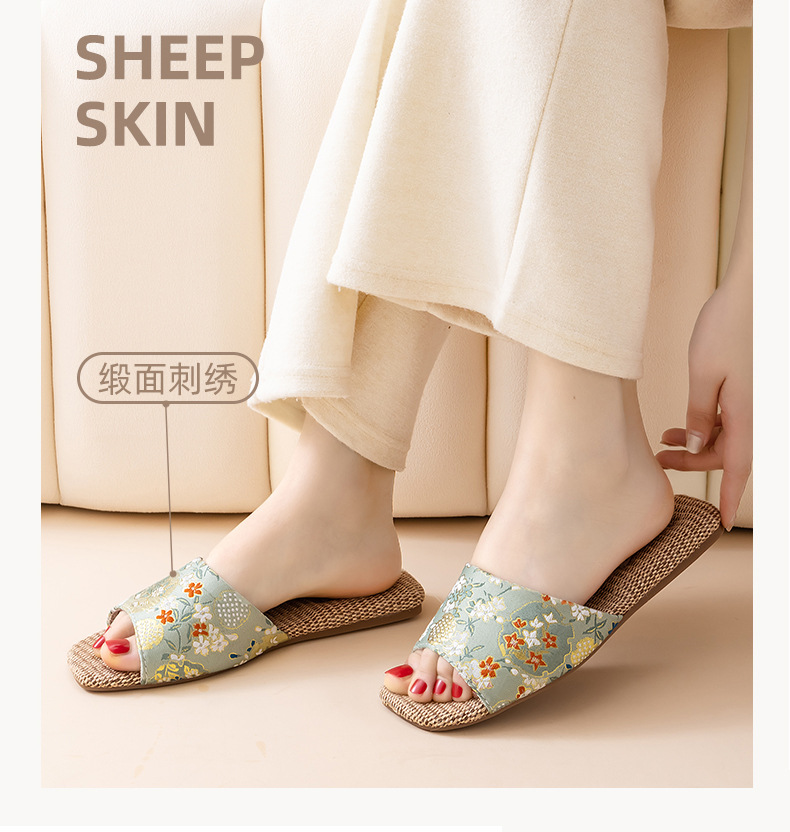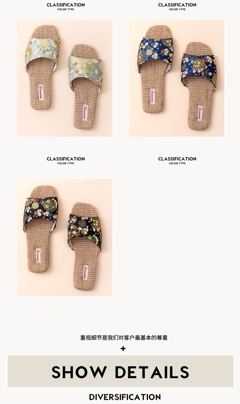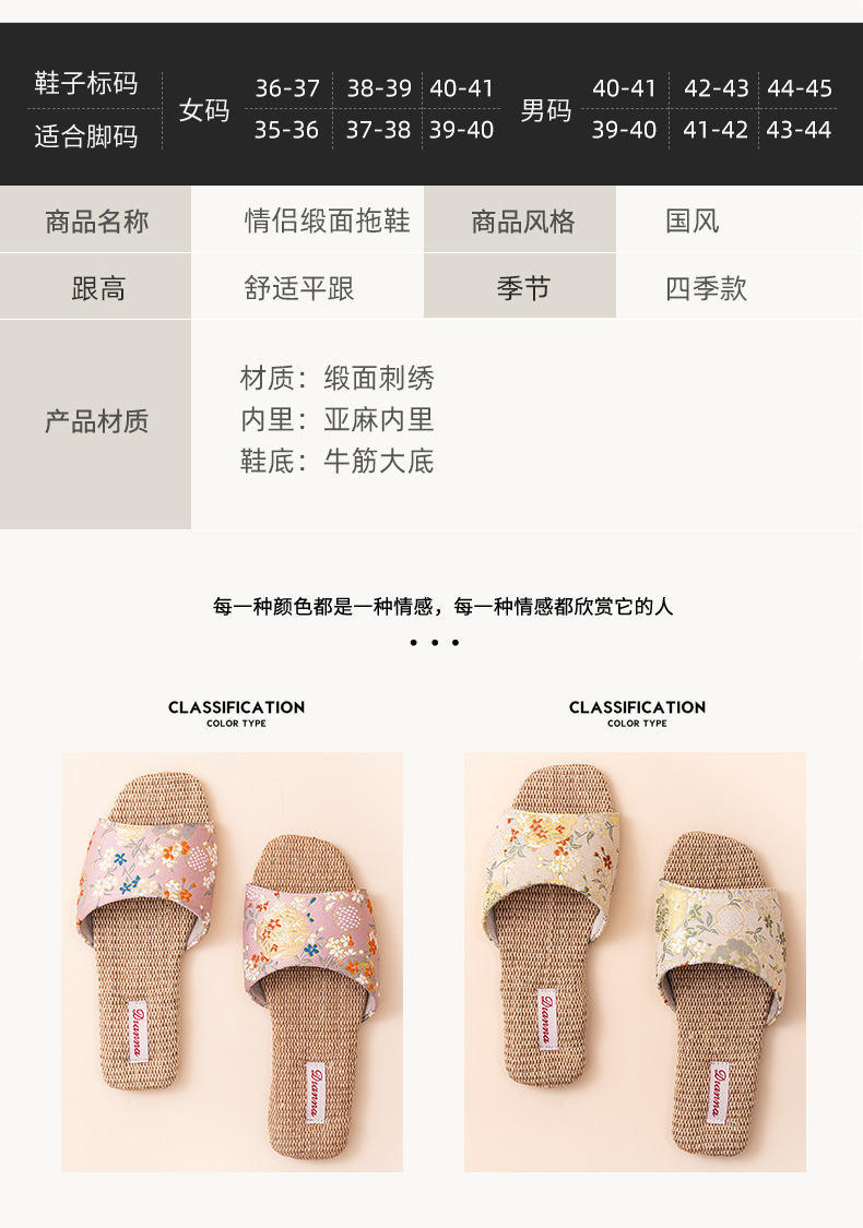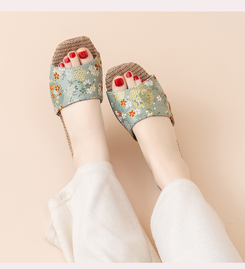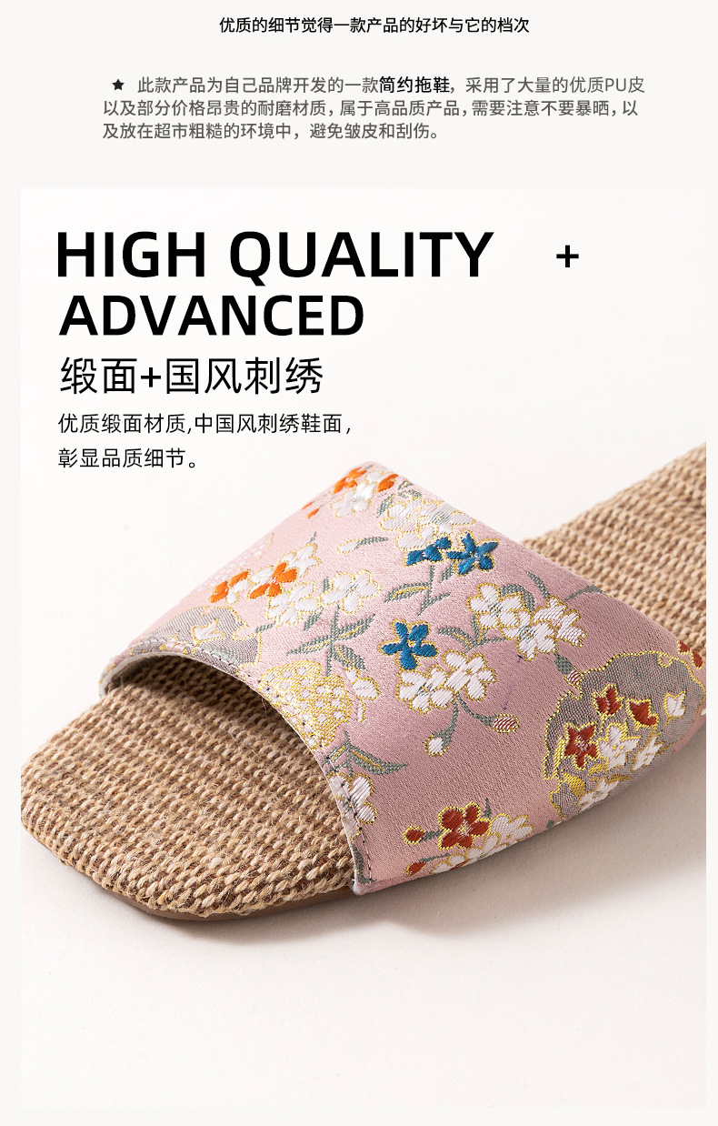 홈 린넨 슬리퍼, 미끄럼 방지, 중국 스타일 자수, 통기성 및 내마모성, 커플 사계절 샌들, 공장 직접 판매, 직송스토어 가기