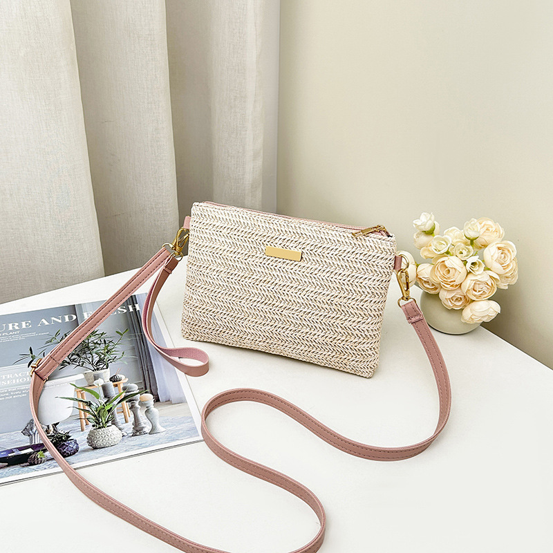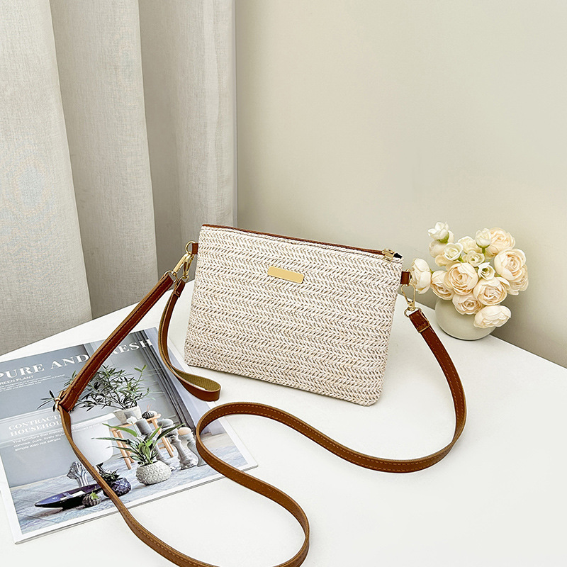 국경 간 밀짚 여성용 가방 2025 여성 가방 간단한 작은 사각형 가방 유행 크로스 바디 클러치 백 원피스 세대