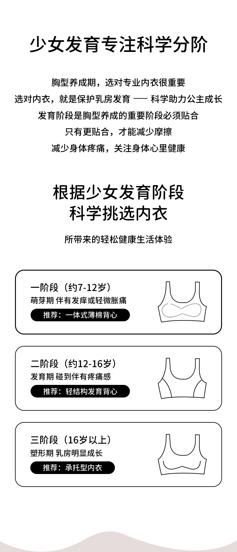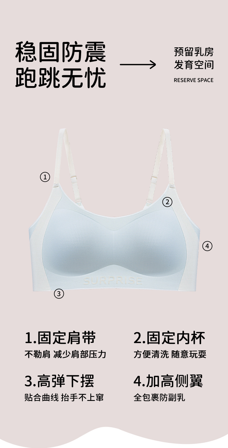 신발기통풍구 여아 서스펜더 속옷, 돌출방지 고정컵, 흔적없는 아름다운 등 학생스포츠브라