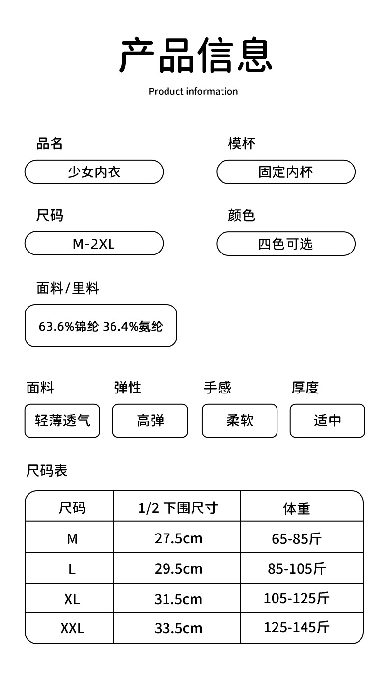 신발기통풍구 여아 서스펜더 속옷, 돌출방지 고정컵, 흔적없는 아름다운 등 학생스포츠브라스토어 가기