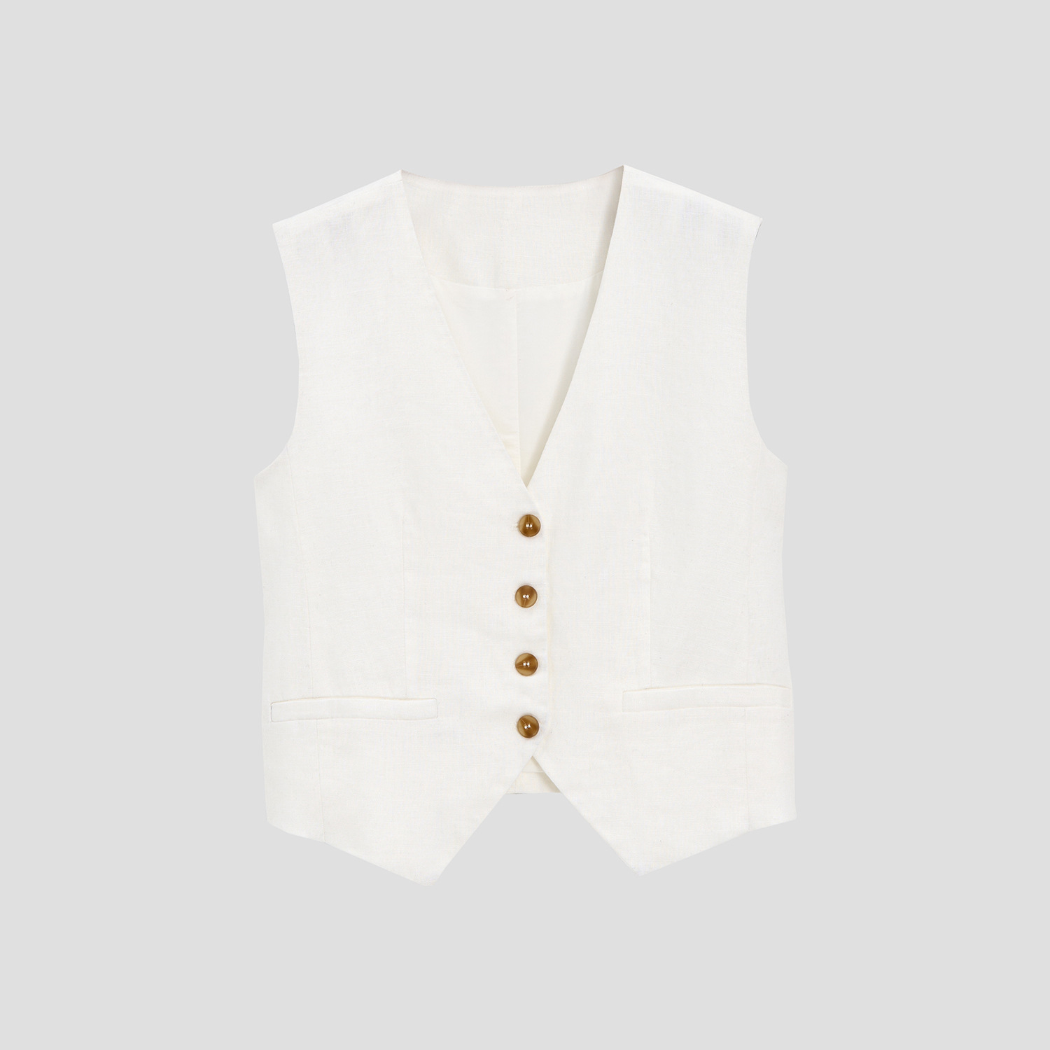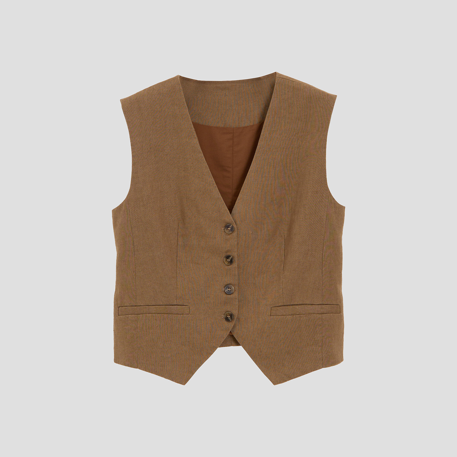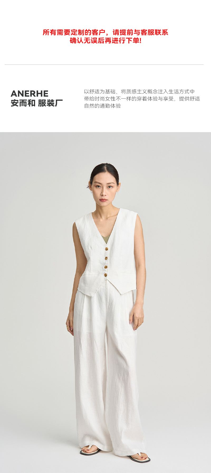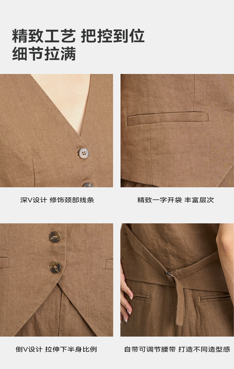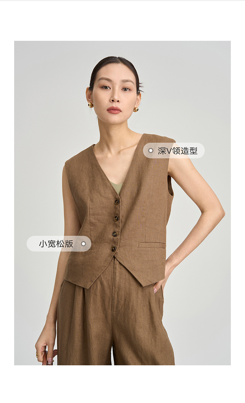 세련된 외부 플레인 리넨 세트 조끼 2025 봄 새로운 올 매치 V 넥 민소매 슬림 핏 탑스토어 가기