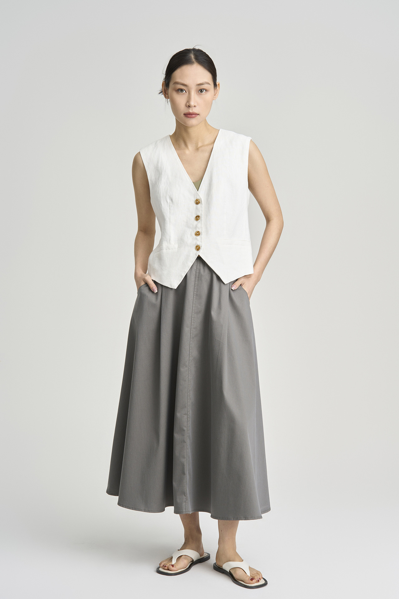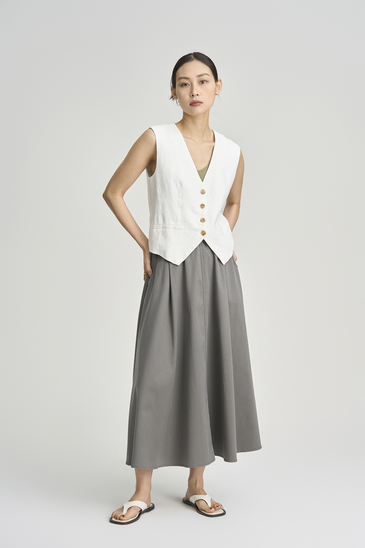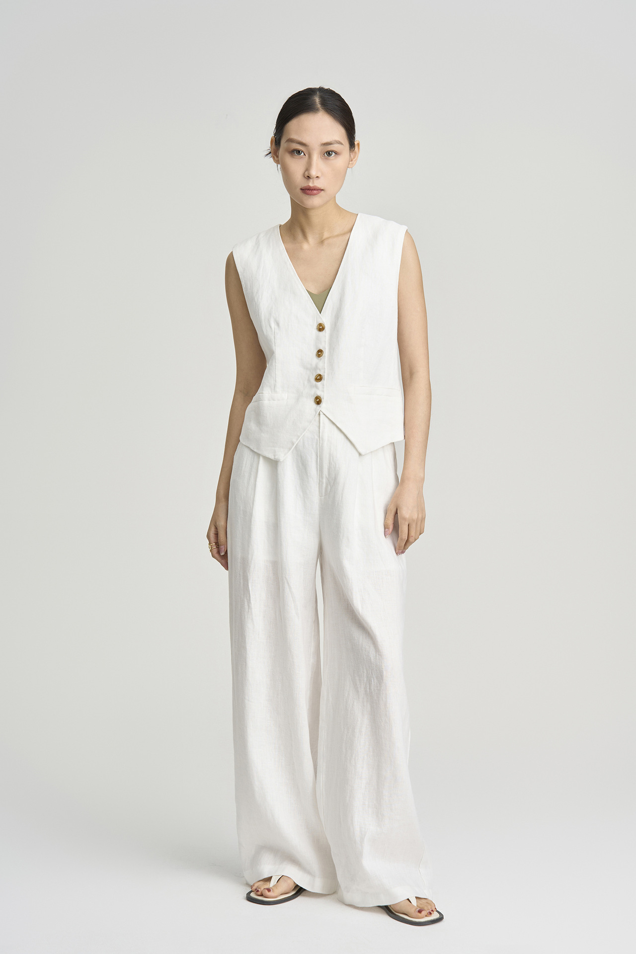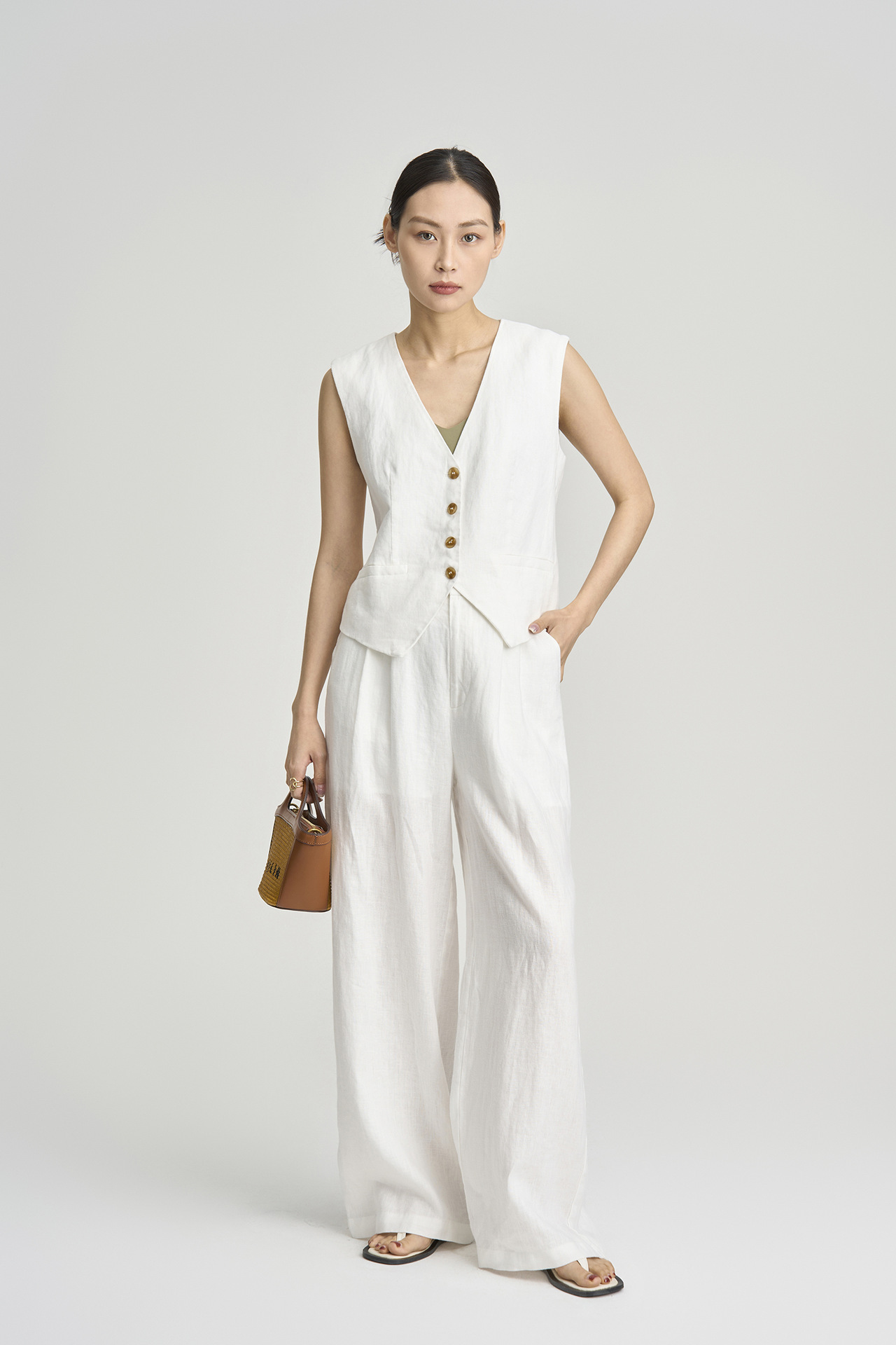 세련된 외부 플레인 리넨 세트 조끼 2025 봄 새로운 올 매치 V 넥 민소매 슬림 핏 탑스토어 가기