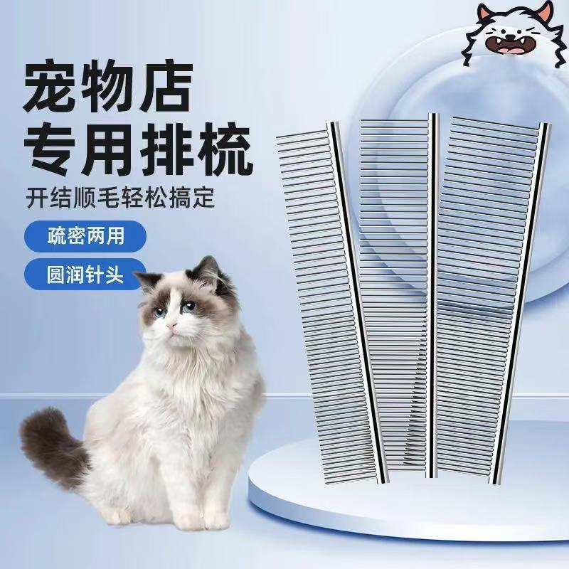 긴털 고양이를 위한 애완동물 빗, 특수 빗, 매듭을 열어주는 강철 빗, 래그돌 고양이 및 개 얼굴 빗, 밀집된 치아 직선 빗
