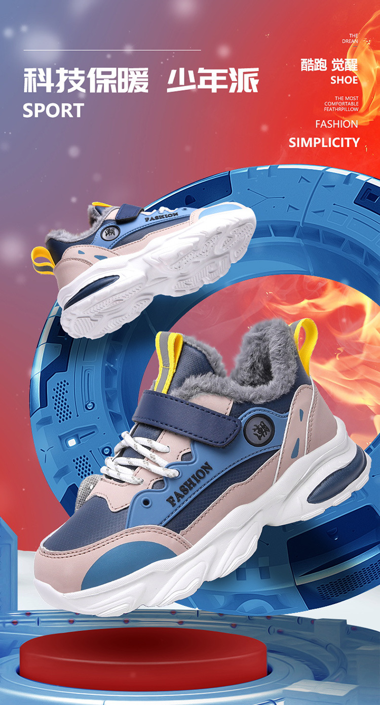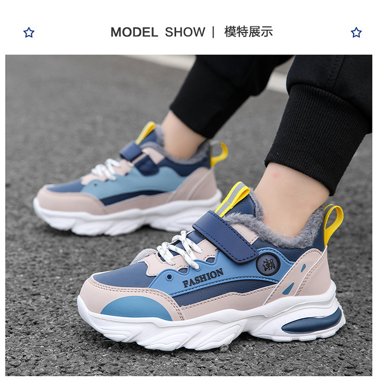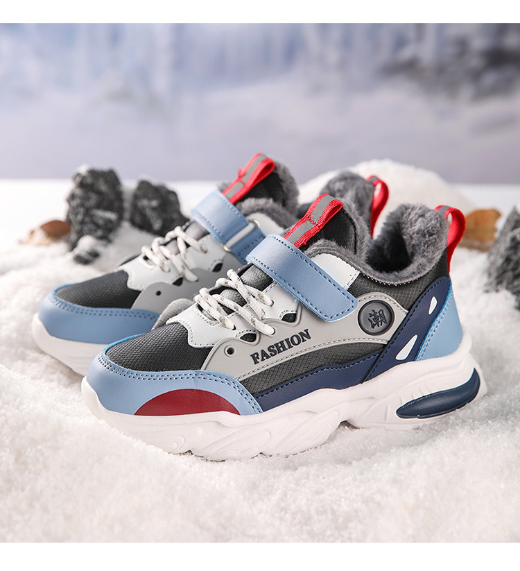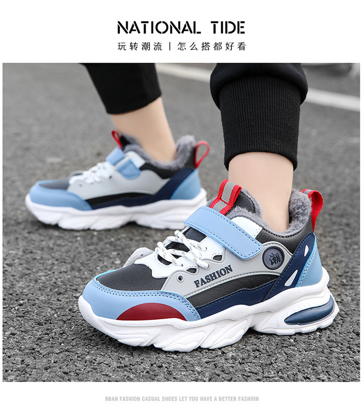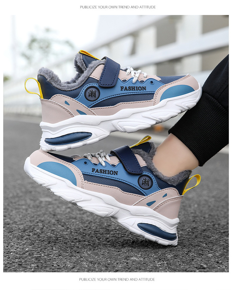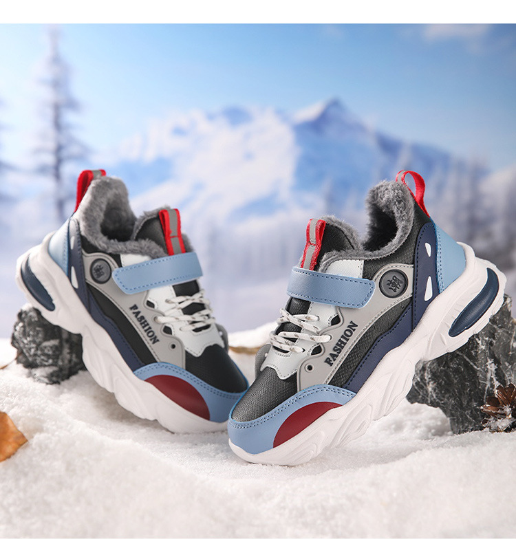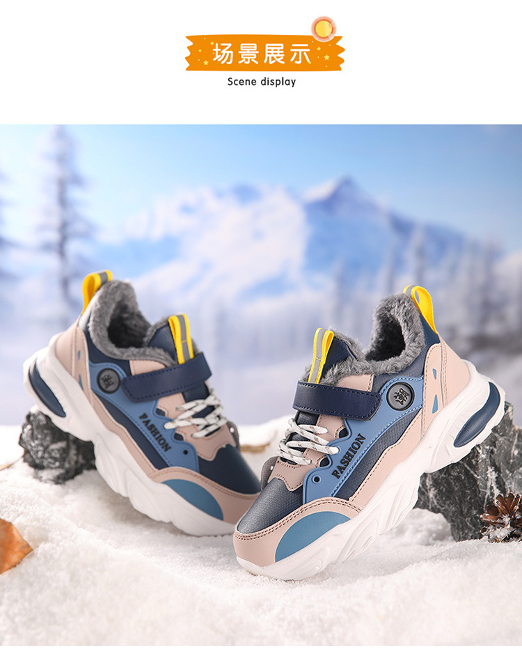 가을 겨울용 남아용 크로스보더 아동용 면화, 벨벳, 두꺼운 면, 따뜻함, 미끄럼 방지 및 내마모성, 남아용 아빠 운동화스토어 가기