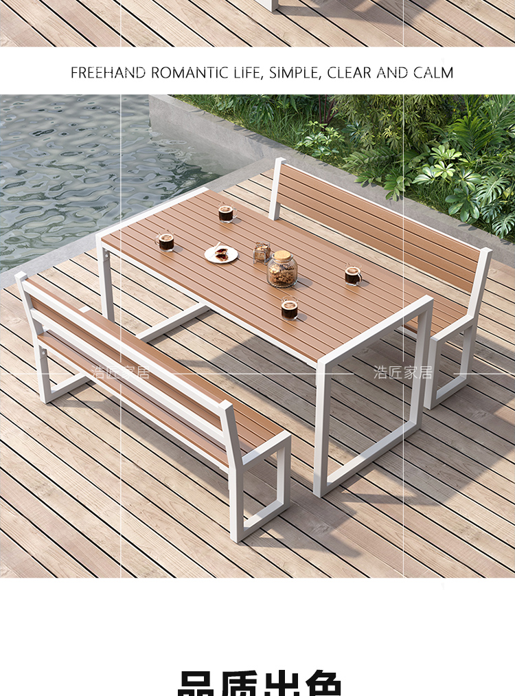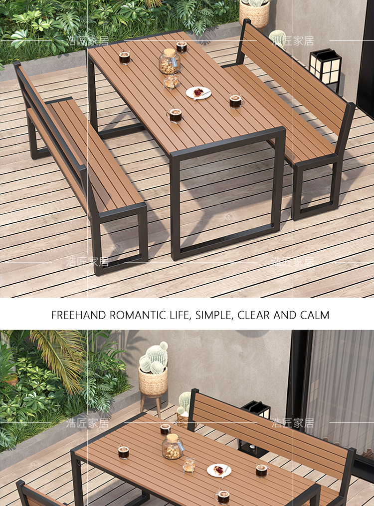 간단한 발코니 야외 테이블과 의자 조합 방수 및 자외선 차단 야외 철 식탁 정원 레저 야외 긴 테이블스토어 가기